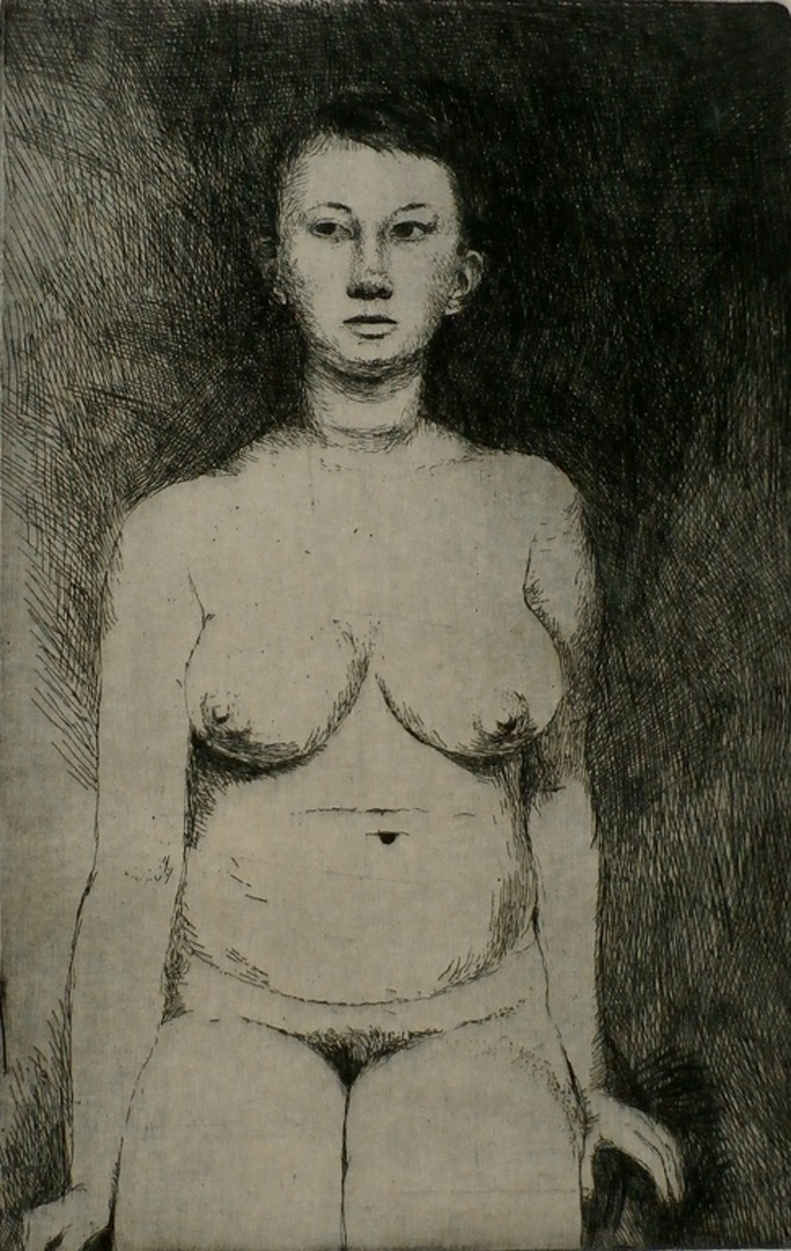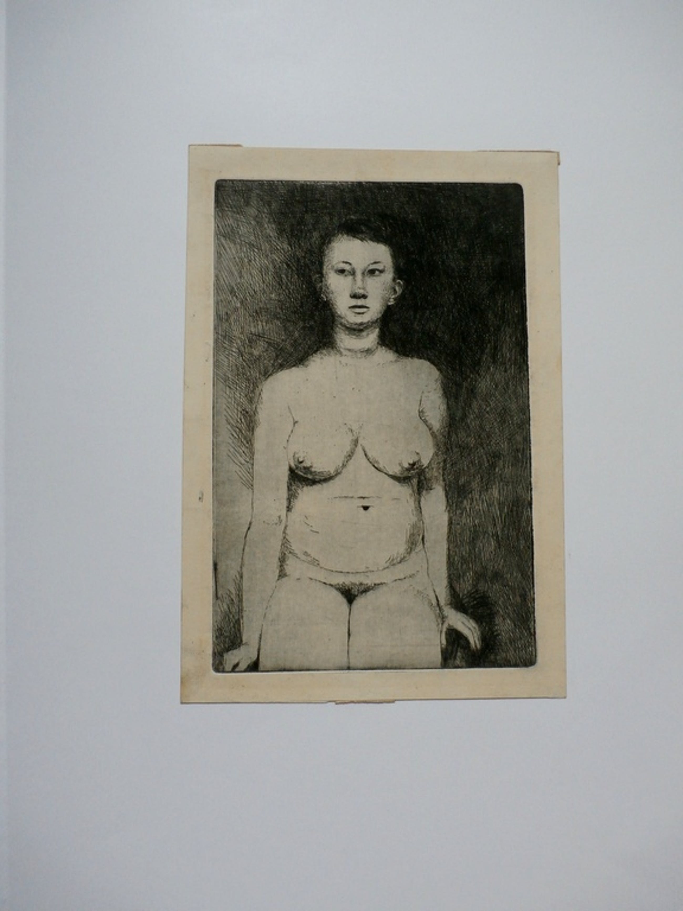 Mooie ets van Aat Veldhoen. Titel: naakte dame. Afmetingen ets: H21 x b13 cm. De ets is niet gesigneerd.