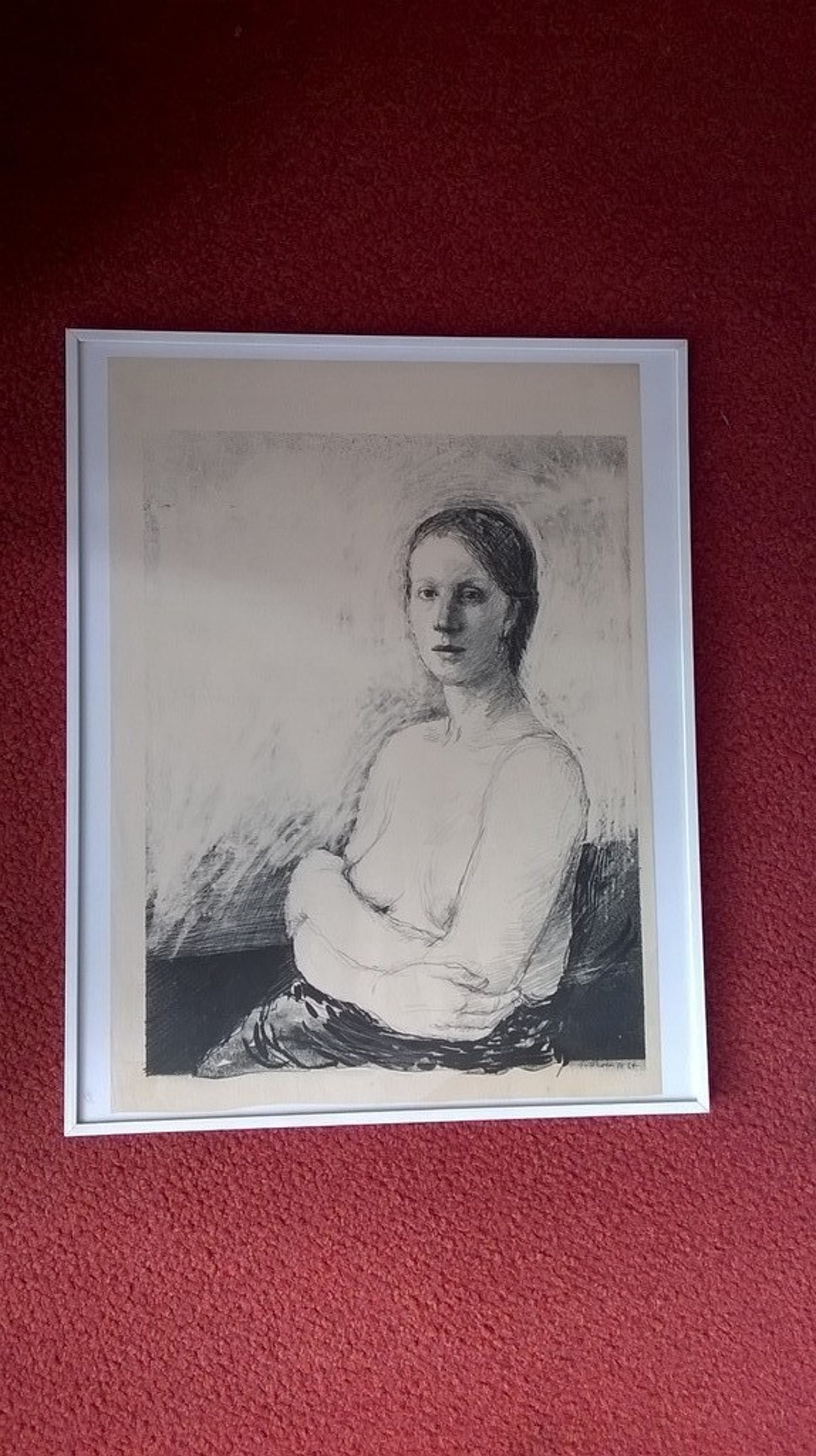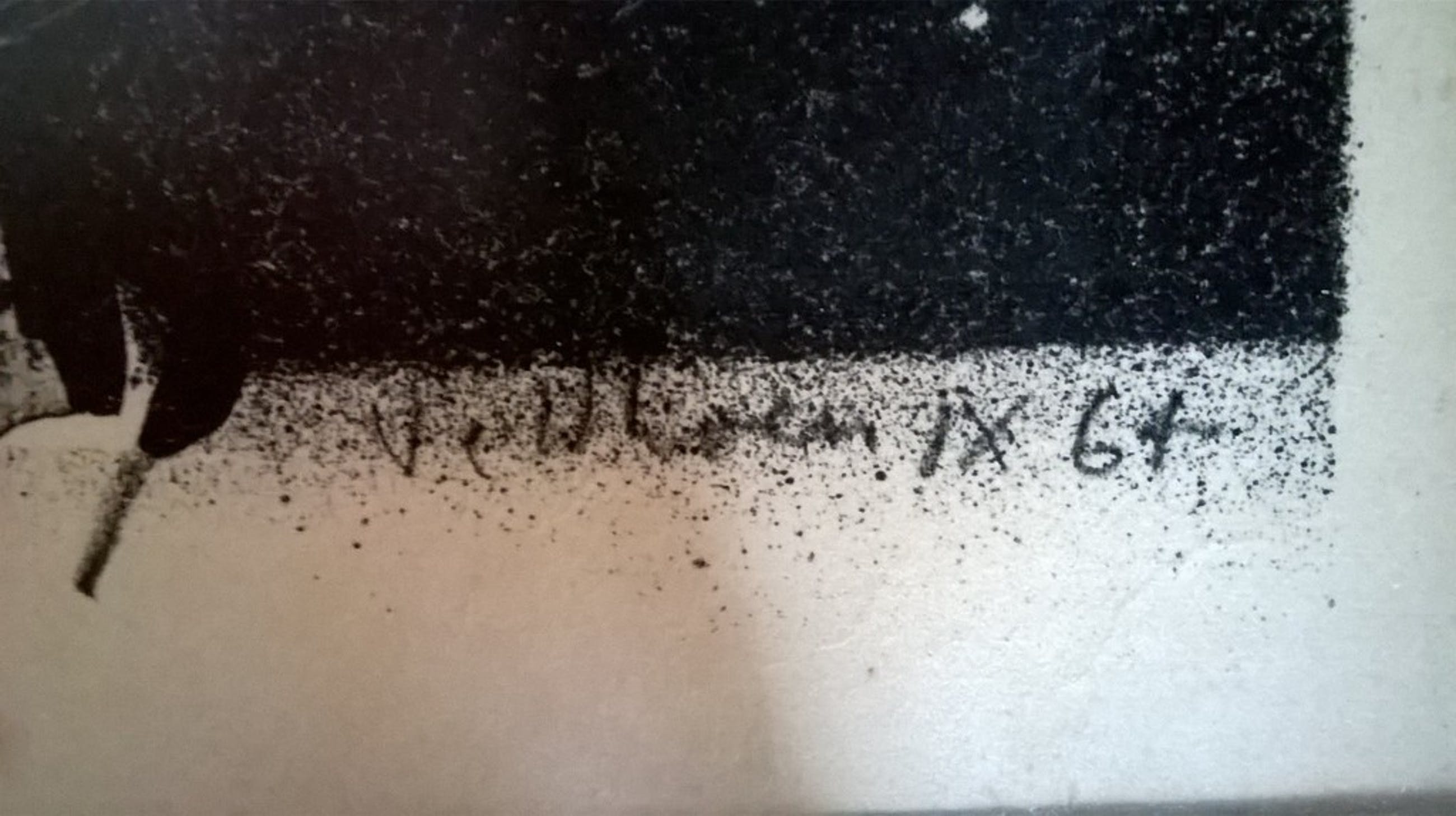 Papier mogelijk vergeeld, altijd ingelijst geweest. Het is niet duidelijk is of het 1 oplage uit 1961 is of de eerste van 61.