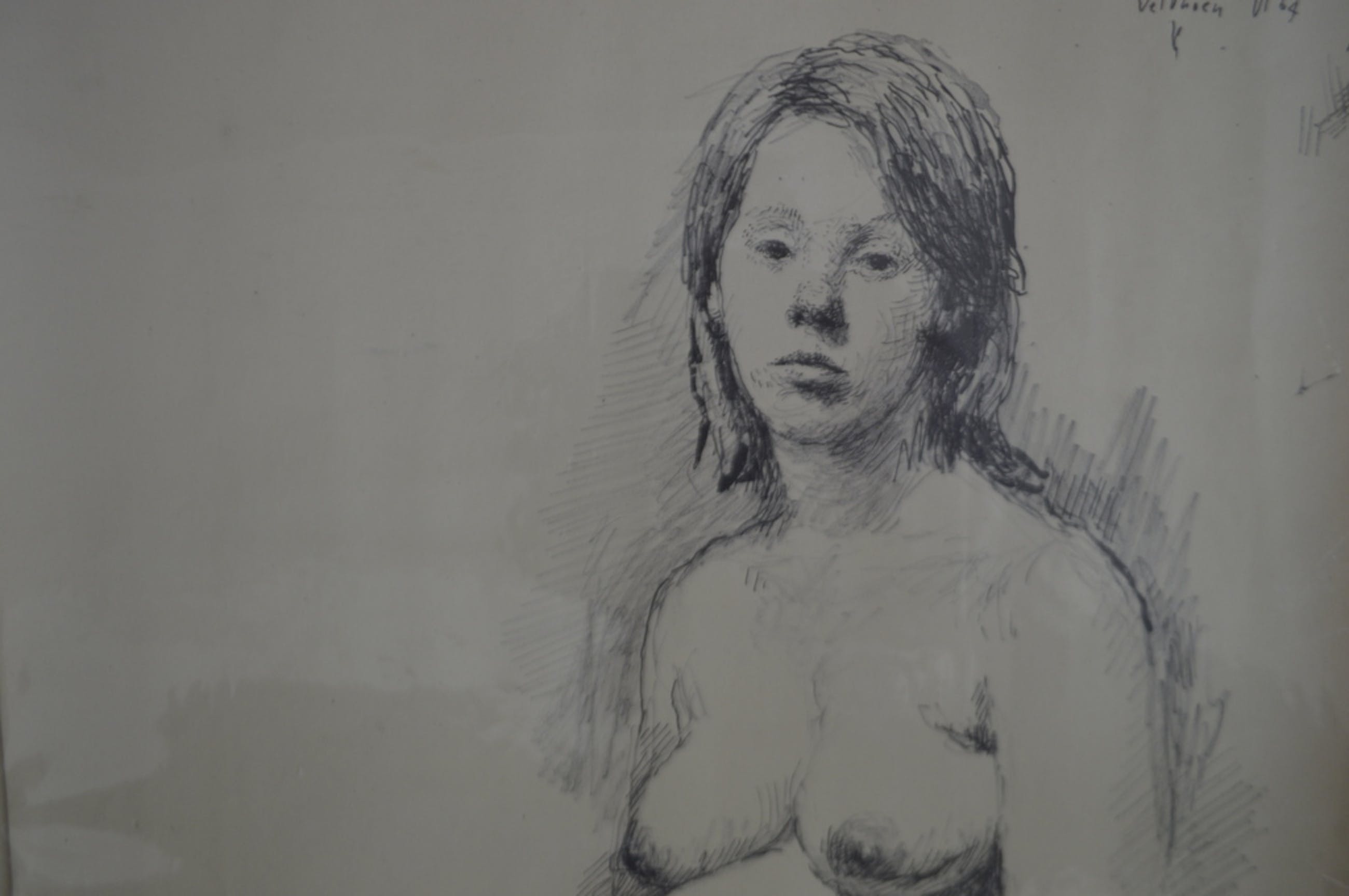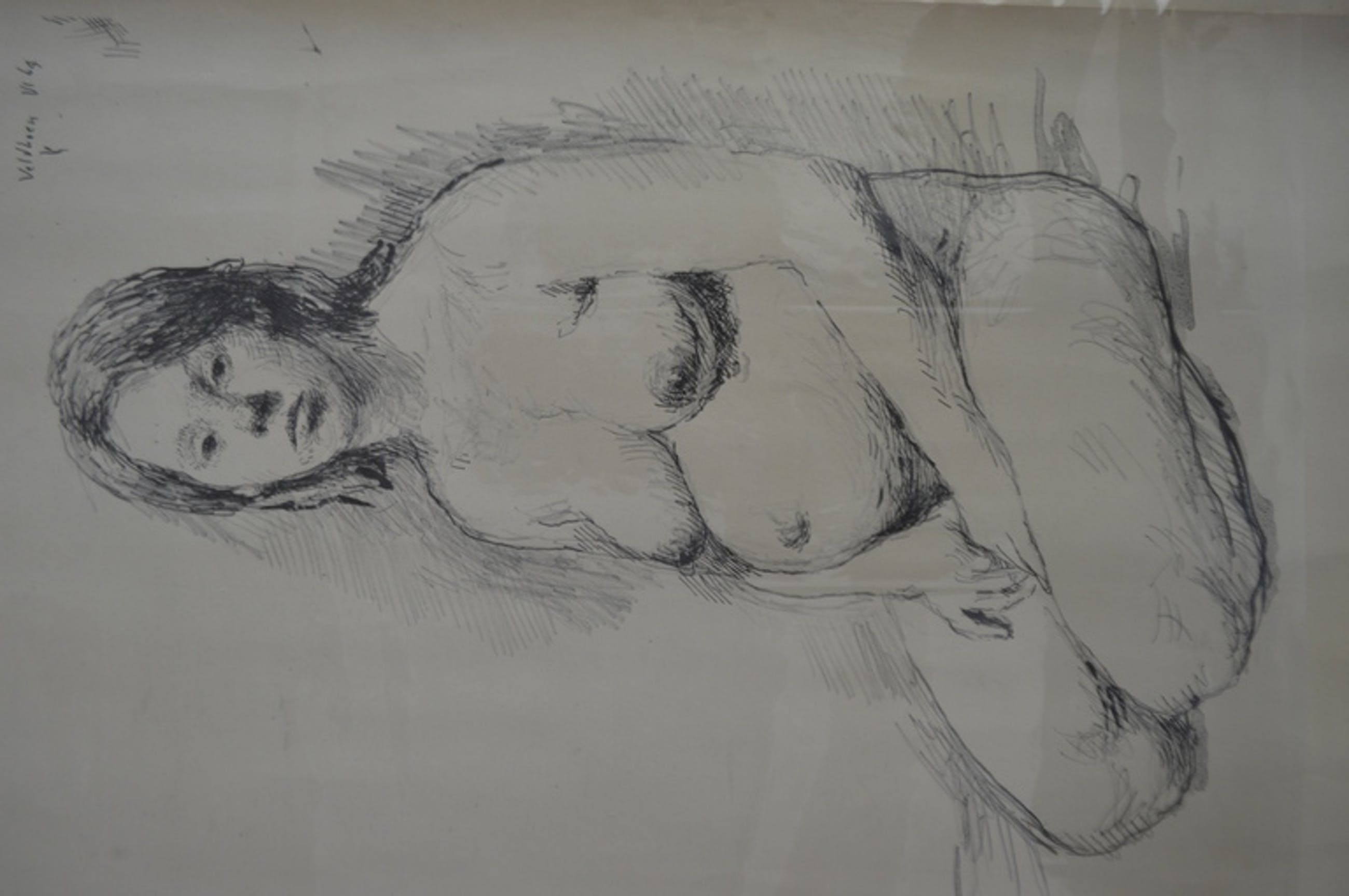 Naakt in verwachting - Aat Veldhoen, 1964 - rotaprint - Papier iets gekreukt ( nauwelijks zichtbaar ) en ietsie-pietse verkleurd papier.. met nietjes opgehangen geweest, zichtbaar in hoeken - wel nette exemplaar hoor.