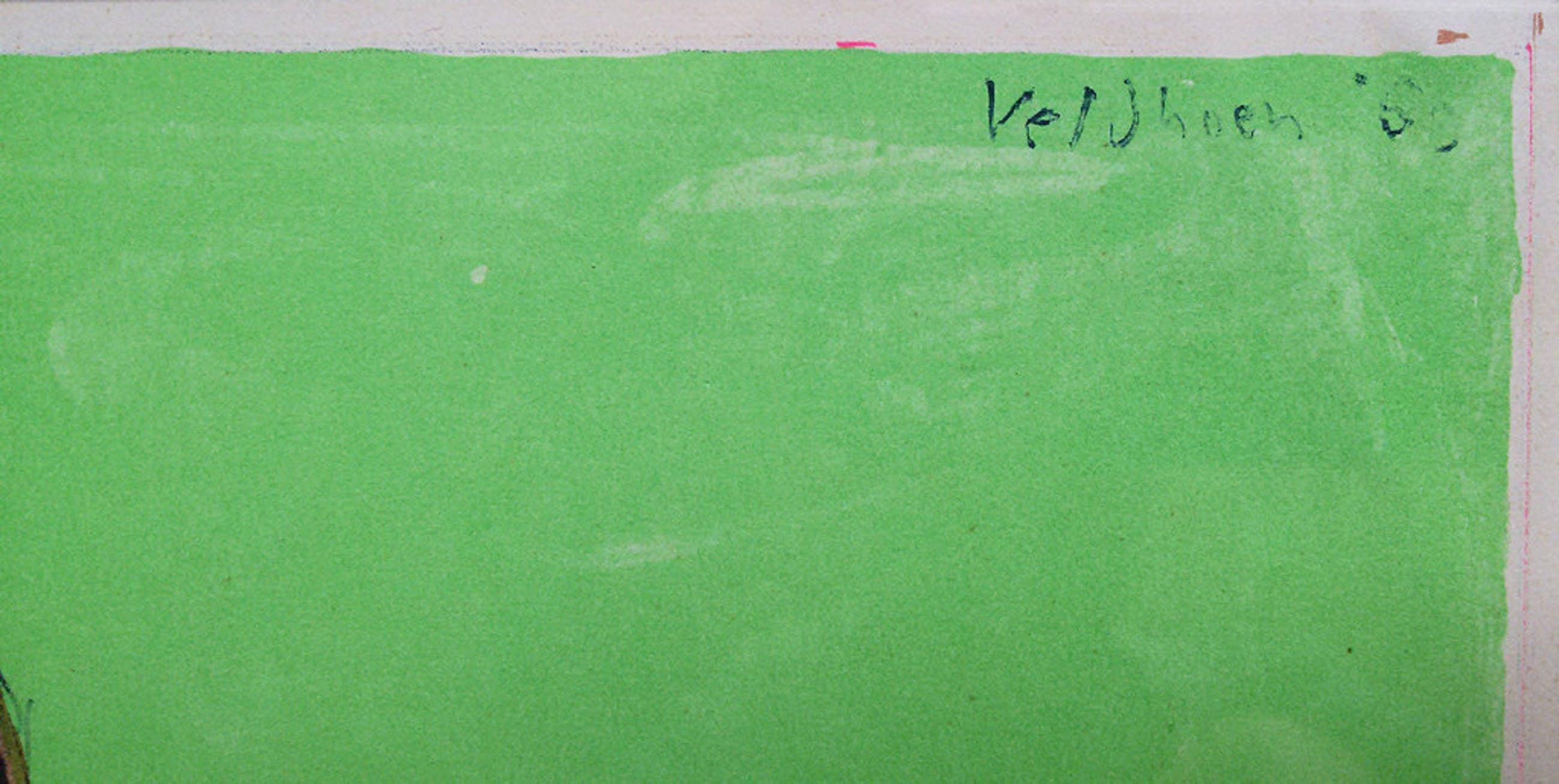 Schitterend jaren 60 zelfportret samen met zijn vrouw Kabul en zichzelf als clown. Kleurenlitho op papier, rechtsonder met potlood gesigneerd en genummerd (9/50) en links daarvan “Voor Rudolph”. In de plaat gesigneerd en gedateerd (’69) rechtsboven. In strakke aluminium lijst, achter glas en met complementerend passe-partout. Alles in goede conditie.