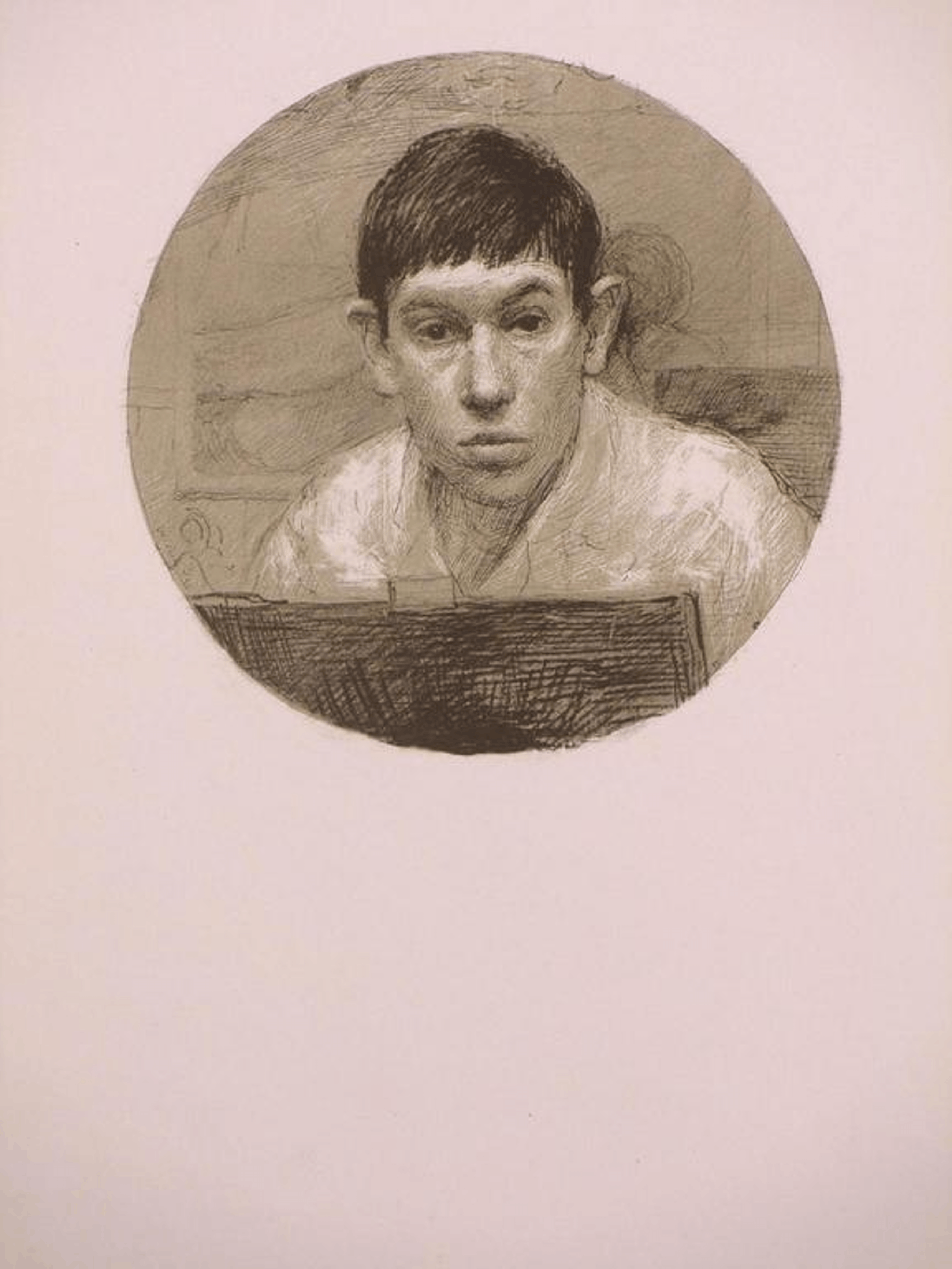 Voorstelling van een zelfportret in in het rond opgetekend.