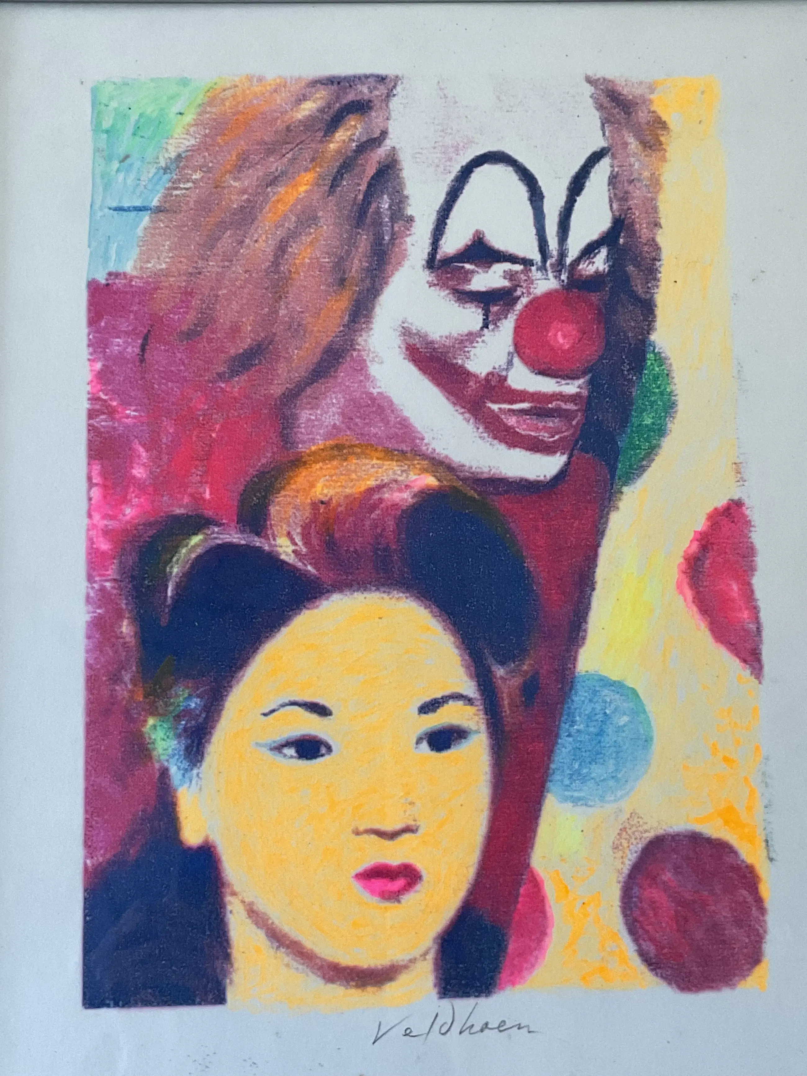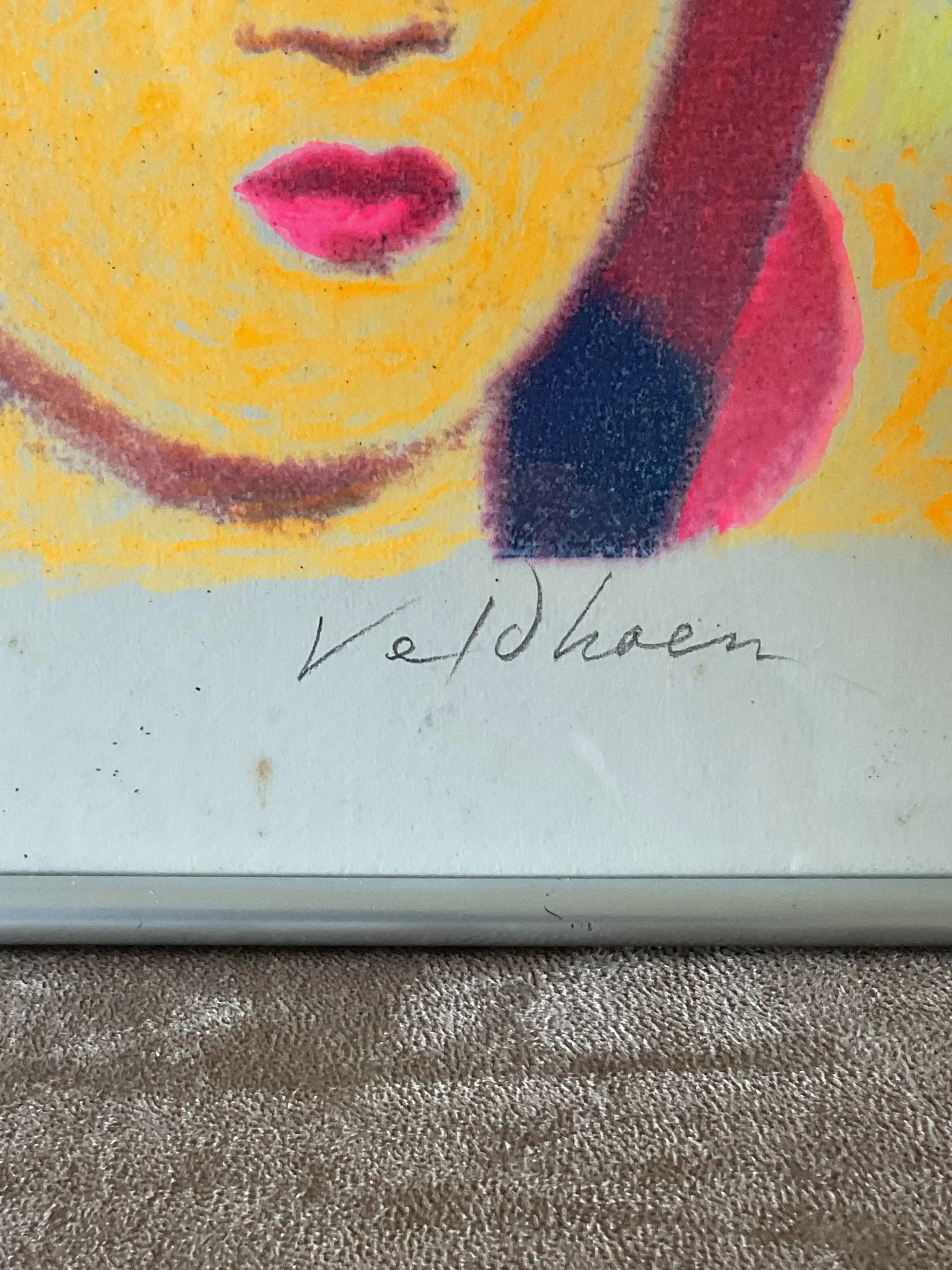 Eigenzinnig werk van Aat Veldhoen. Handgesigneerd. In passende lijst. Afmetingen 60|40 cm. In goede staat.