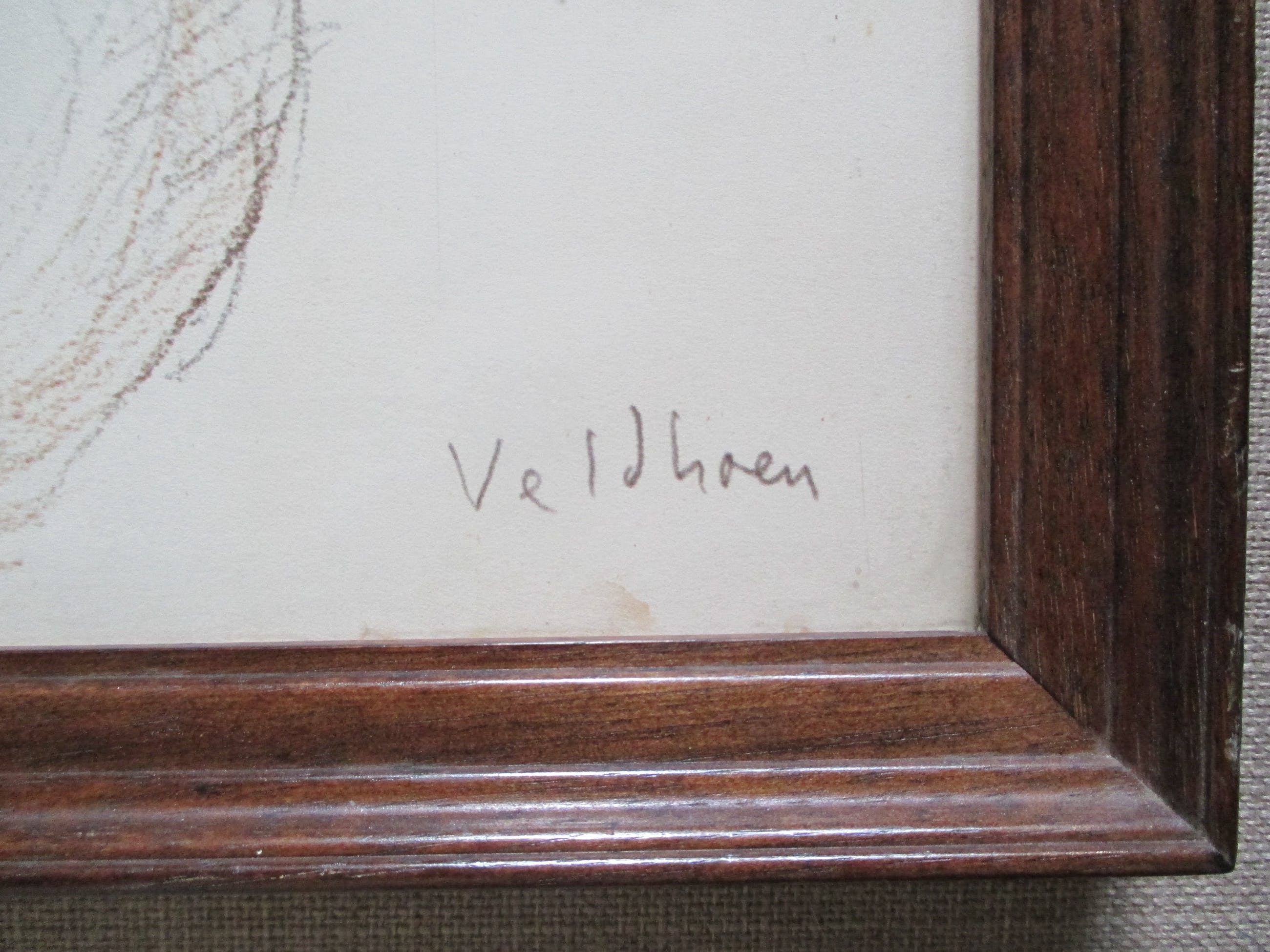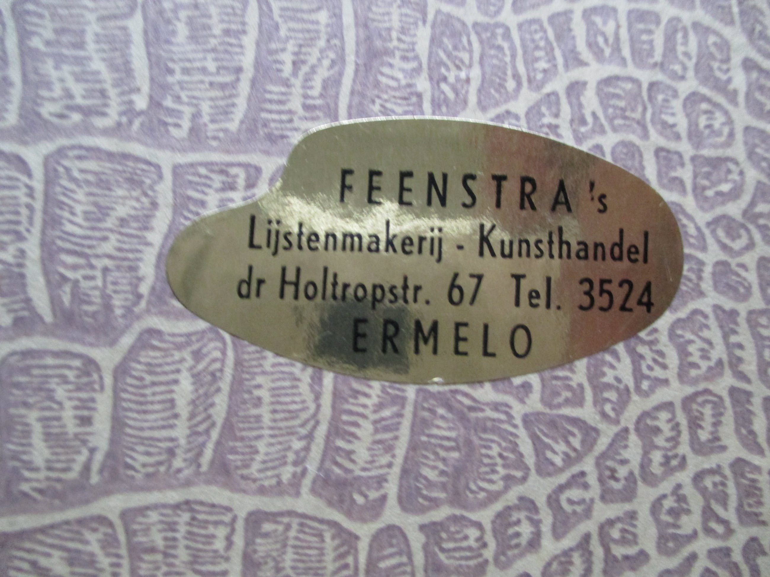 Rotaprint van Aat Veldhoen, gesigneerd in de druk. Ingelijst achter glas in een houten lijst.