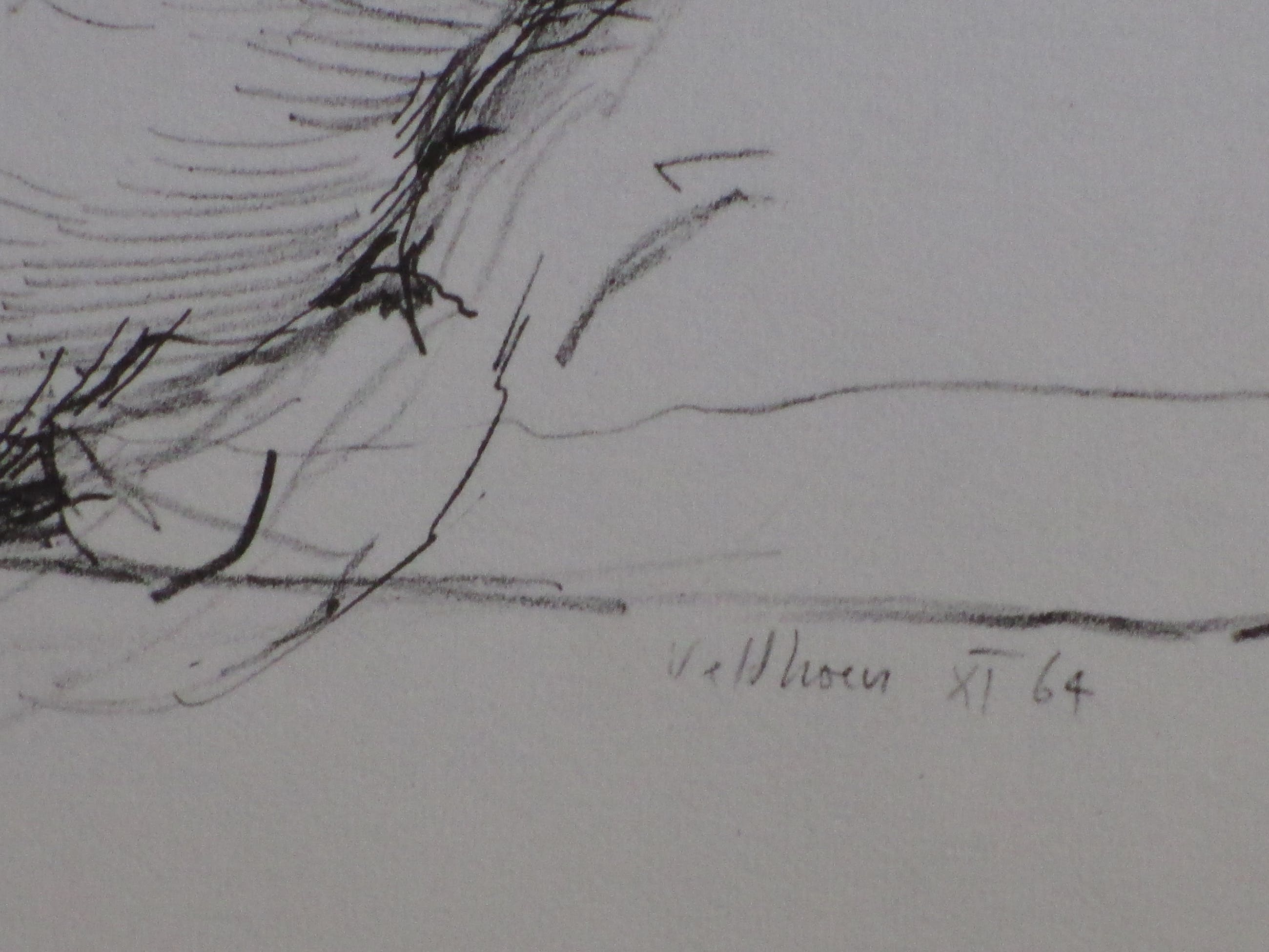 Rotaprint door Aat Veldhoen.Voorstelling van een liggend naakt met links daarboven een zelfportret.Losbladig, beeldmaat 30x44, bladmaat 35x49Gesigneerd en gedateerd r.o. in de druk 'Veldhoen XI 64'Authenticiteit volledig gegarandeerd.