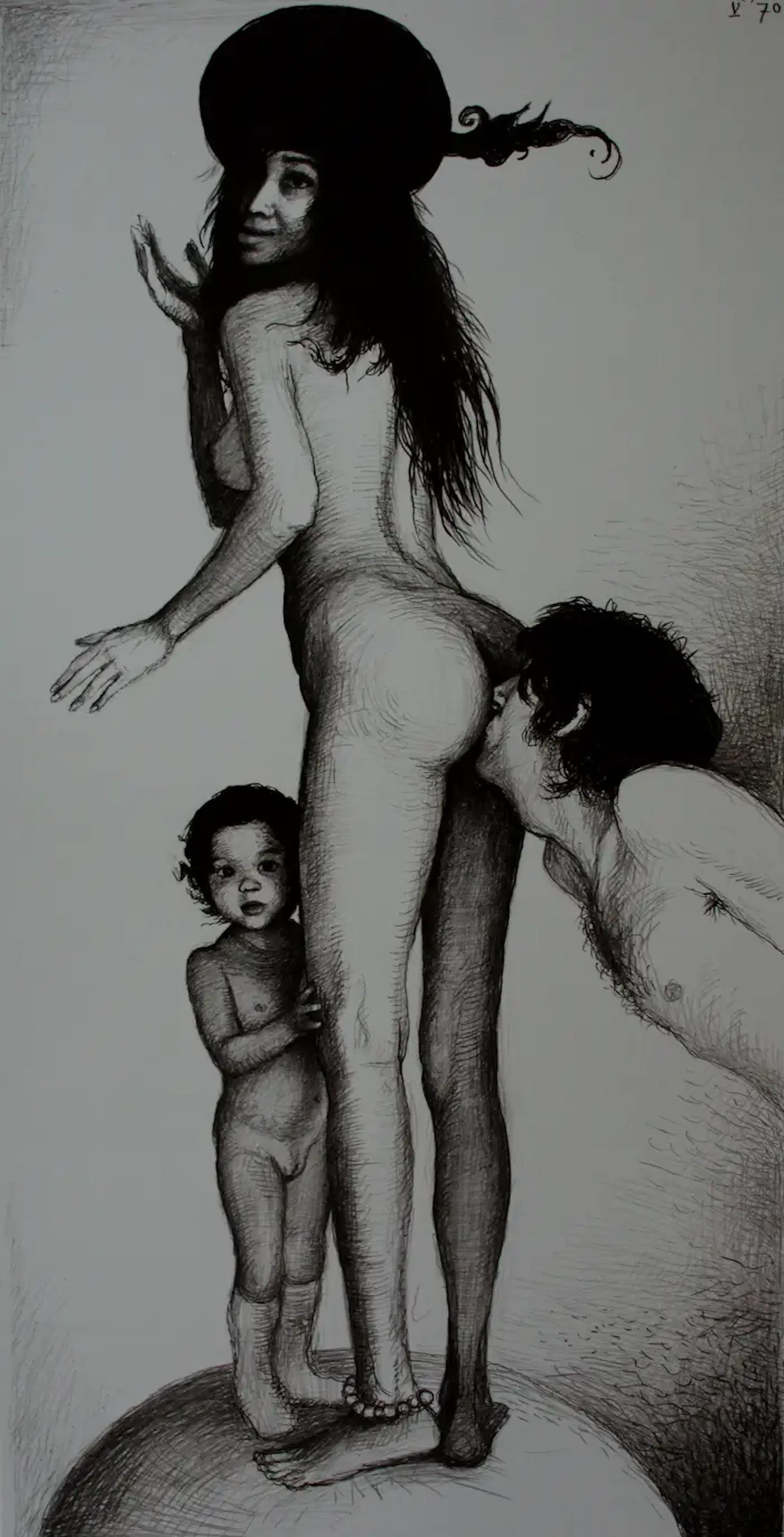 Litho van Aat Veldhoen. Jaar: 1970. Oplage: 42/100. Nr: V. Afmetingen blad: H73 x b56cm. Afmetingen voorstelling: H61.5 x b31.5cm. Het werk is midden onderaan, met potlood gesigneerd, door de kunstenaar. De authenticiteit van het aangeboden werk wordt volledig gegarandeerd. Een certificaat van echtheid kan, op aanvraag worden gemaild.