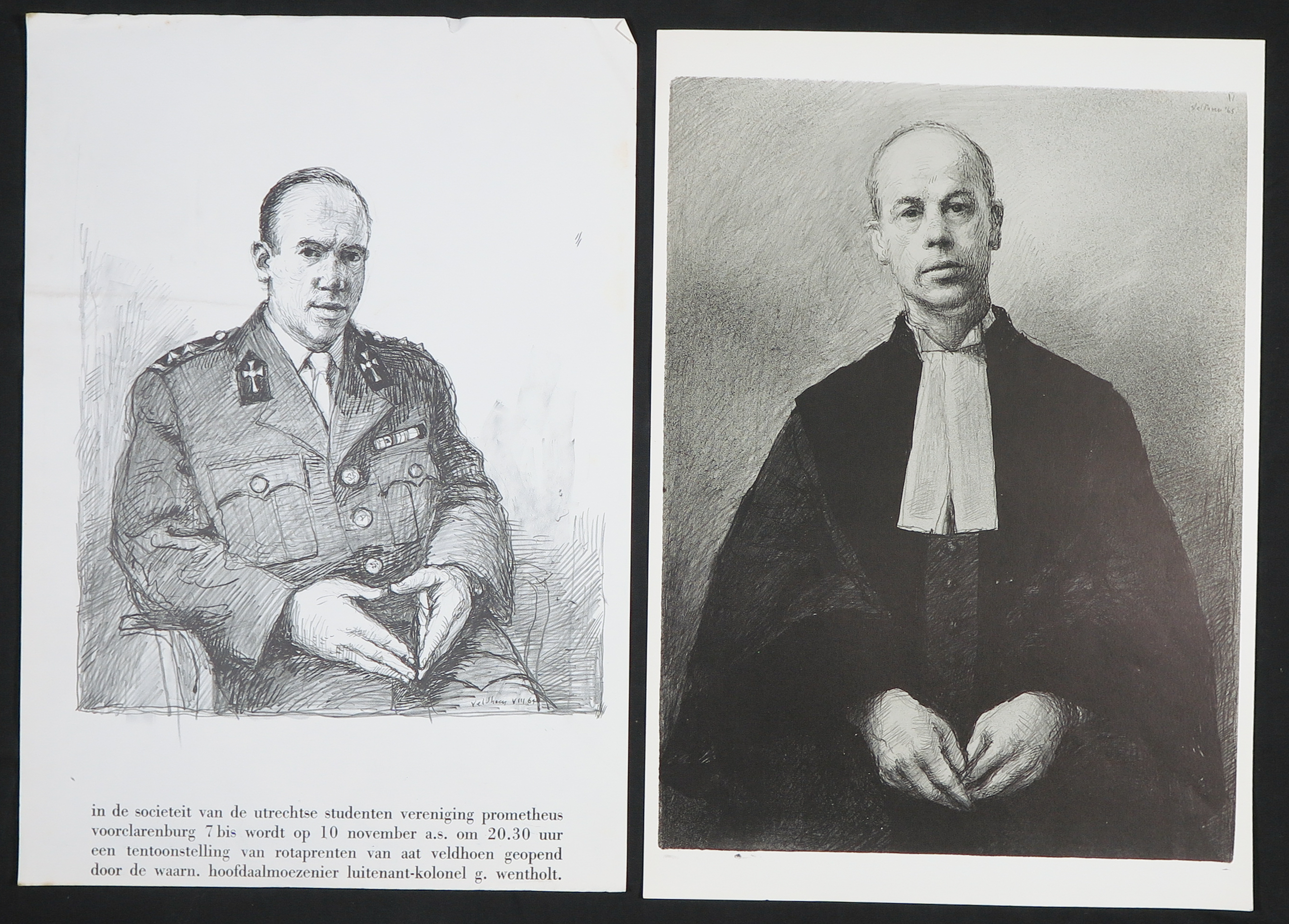 | Goede conditie. Lichte vergeling/verkleuring (met name langs de randen/hoeken), en meerdere knikjes/kreukjes in het blad. Het werk links is in wat mindere conditie, vrij gekreukeld en ook wat vlekjes/vegen en een paar scheurjtes in de bovenste rand.Voorzien van een notitie in potlood in de hoek(en). | |||||||||||