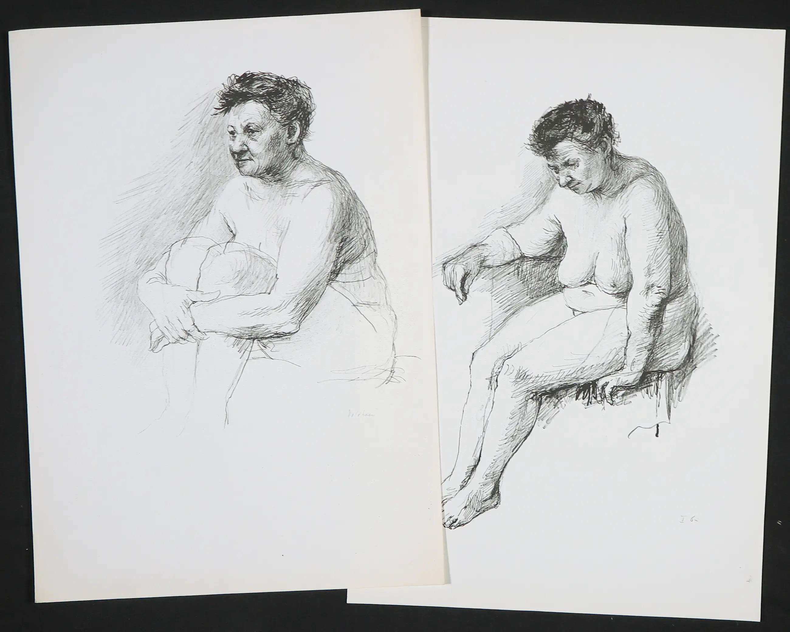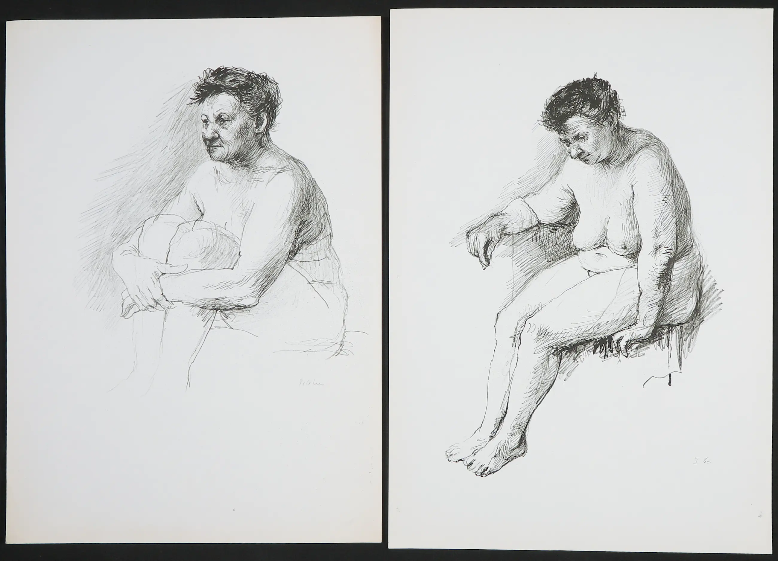 Rotaprint door Aat Veldhoen. Het werk links is in de druk gesigneerd, het werk rechts gedateerd.
