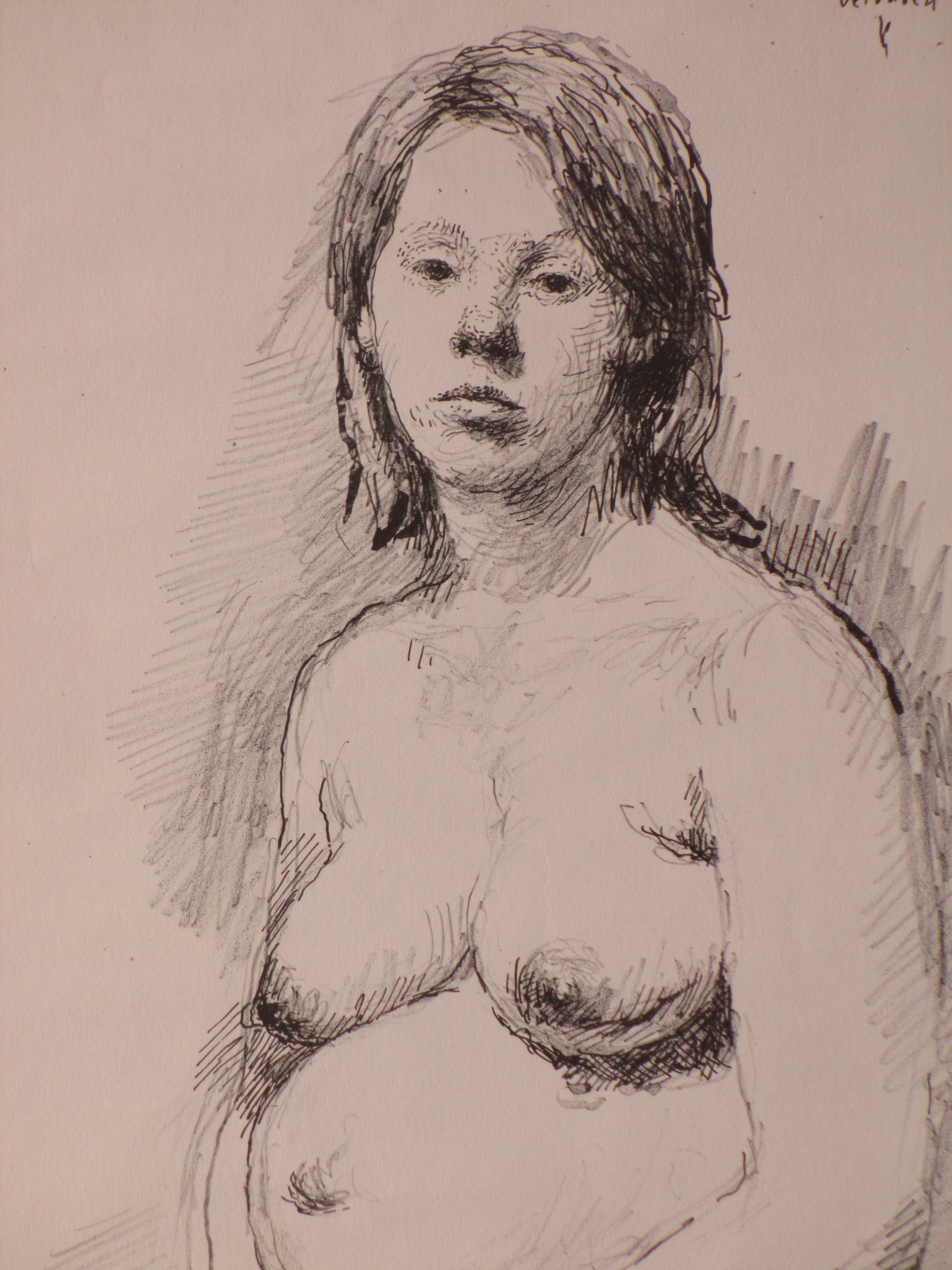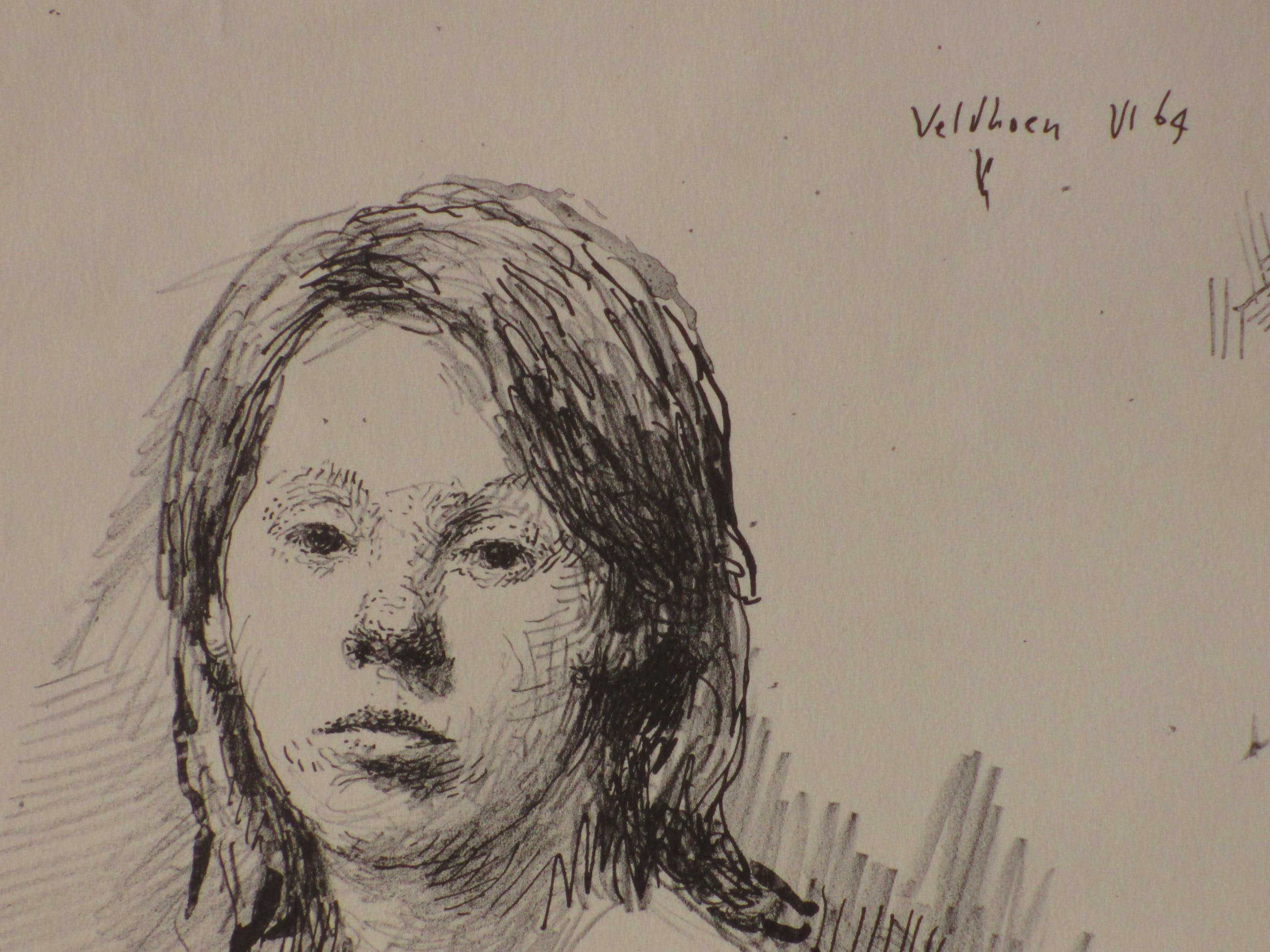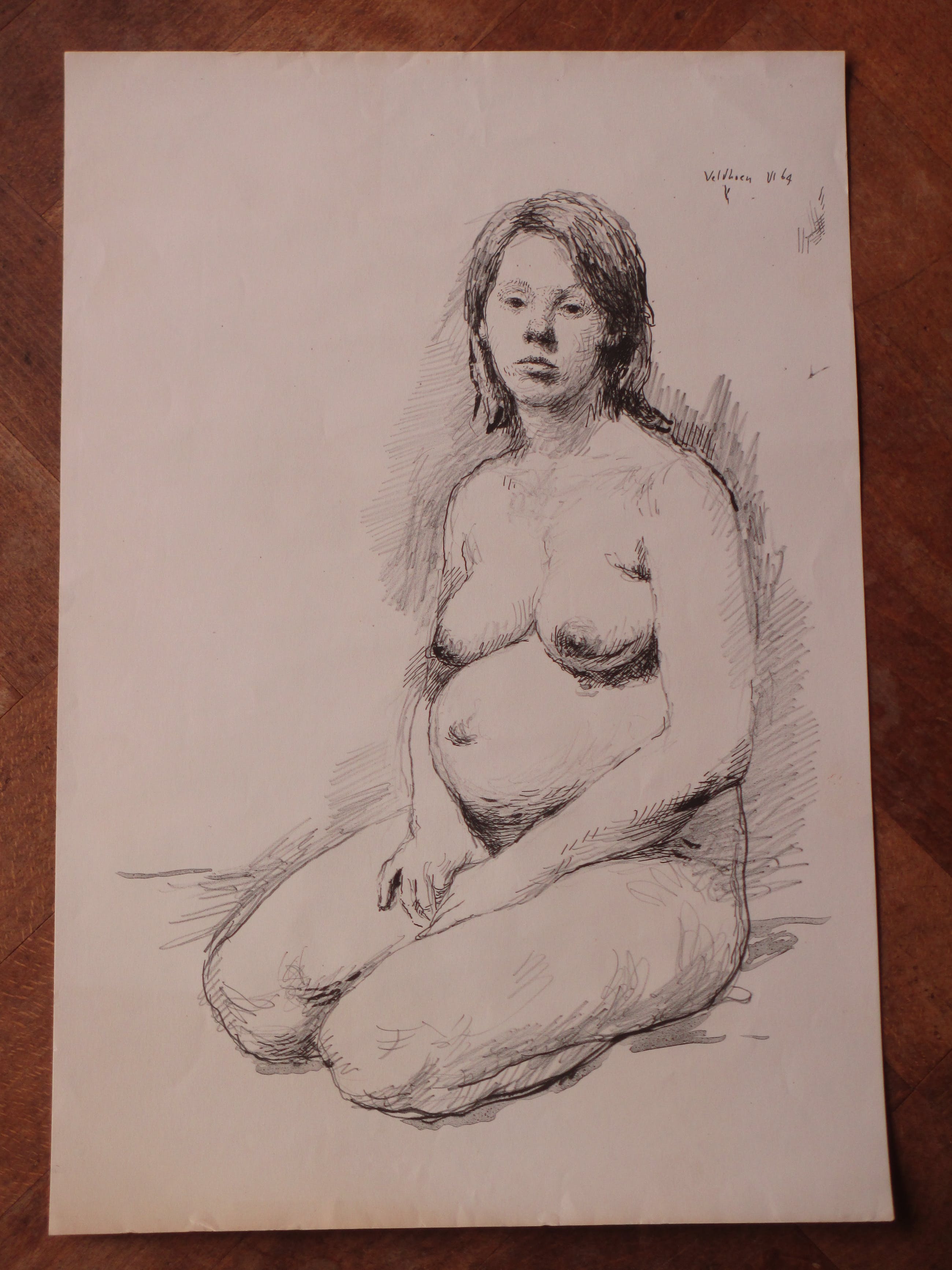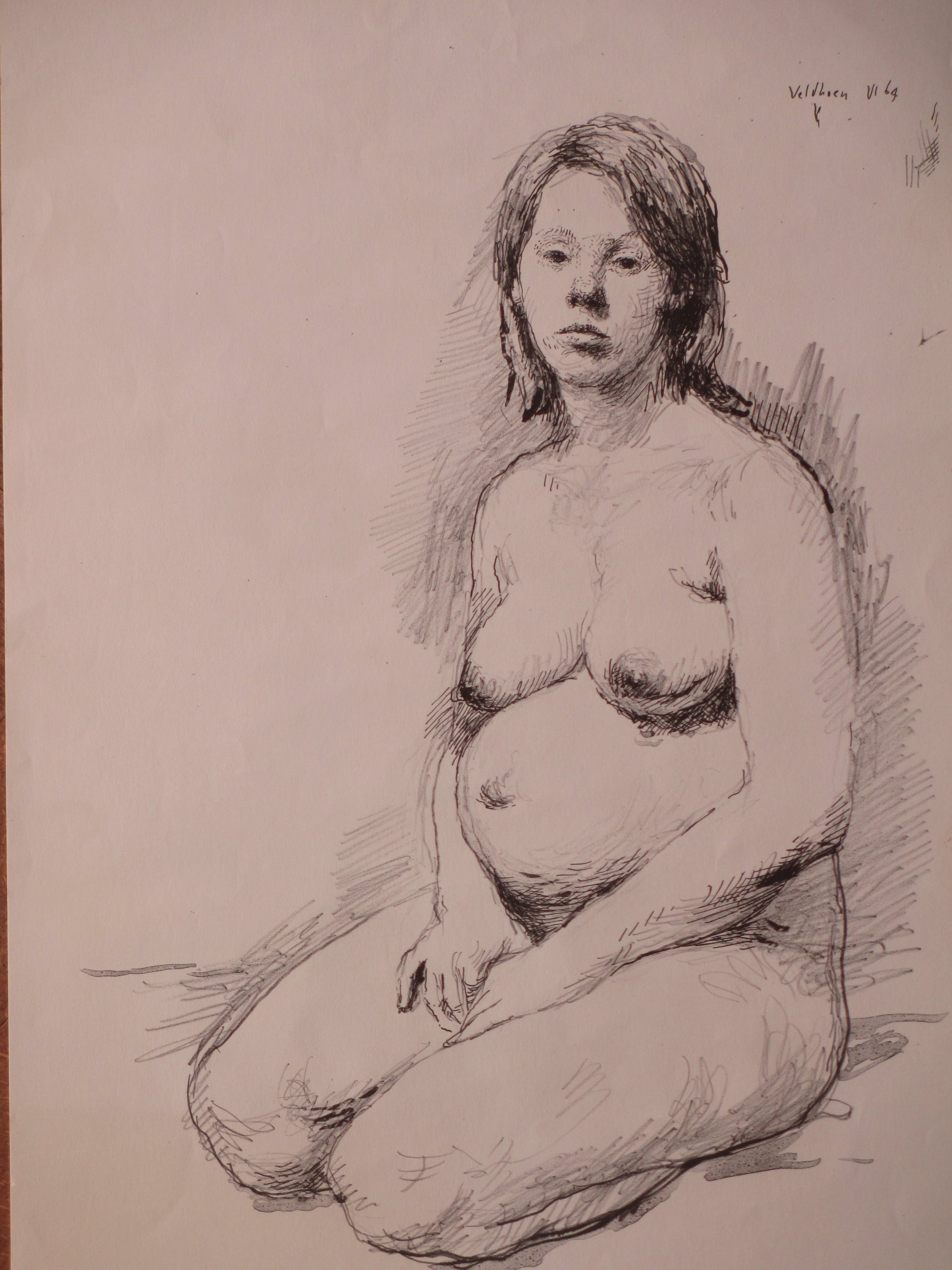 Rotaprint door Aat Veldhoen. Voorstelling van Lotje Veldhoen poserend, zwanger en naakt. Losbladig, beeldmaat 40x28, bladmaat 48x32 Gesigneerd en gedateerd r.b. in de druk: 'Veldhoen VI 64' Authenticiteit volledig gegarandeerd.