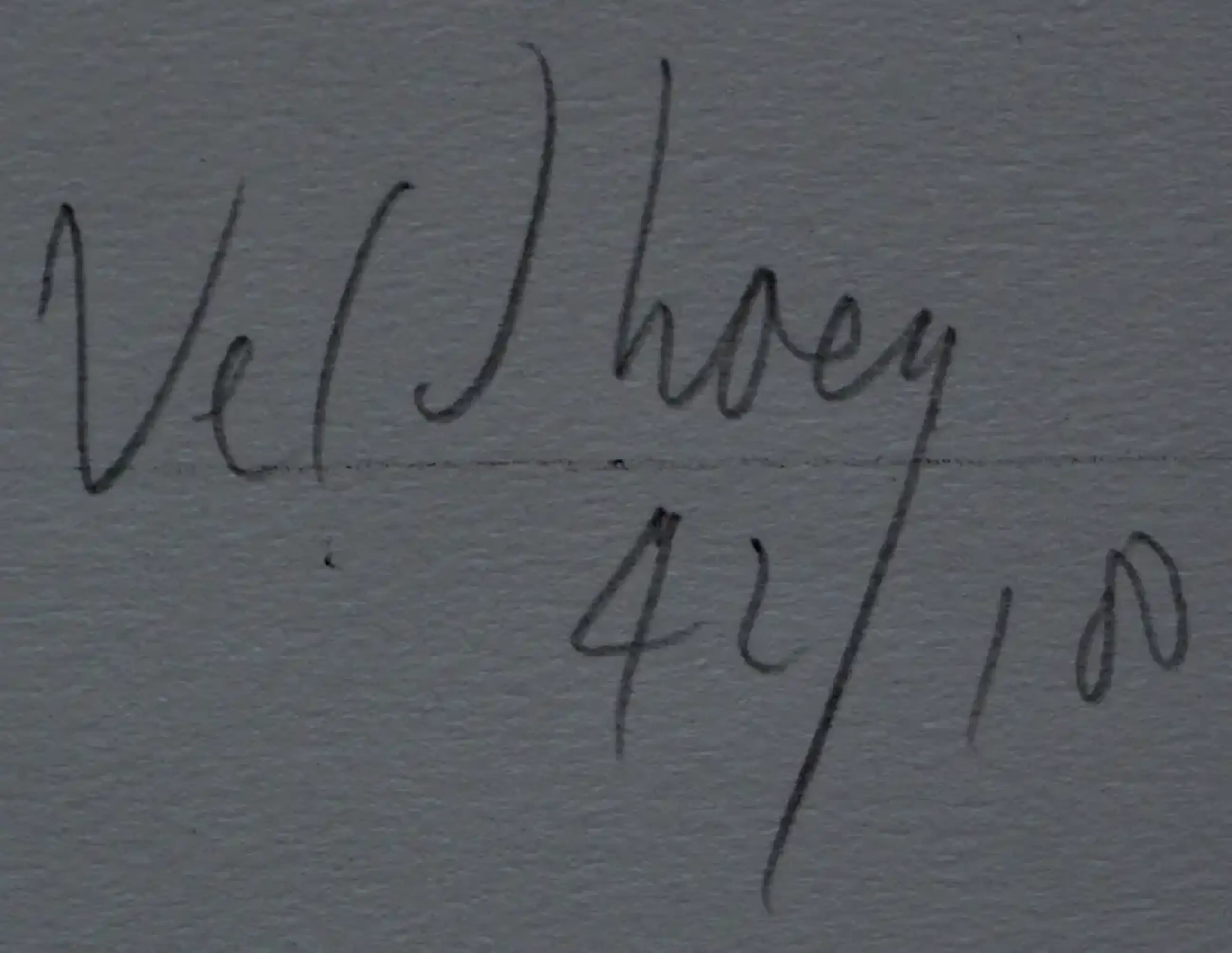 Litho van Aat Veldhoen. Jaar: 1970. Oplage: 42/100. Nr: IV. Afmetingen blad: H55.5 x b76.5cm. Afmetingen voorstelling: H40 x b54cm. Het werk is links onderaan, met potlood gesigneerd, door de kunstenaar. De authenticiteit van het aangeboden werk wordt volledig gegarandeerd. Een certificaat van echtheid kan, op aanvraag worden gemaild.