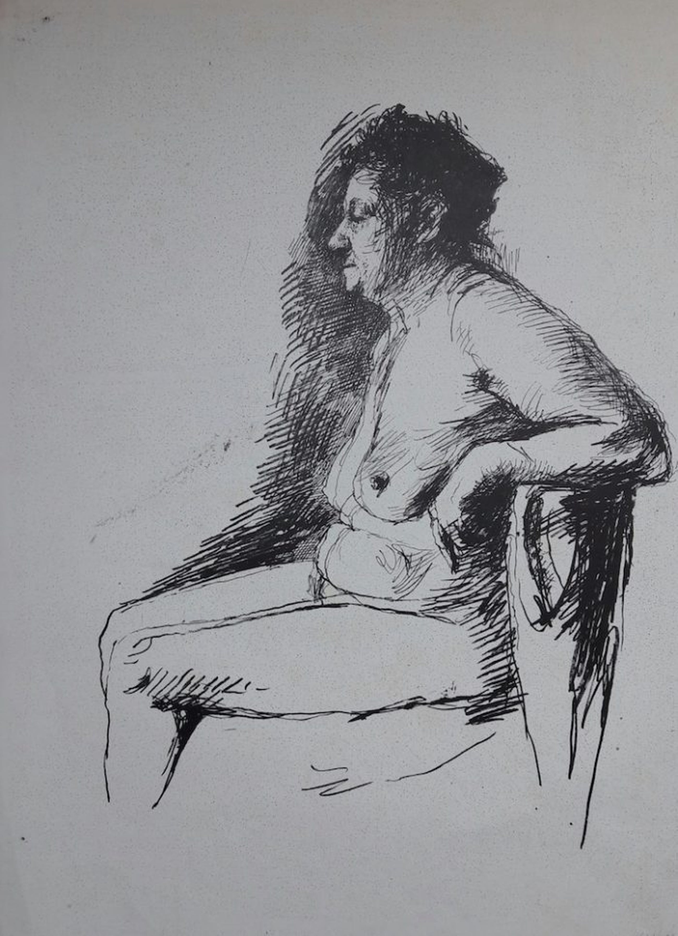 Geboren in Amsterdam. De volledige naam is Arie Johannes Veldhoen. Graficus, schilder en tekenaar. Hij heeft Rembrandt zijn leven lang als voorbeeld beschouwd. Je vindt dit terug in zijn scherpe oog voor detail en zijn vermogen om slechts met enkele lijntjes een indringend beeld van onderwerpen uit zijn dagelijkse omgeving te scheppen. Dit werk is een rotogravure.