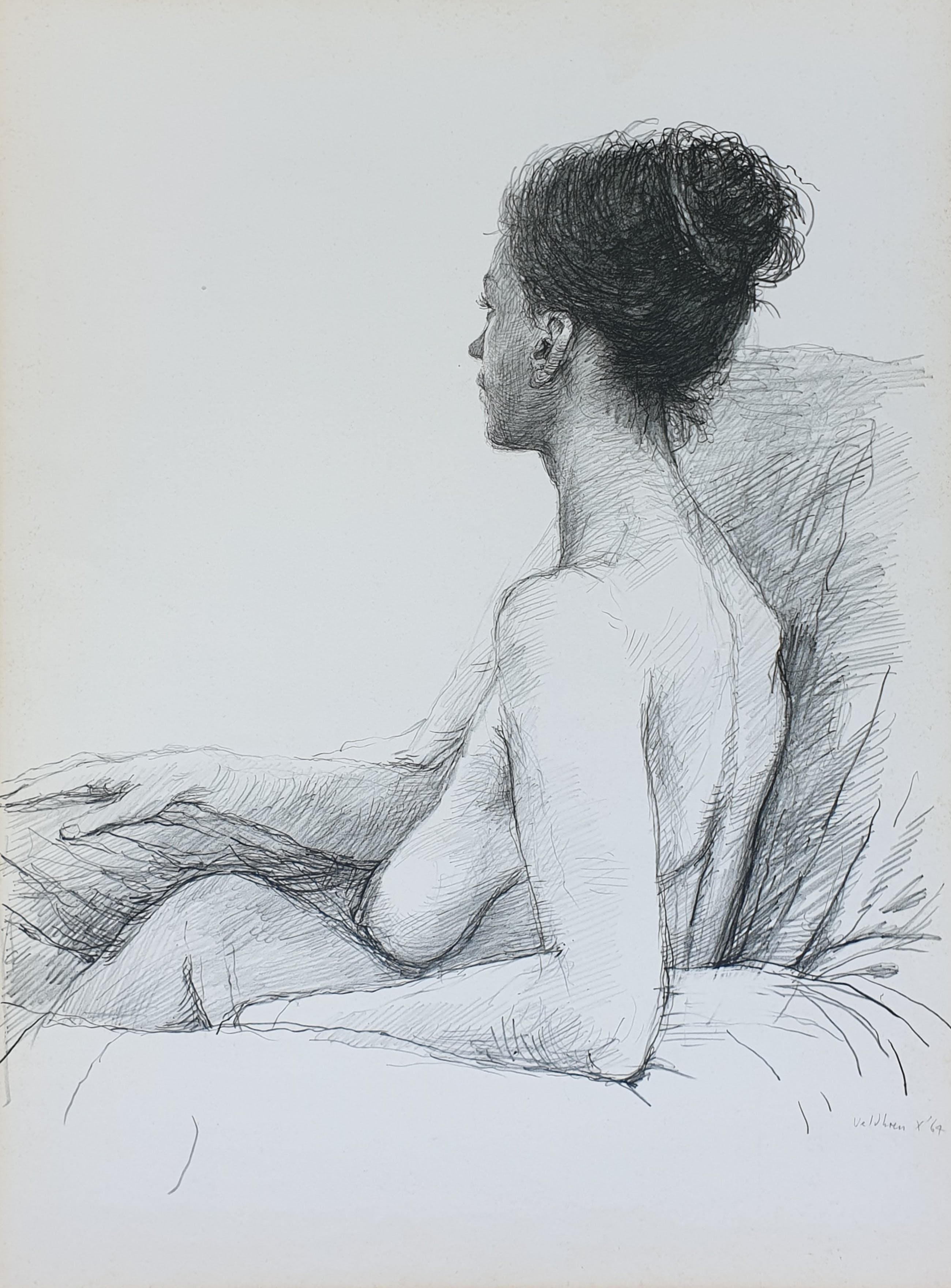 Aat Veldhoen Rotaprint Titel onbekend, vrouwelijk naakt Rechtsonder in de druk gesigneerd Veldhoen x 64 Papiermaat 32,60 x 43,80 cm