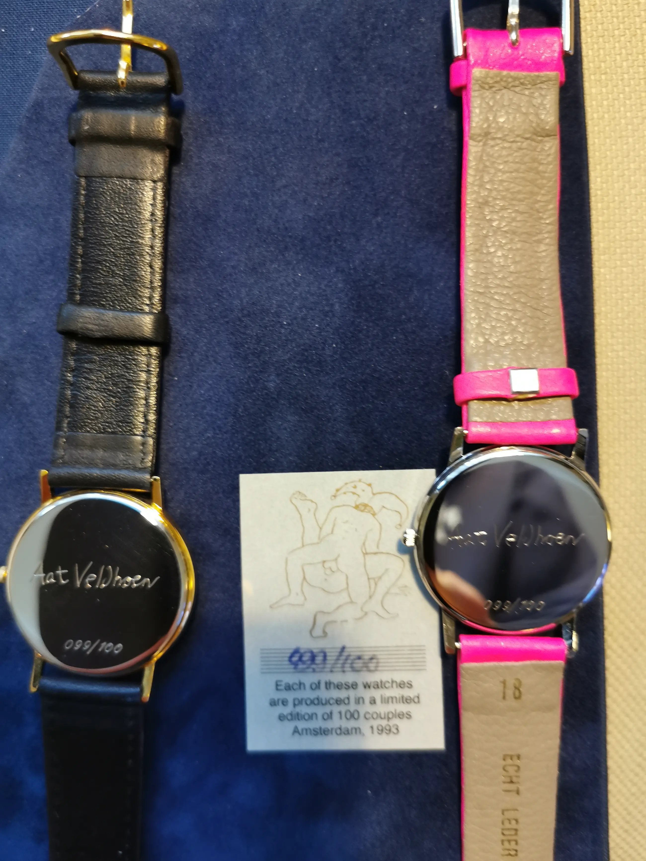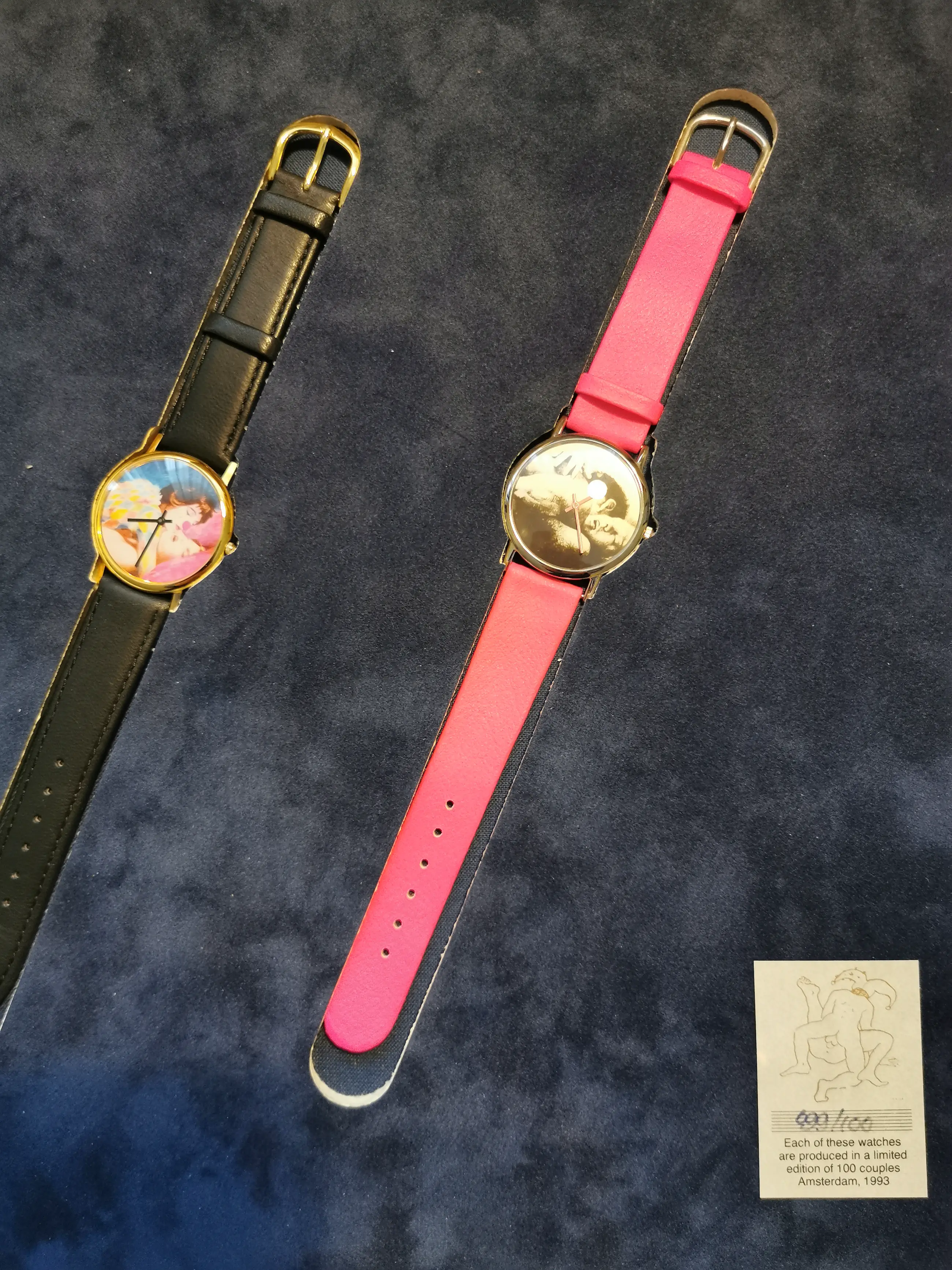 cassette met gedicht en zeefdruk + 2 horloges beide gesigneerd beperkte oplage 99/100