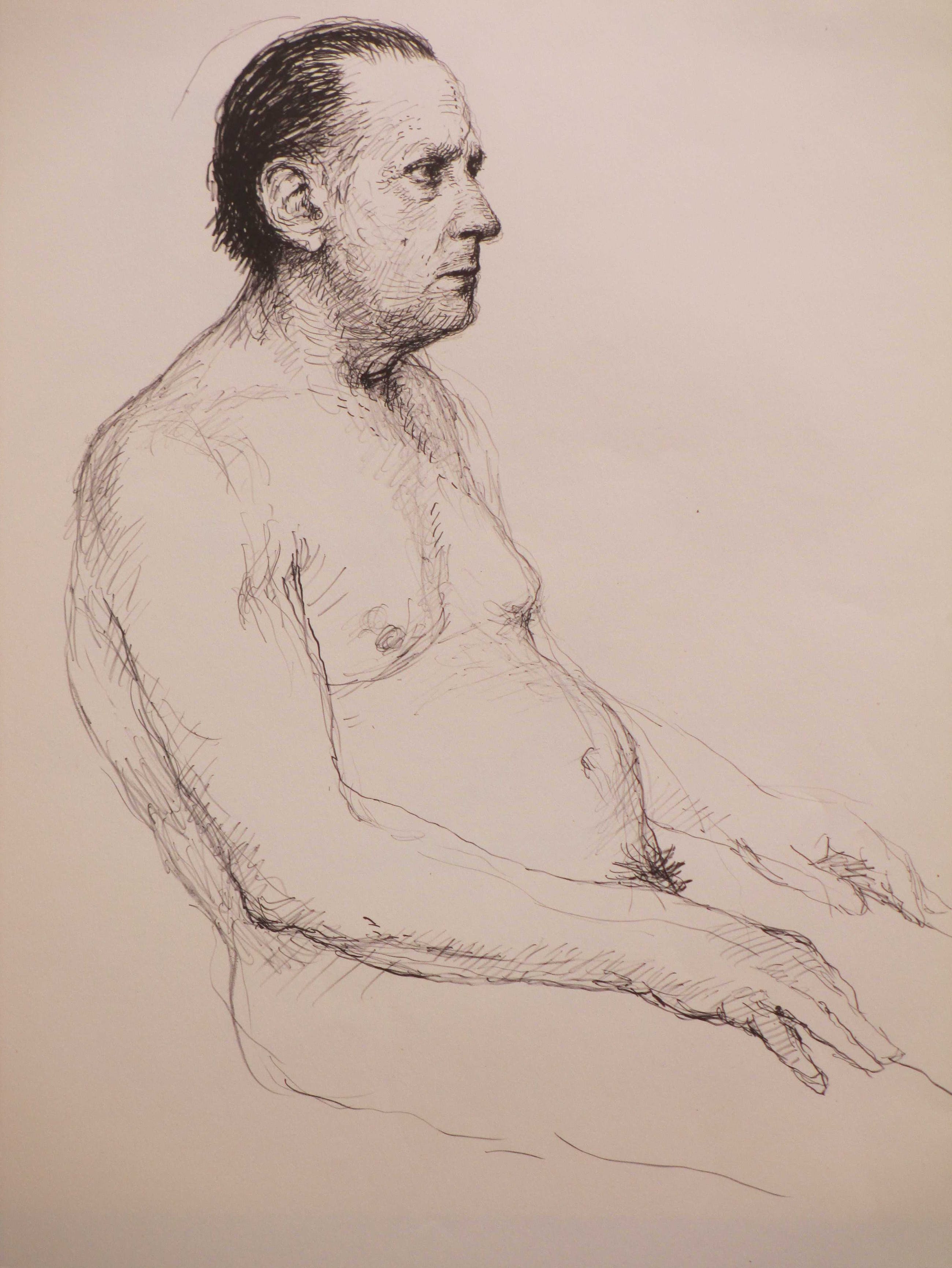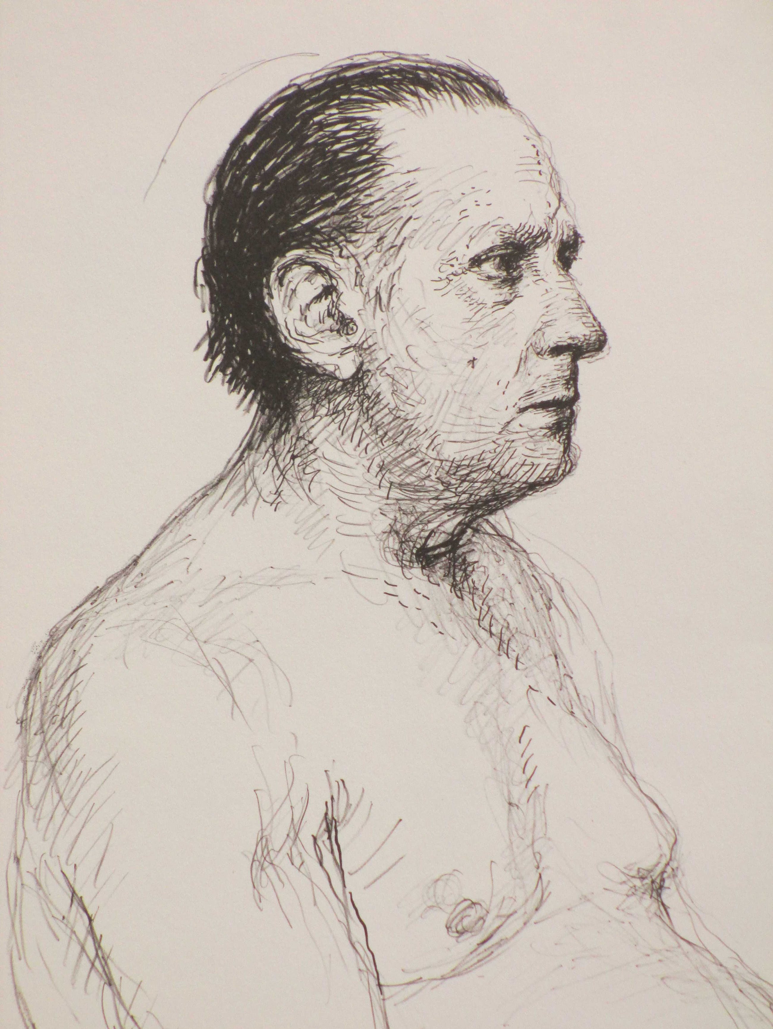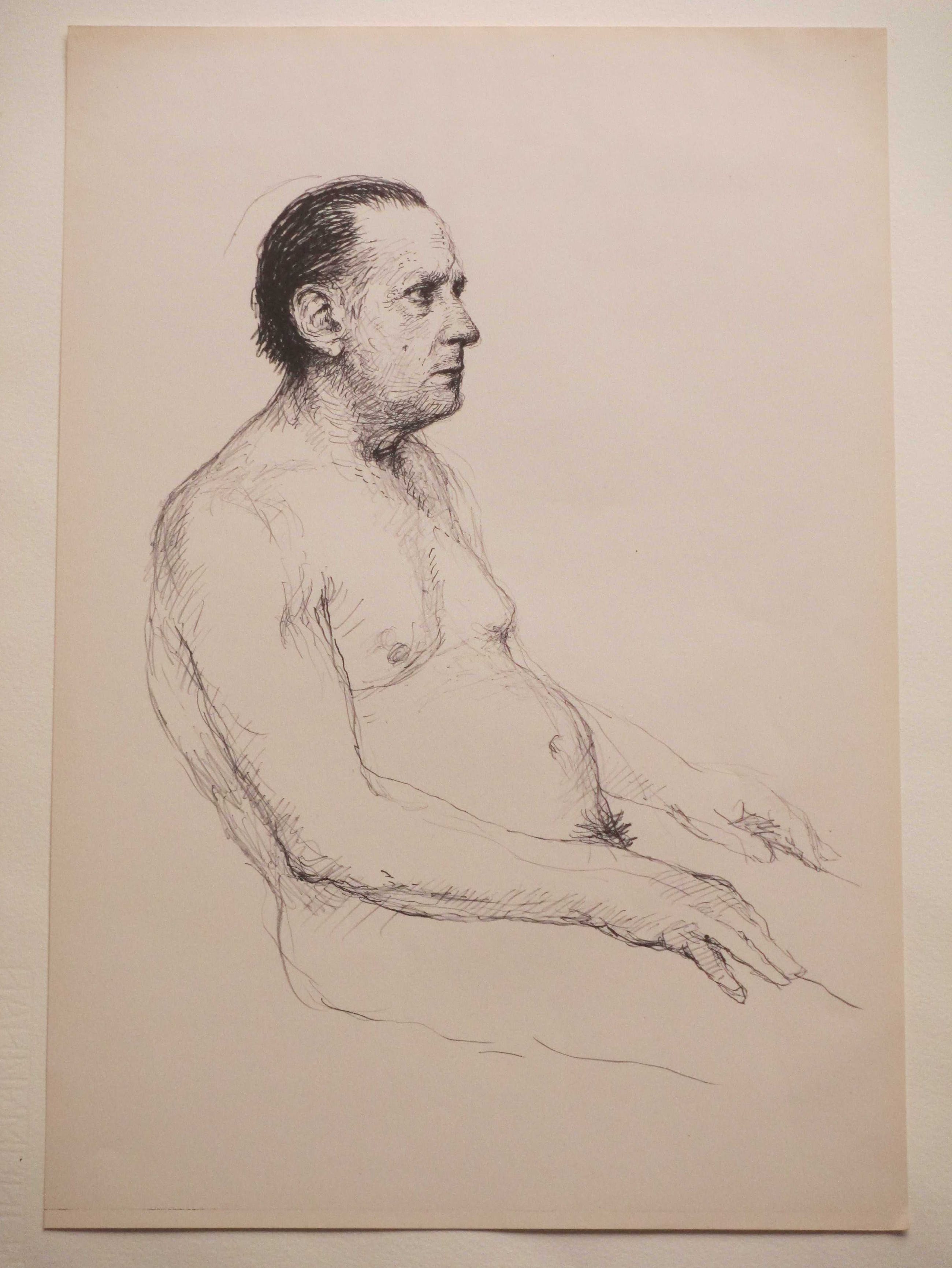 Rotaprent in offset door Aat Veldhoen Voorstelling van een zittende naakte man Losbladig, beeldmaat 35x27, bladmaat 46x32 Niet gesigneerd Authenticiteit volledig gegarandeerd