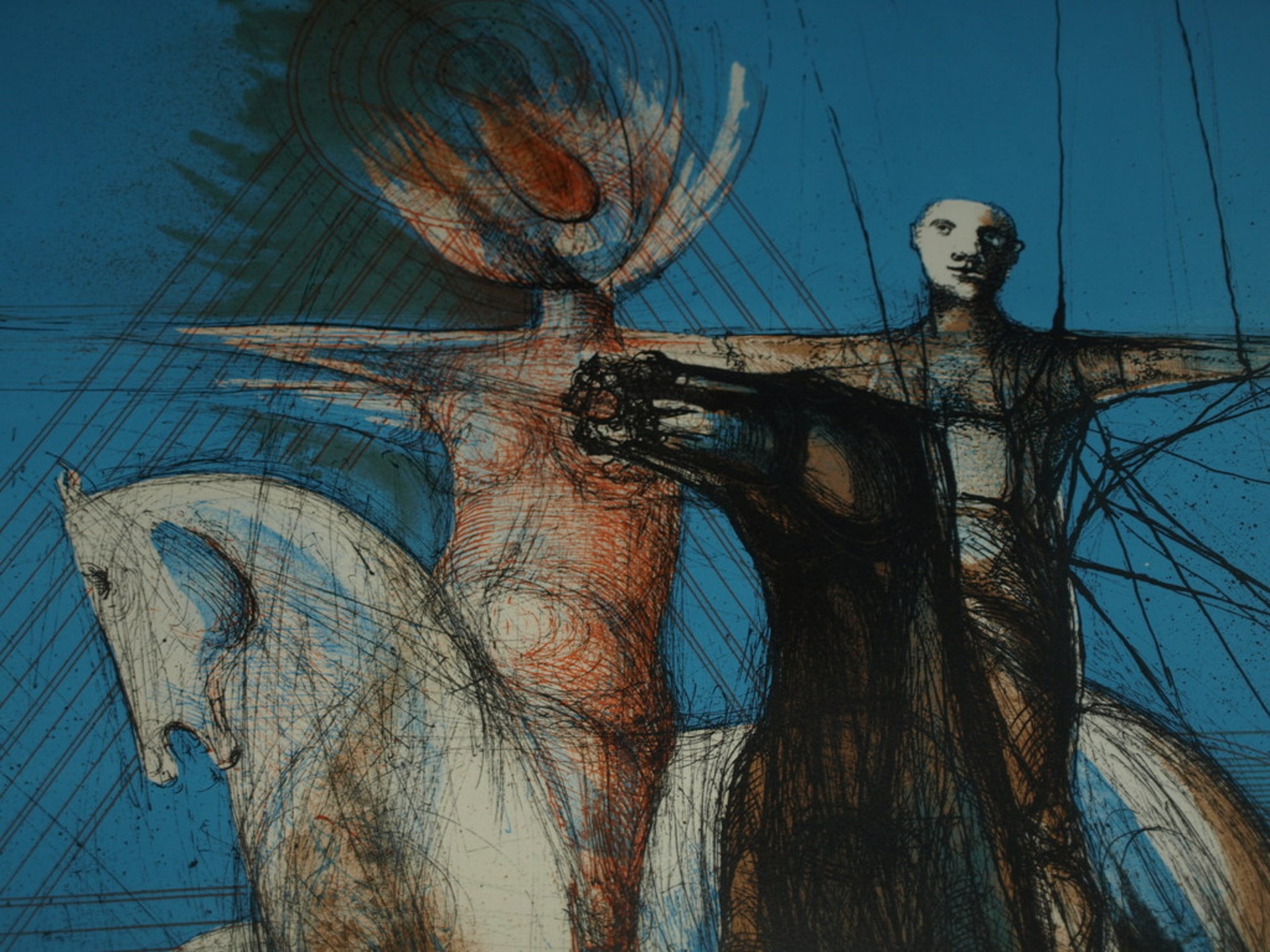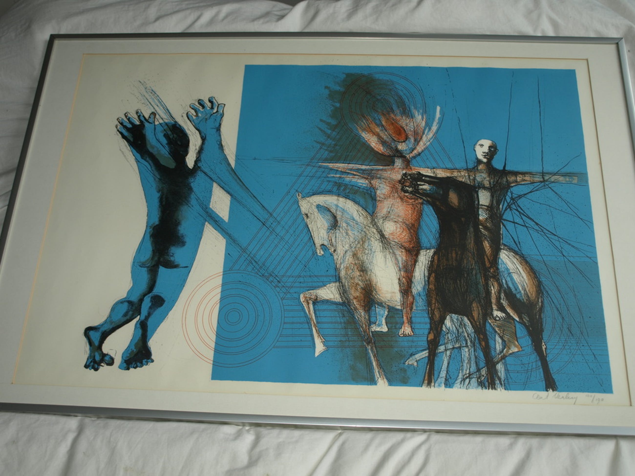 Een zéér grote kleurenlitho van de Nederlandse kunstenaar Aat Verhoog.