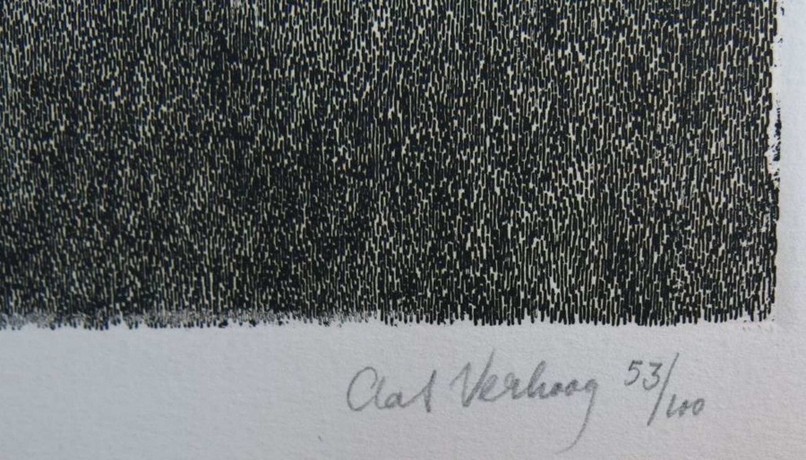 Conditie: Het papier is licht vergeeld, en heeft wat kreukels in de witrand; wanneer het werk wordt ingelijst zal dit niet meer te zien zijn. Het beeld is in goede staat.