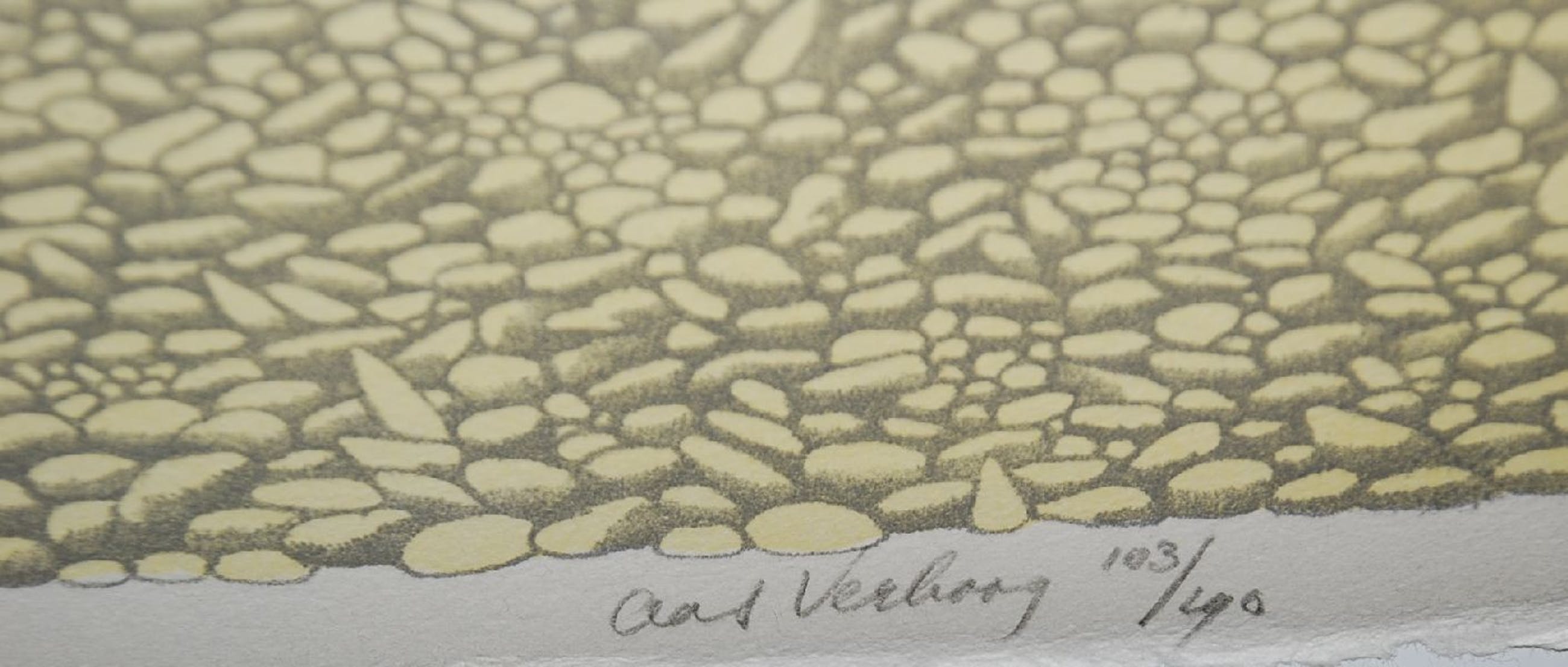 Kleurenlitho van Aat Verhoog. Op mooi geschept papier.