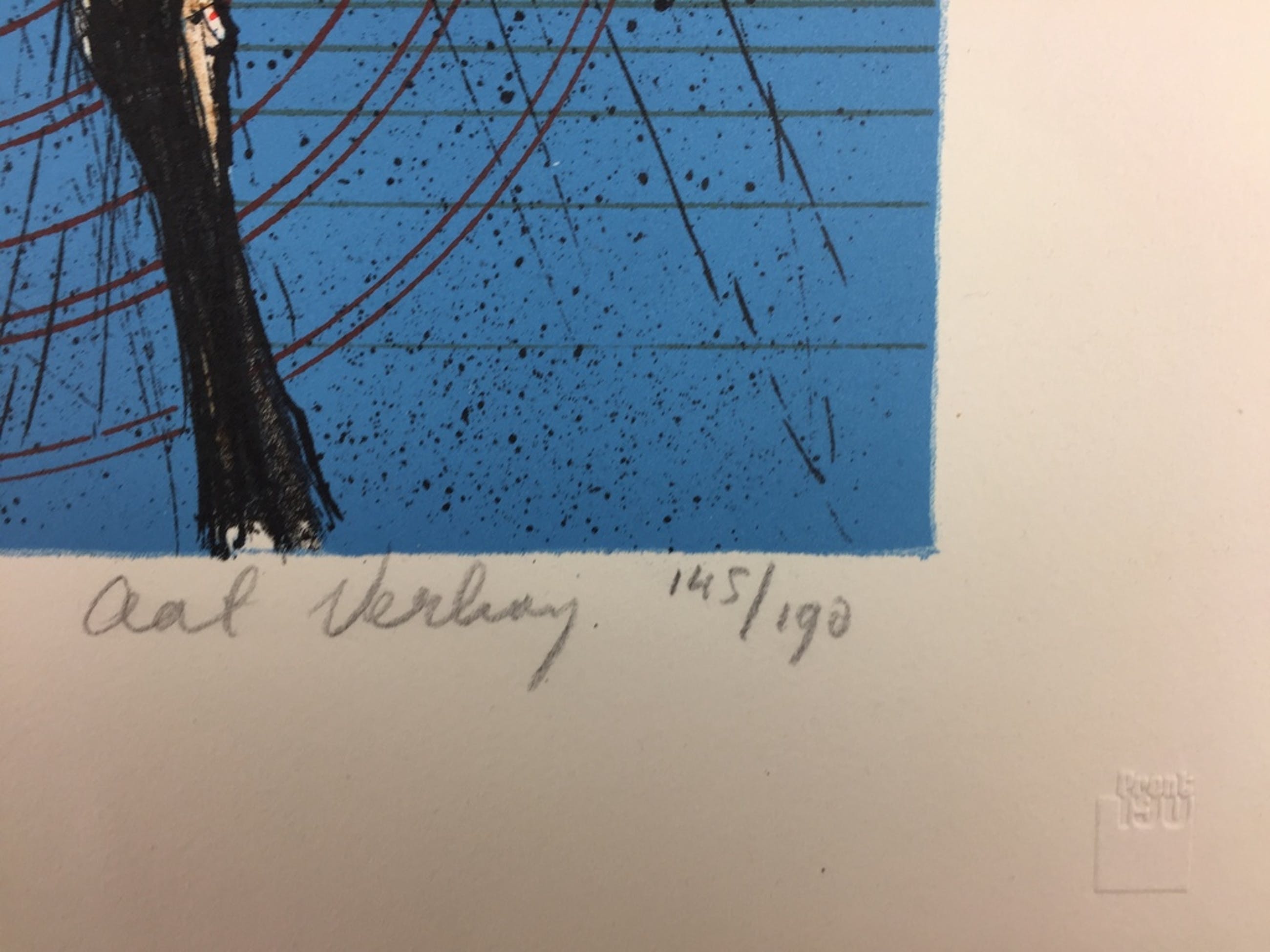 Mooie litho uit 1965 van de hand van Aat Verhoog. Prachtige kleur blauw.