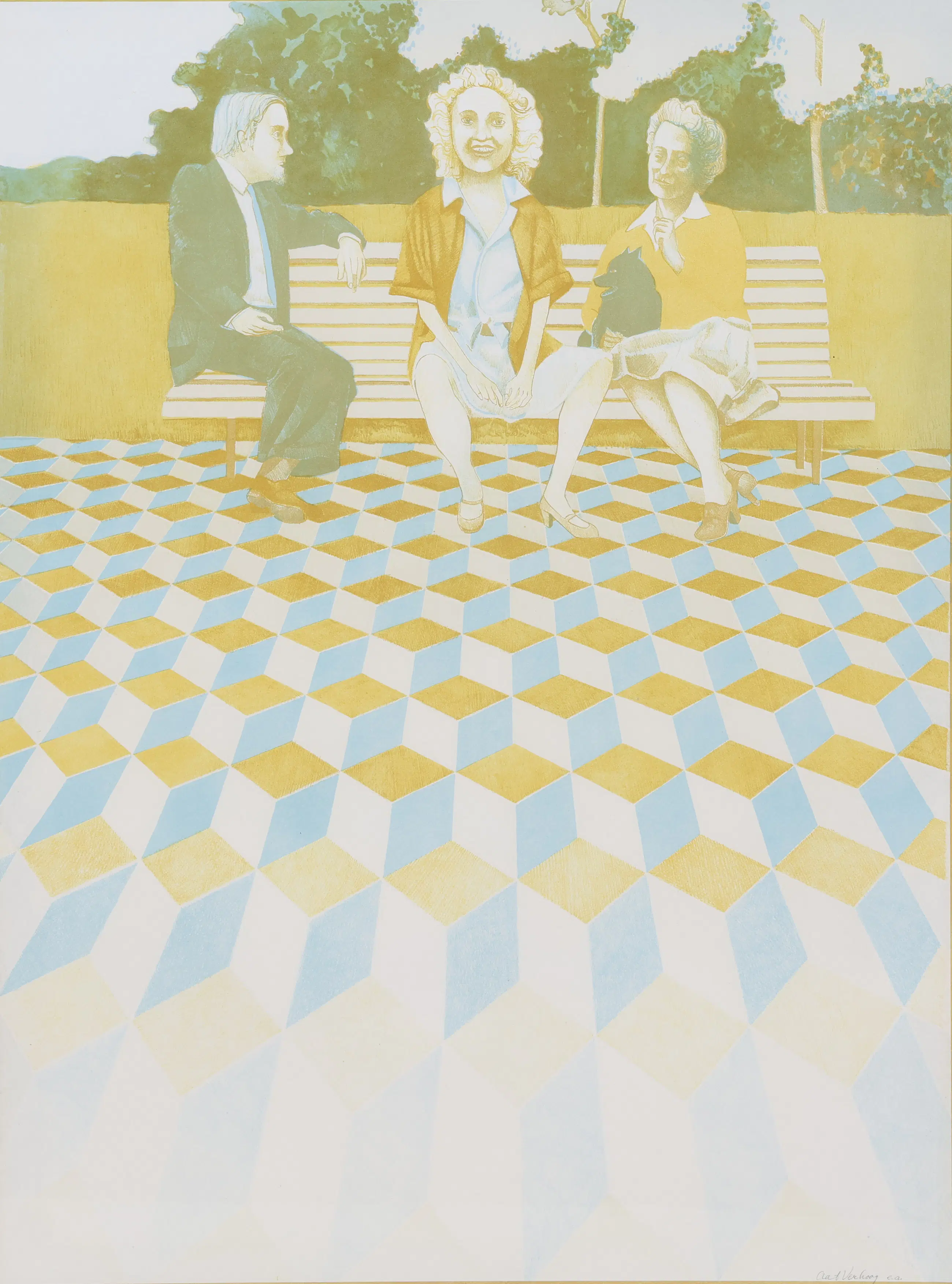 Dit werk is gemaakt door Aat Verhoog (1933). Aat Verhoog (Rijswijk, 1933) is een Nederlandse schilder, graficus, beeldhouwer en architect, en wordt gerekend tot de Nieuwe Haagse School. Hij studeerde aan de Koninklijke Academie van Beeldende Kunsten en daarna aan de Vrije Academie in Den Haag. In zijn werk richt hij zich vooral op figuurvoorstellingen, sport- en spelscènes en architectuur. Verhoog was medeoprichter van de groep Atol en later lid van de Amsterdamse kunstenaarsgroep Groep Scorpio.