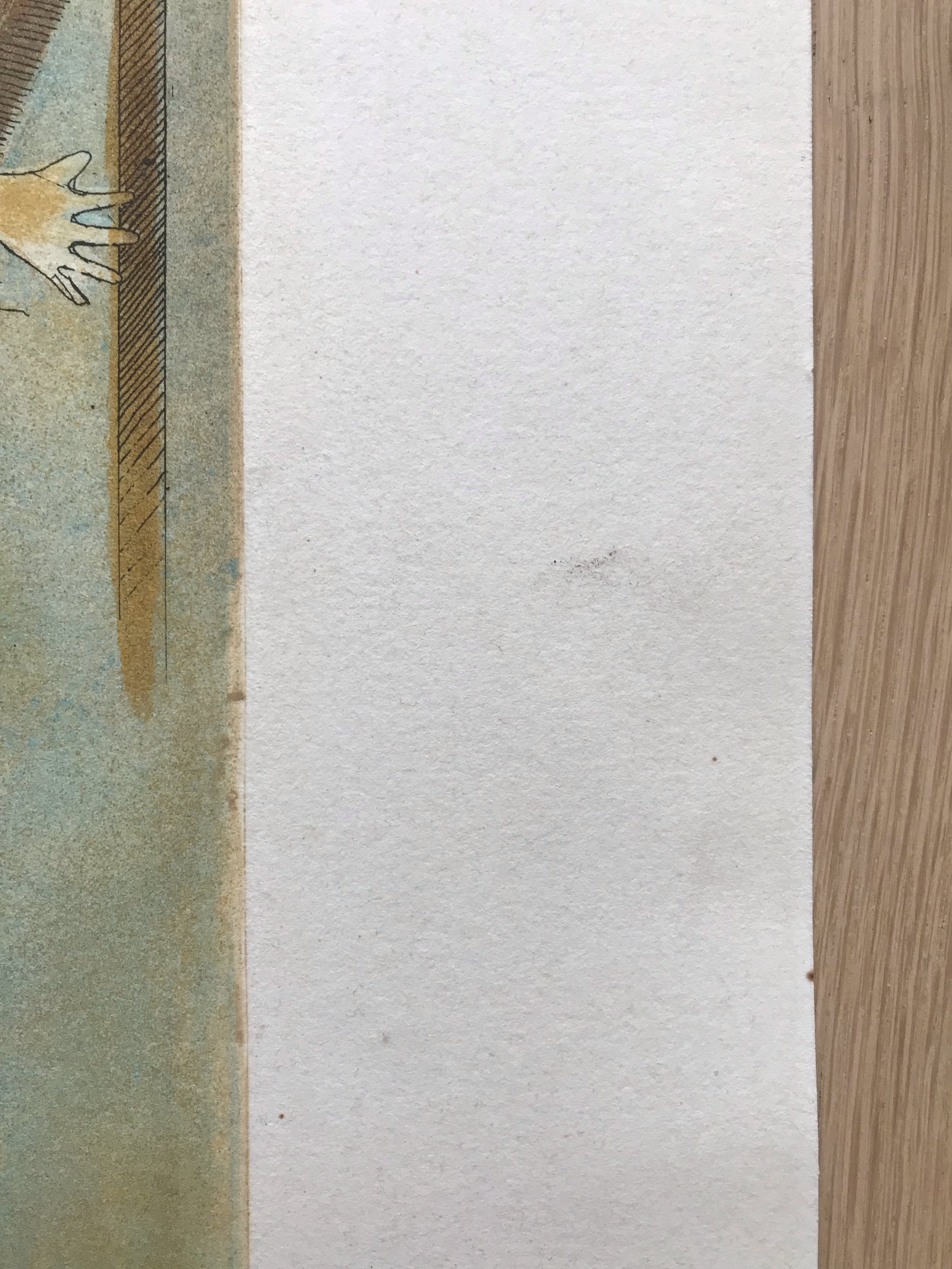 Op de witte rand zijn welvingen en enige vouwen te zien. Het motief zelf is in een goede conditie, dus zonder beschadigingen. Het motief is 48 x 35 cm groot.