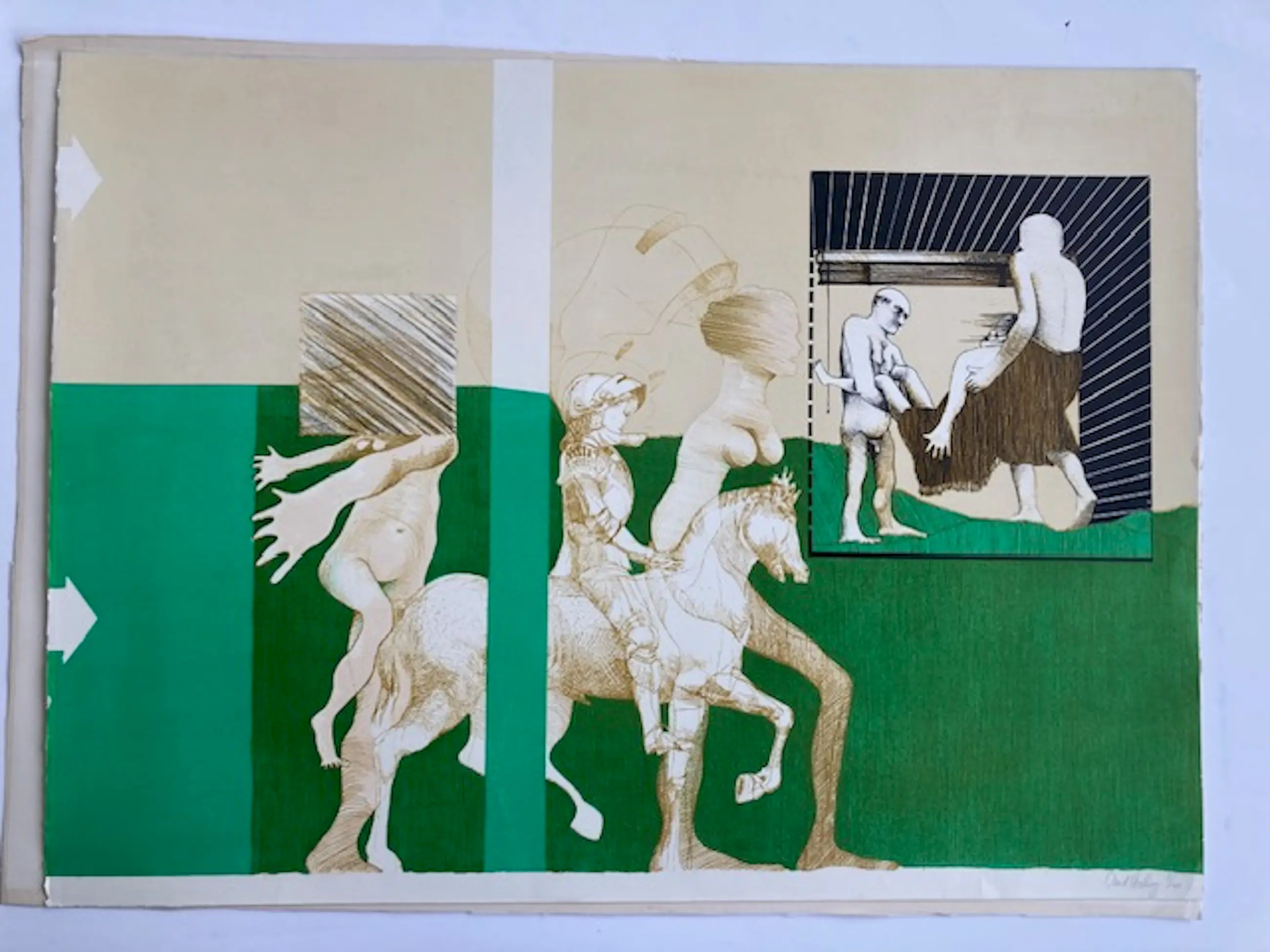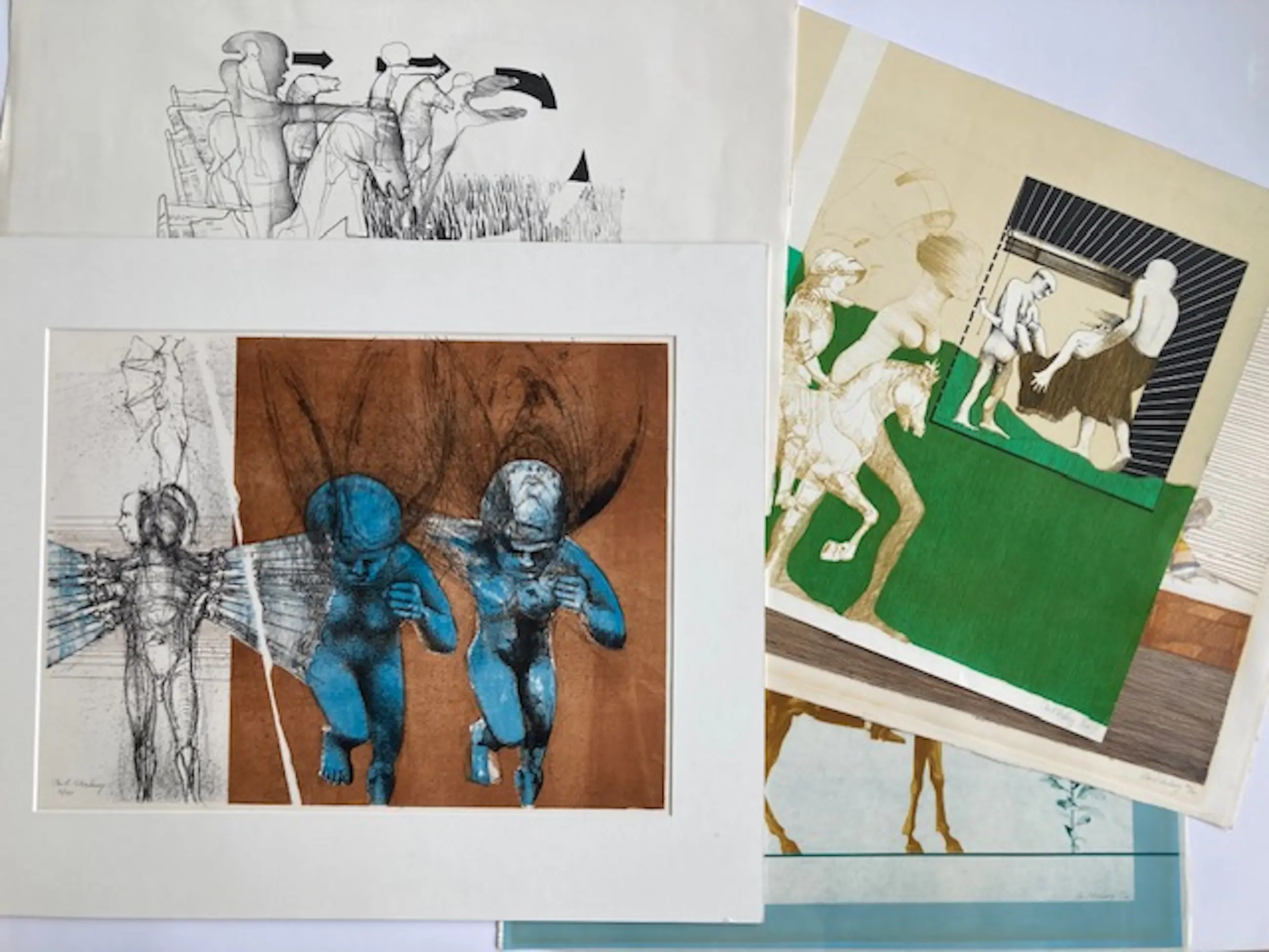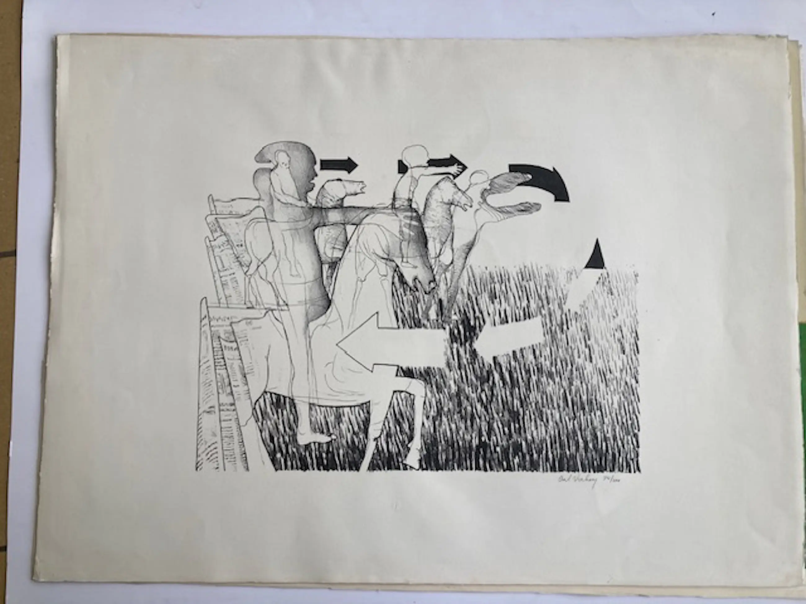 Kavel met vijf bladen van Aat Verhoog. Jaren zestig/zeventig. Mooi tijdsbeeld. Paarden en mensen. Gesigneerd en genummerd. Maten en conditie verschillend van zeer goed tot redelijk. U kunt het werk vooraf komen bekijken in de schatkamer van galerie Rotor in Gorinchem of na aankoop ophalen. Het werk kan ook verzonden worden via aangetekende post. Of tijdelijk gratis worden opgeslagen tot nadere orde. Ook kunnen ondertussen uw inlijsting verzorgen.