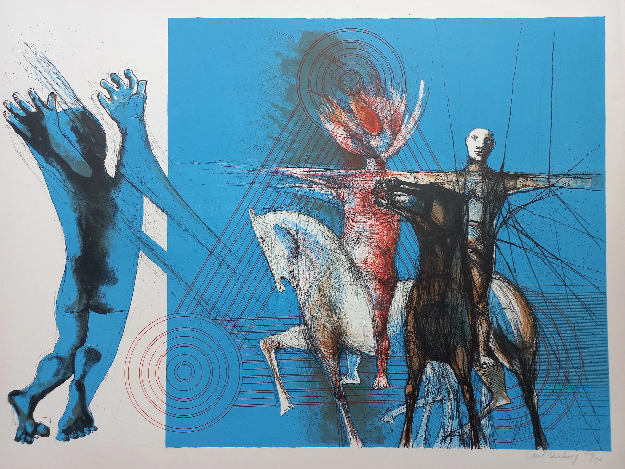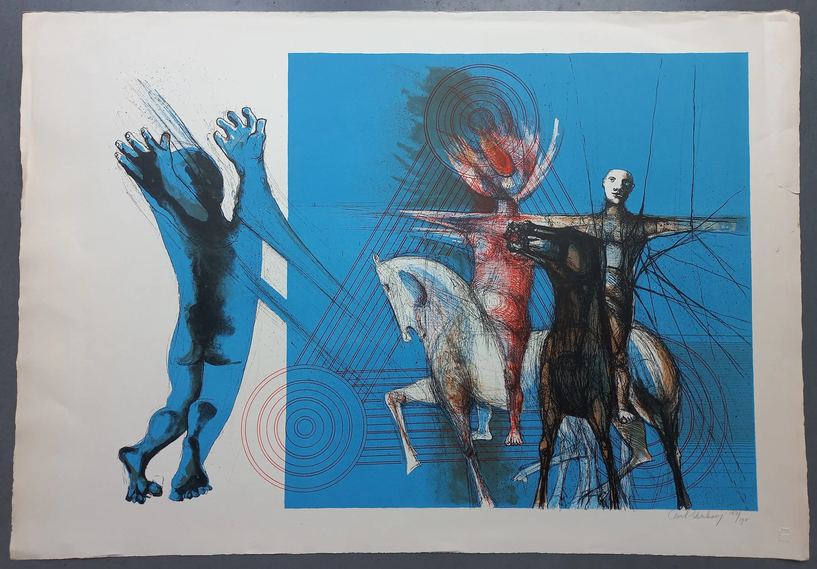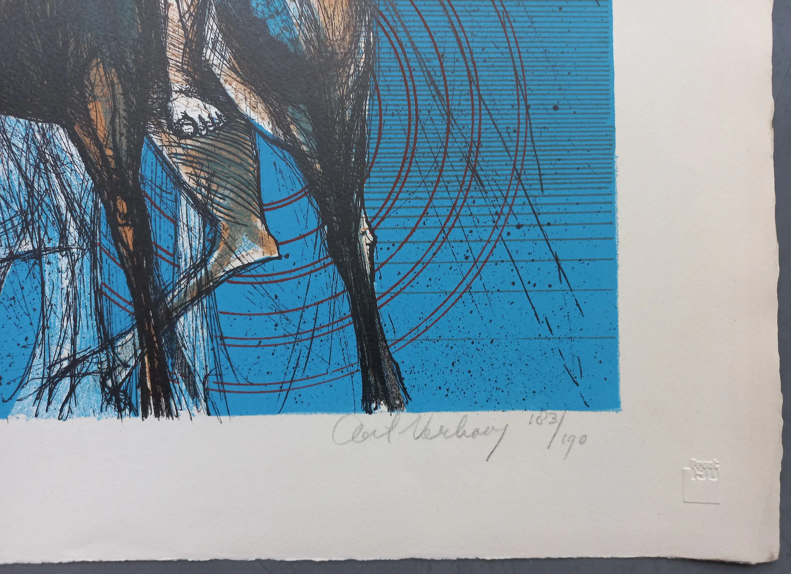 Gesigneerde litho van de kunstenaar Aat Verhoog (1933), gedrukt in een oplage van 190 stuks. Rechtsonder is het werk gesigneerd in potlood en 183/190. Papiermaat 60.5 x 86.5 cm. (hxb)