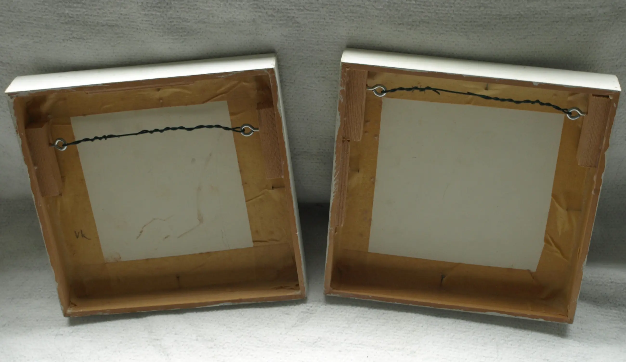 De etsen zijn in goede staat. De houten lijsten hebben slijtplekjes en vlekjes. Zie ook de foto’s voor een eigen indruk. Kunnen zo aan de muur.