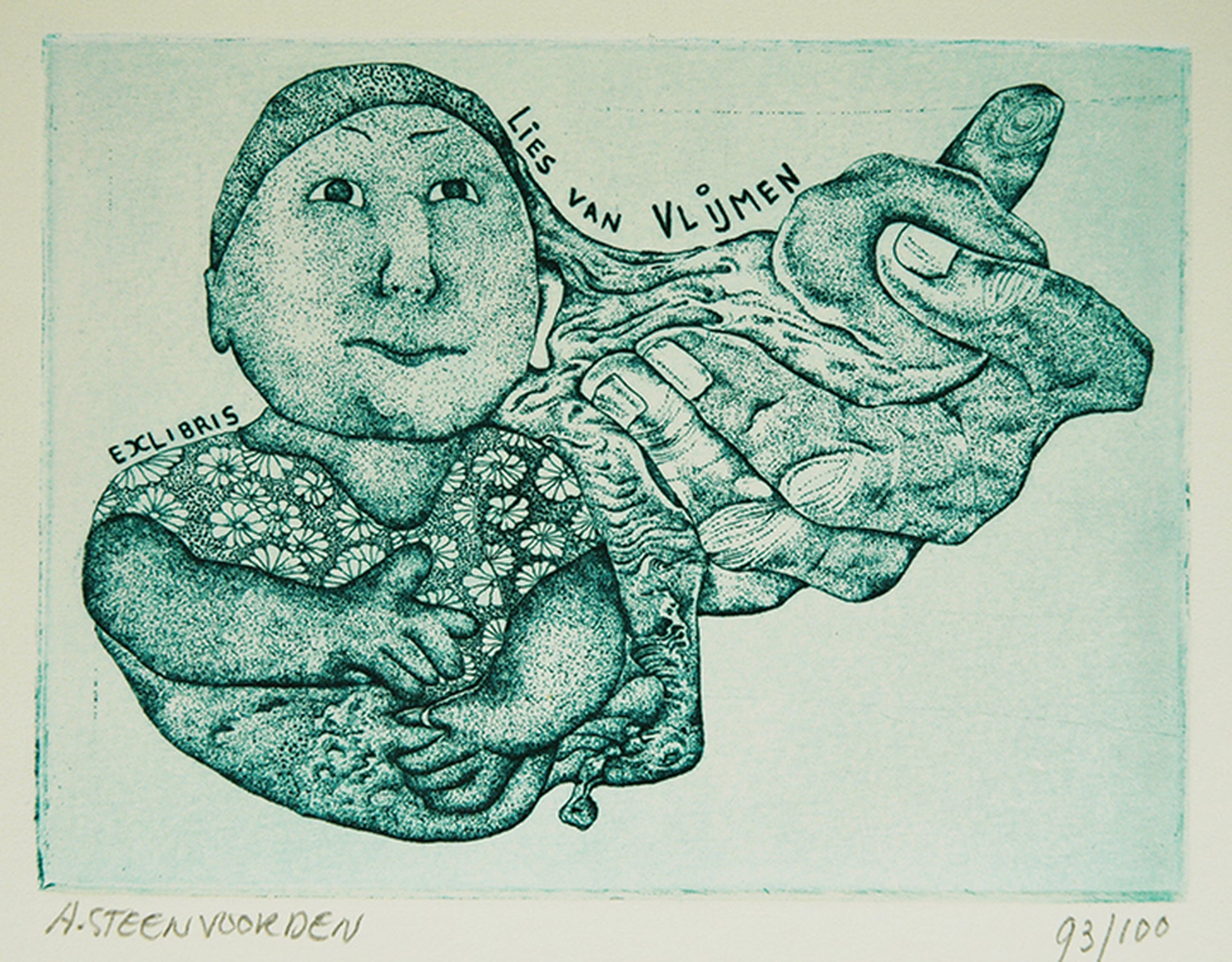 De Noordwijkse kunstenaar Ab Steenvoorden maakte al in de jaren zeventig van de vorige eeuw deel uit van een kunstenaarsgroep in Leiden, De Bange Duivel, die gevestigd was in een huis met een eigen drukkerij aan de Bakker Koffstraat. Ab Steenvoorden maakte een groot aantal exlibris, allemaal in de ets-techniek. Ze zijn onmiddellijk herkenbaar door hun weelderige, fantasierijke stijl.