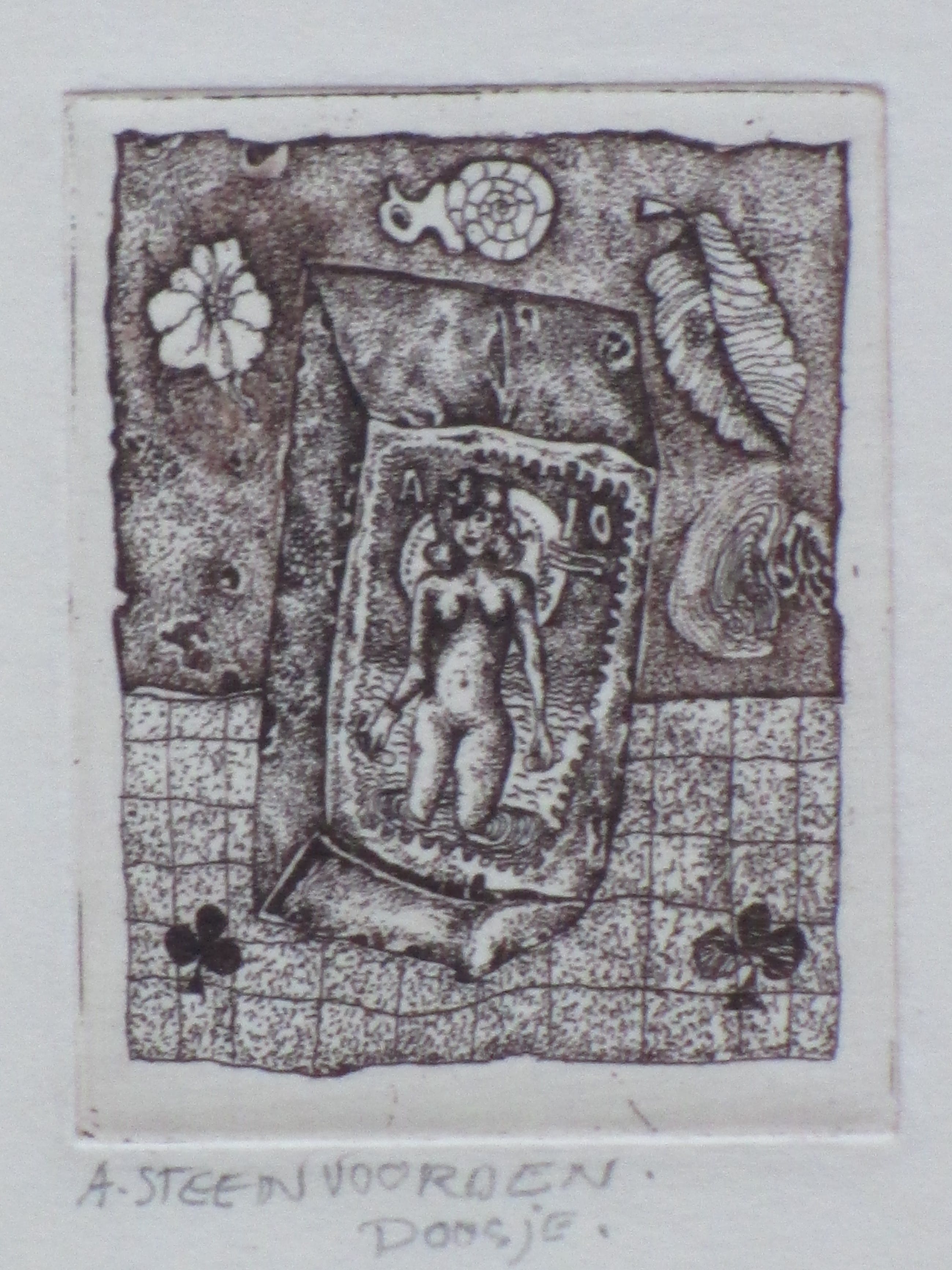 Ets door Ab Steenvoorden Erotische voorstelling van een naakte vrouw Losbladig, beeldmaat 6.5x4.5 cm, bladmaat 15x12 Gesigneerd en getiteld in potlood m.o.: 'A. Steenvoorden' en 'Doosje' Authenticiteit volledig gegarandeerd