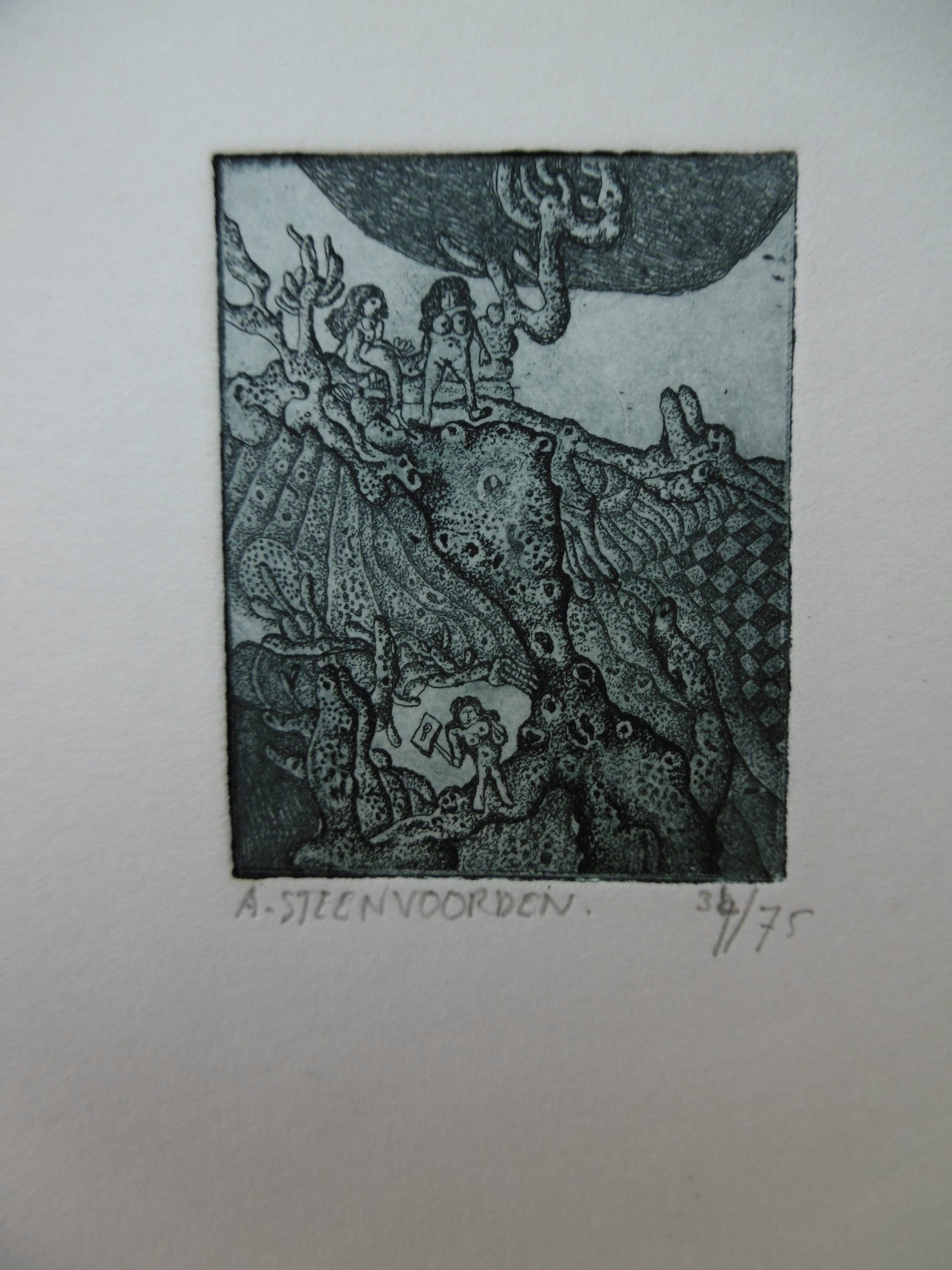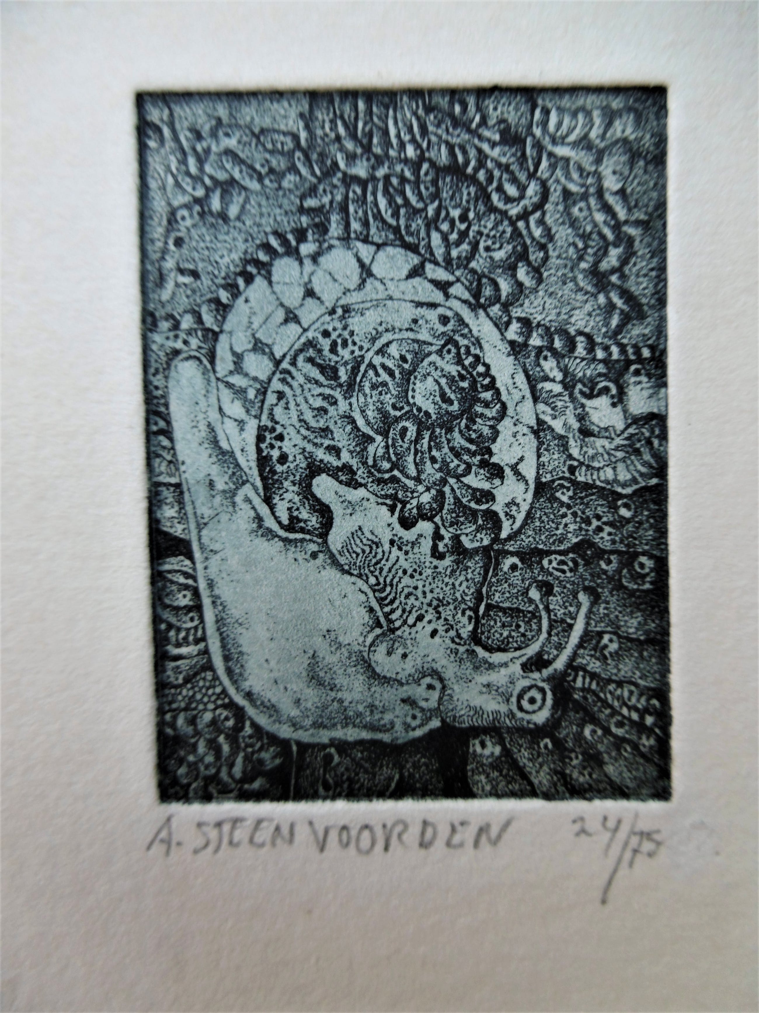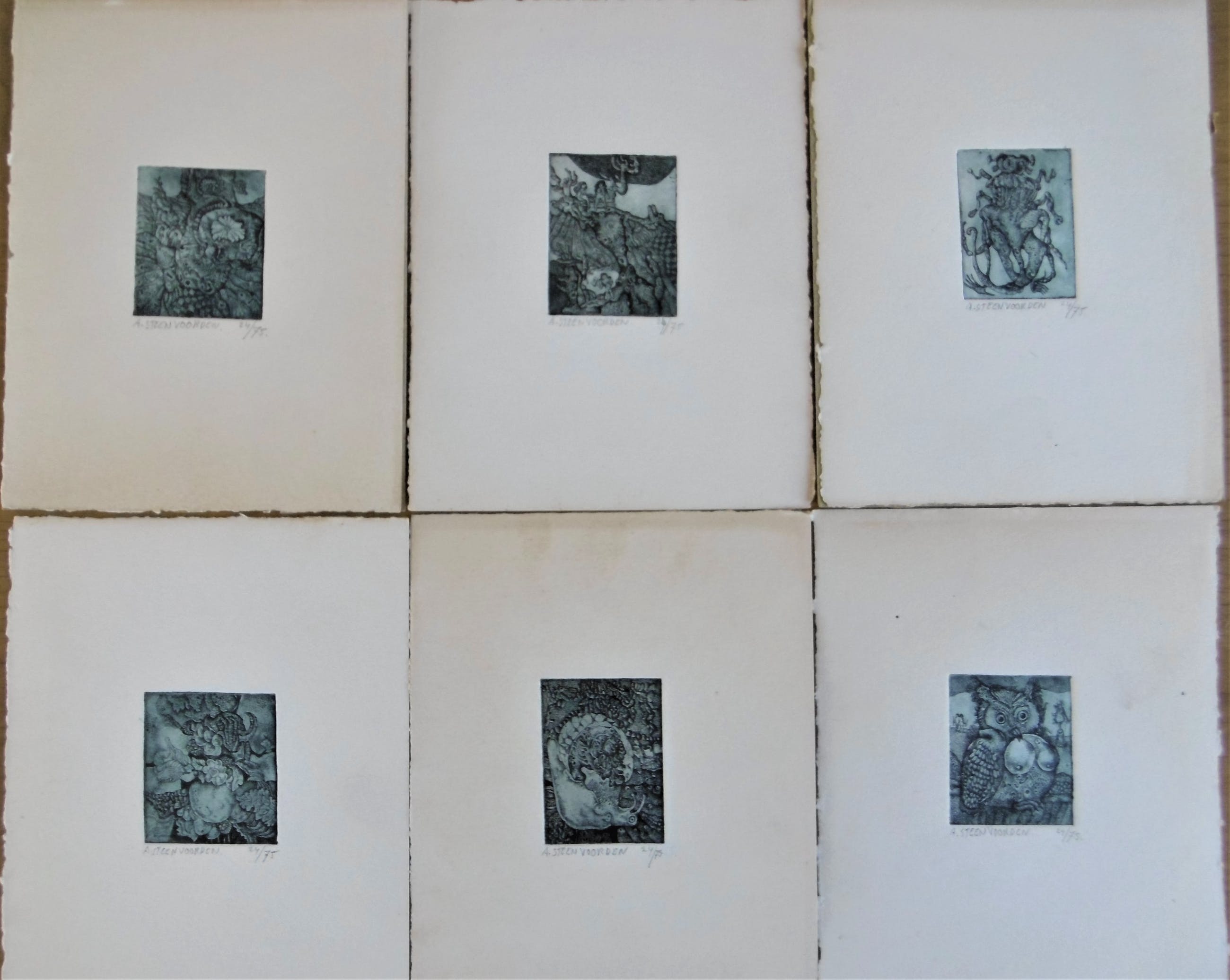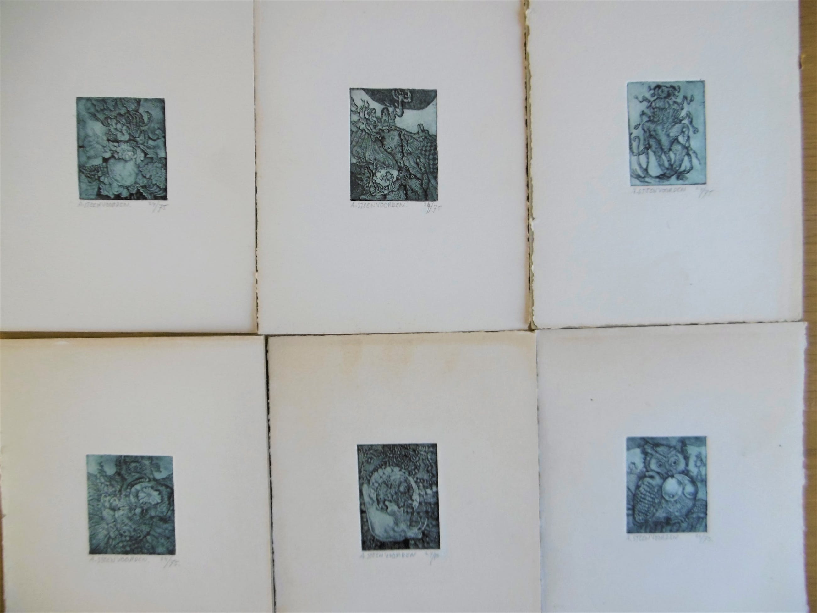 6 prachtige etsen van kunstenaar Ab Steenvoorden. Allen 16 x 13 cm en voor zien van zijn handtekening.