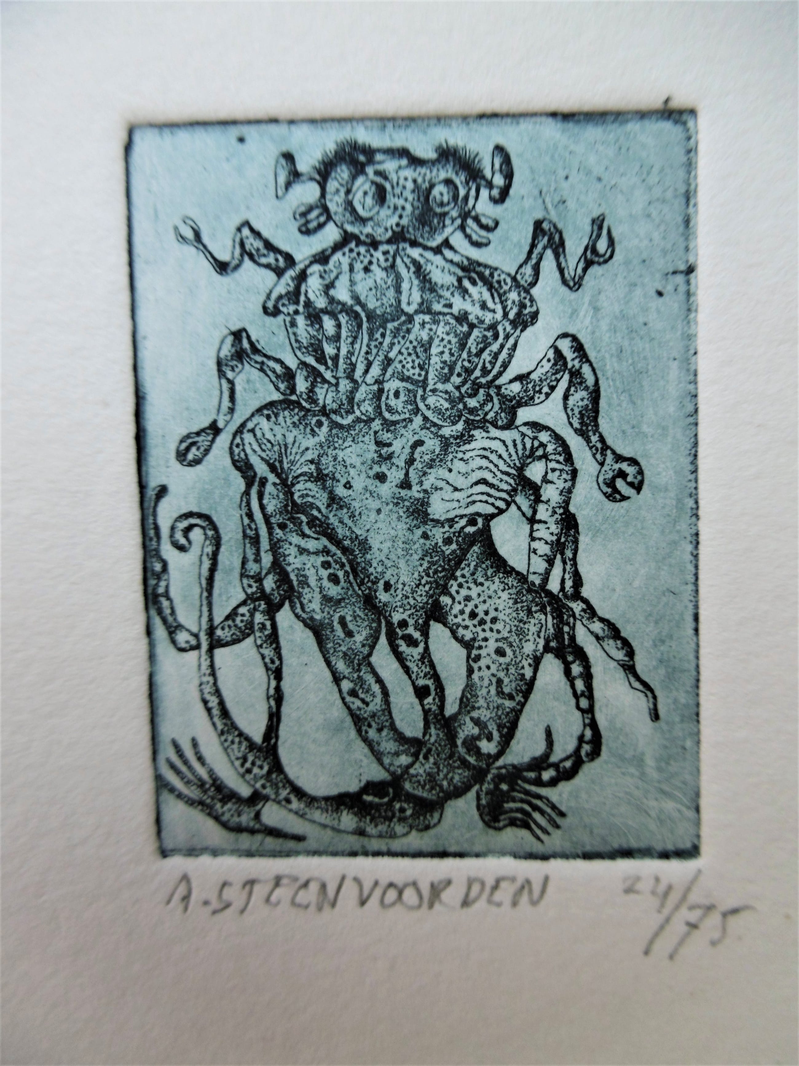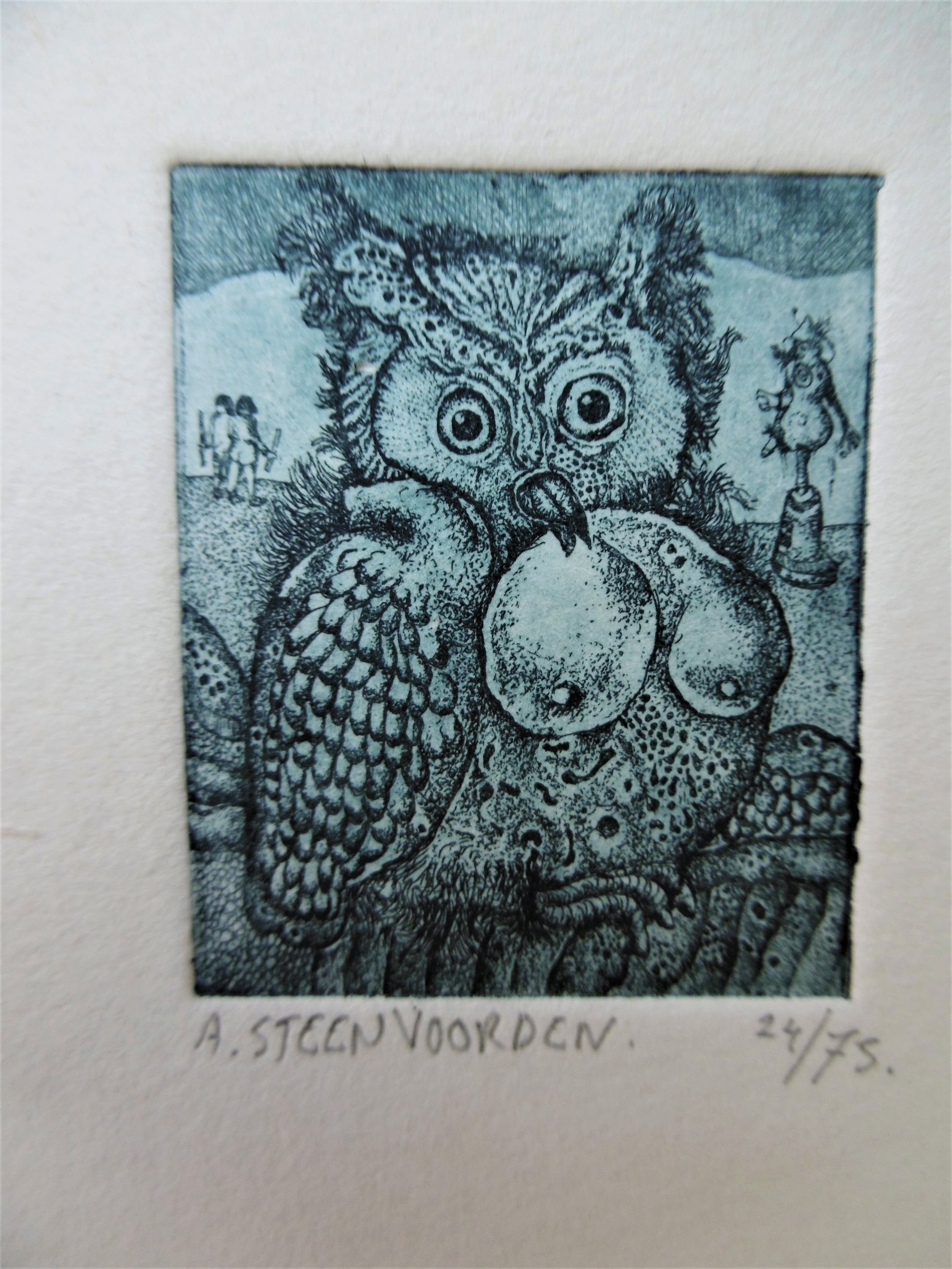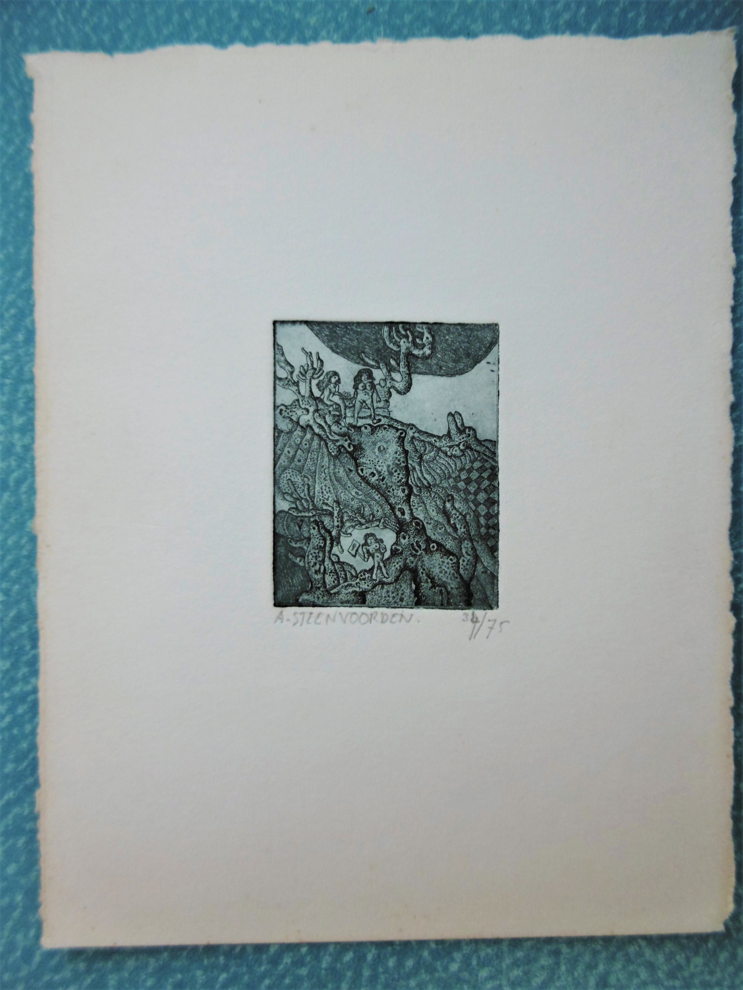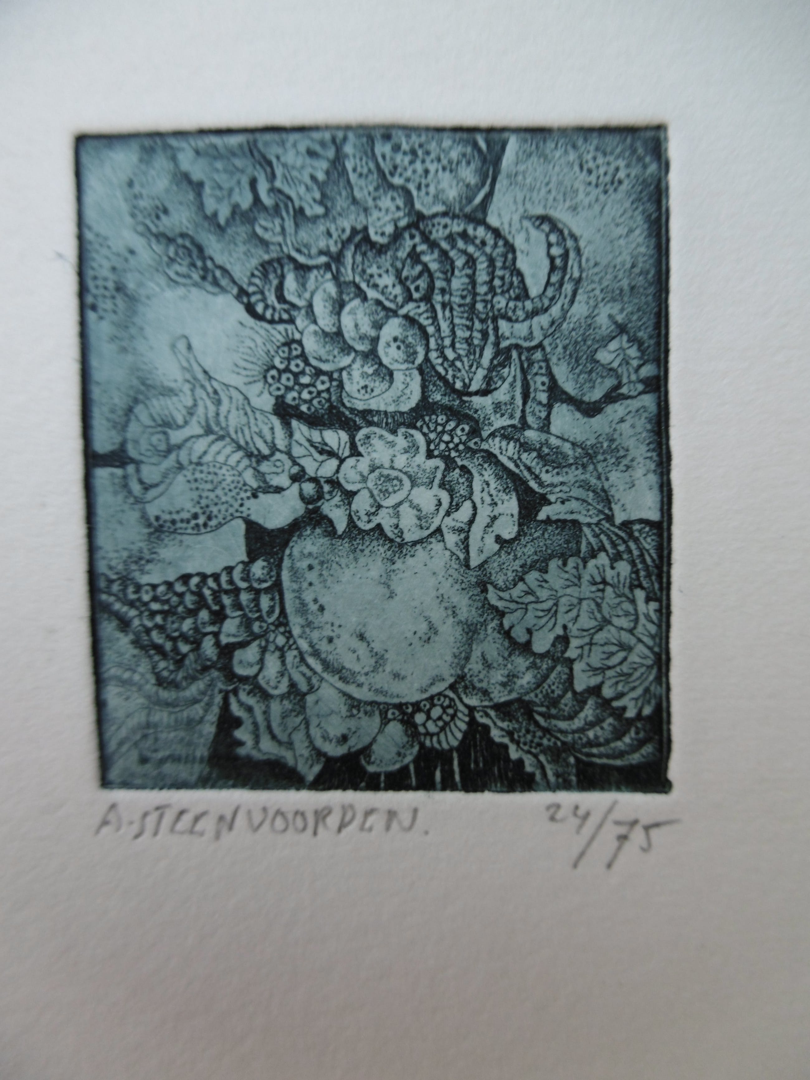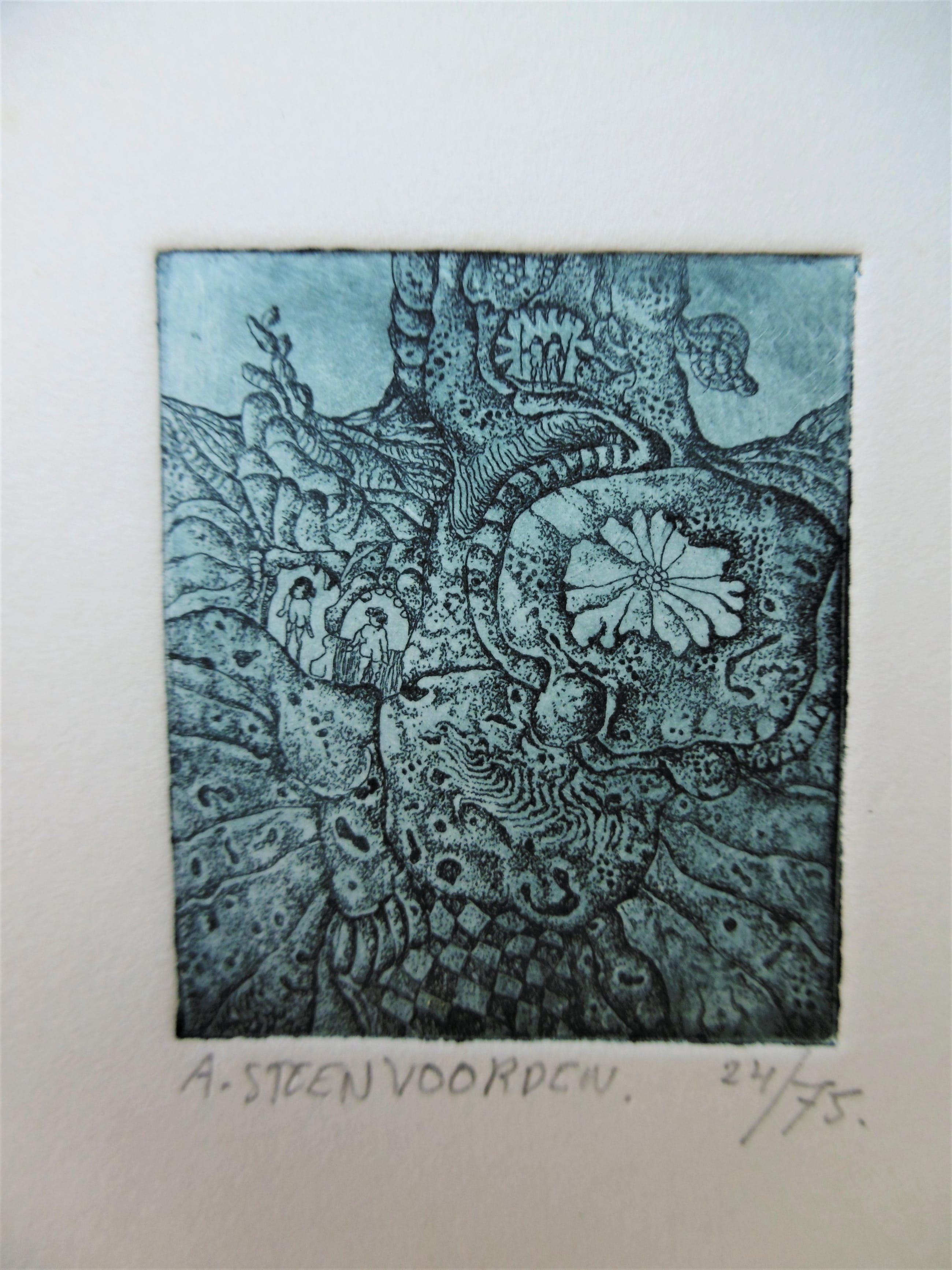 6 prachtige etsen van kunstenaar Ab Steenvoorden. Allen 16 x 13 cm en voor zien van zijn handtekening.
