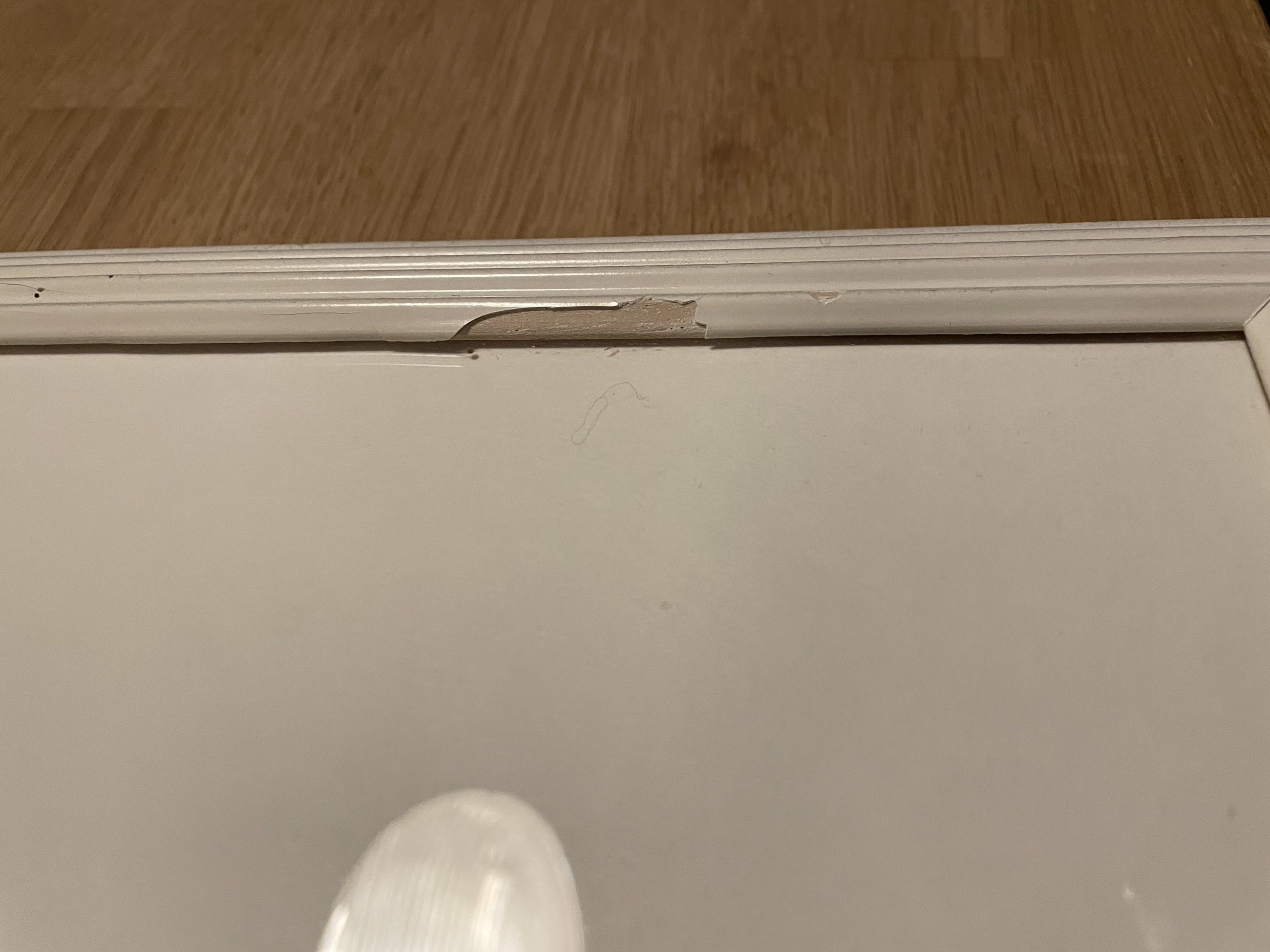 De lijst is op diverse plekken beschadigd. Het werk zelf is in prima conditie.