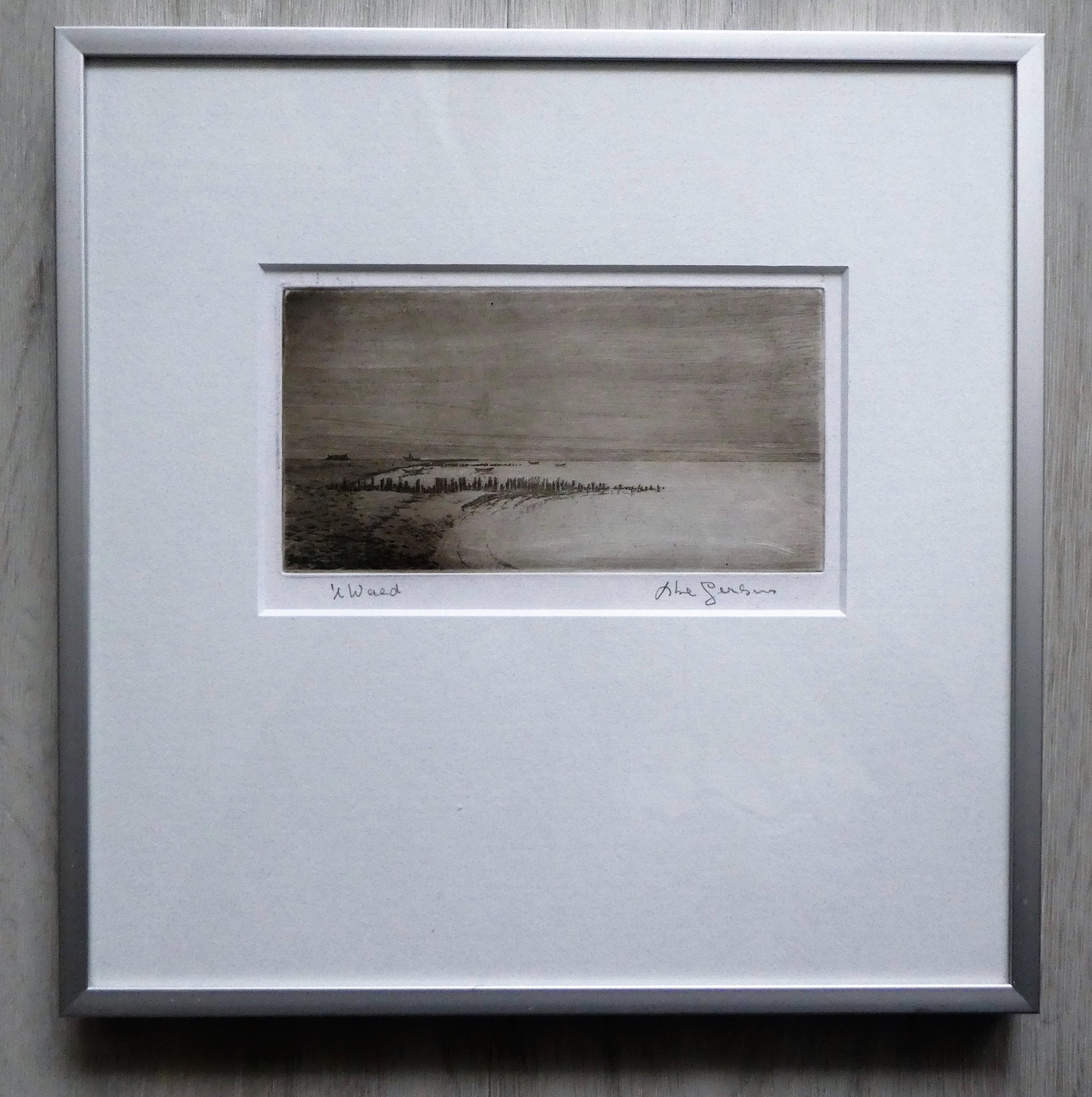 Geen oplage. Met ticket van de kunsthandel. Aluminium lijst en ets in nieuwstaat.