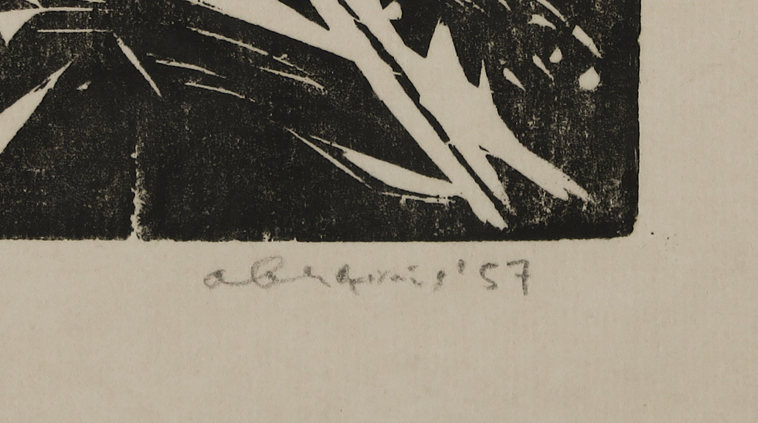 Houtdruk is in goede staat. Aan te bevelen om het werk opnieuw in te lijsten. | |