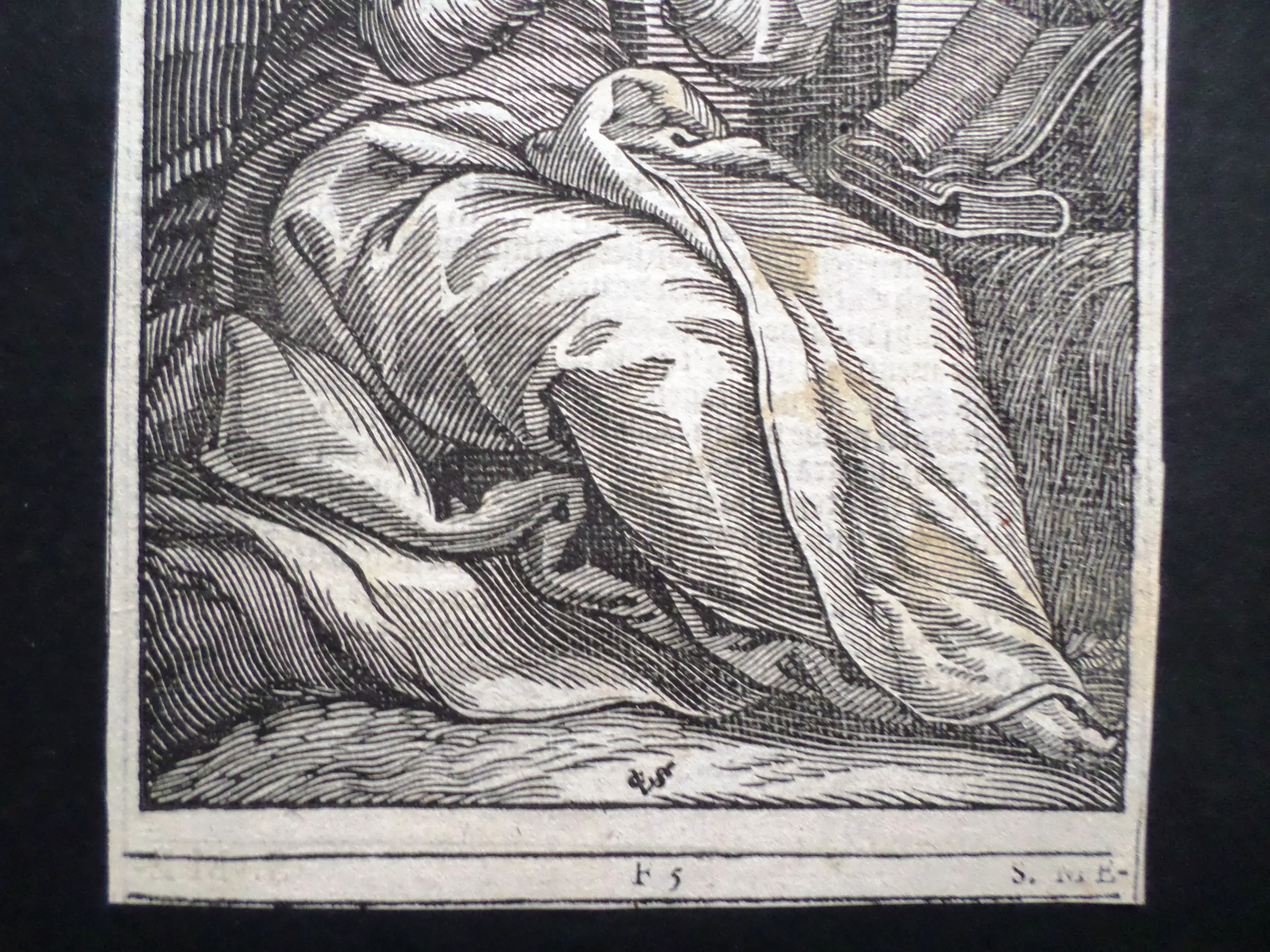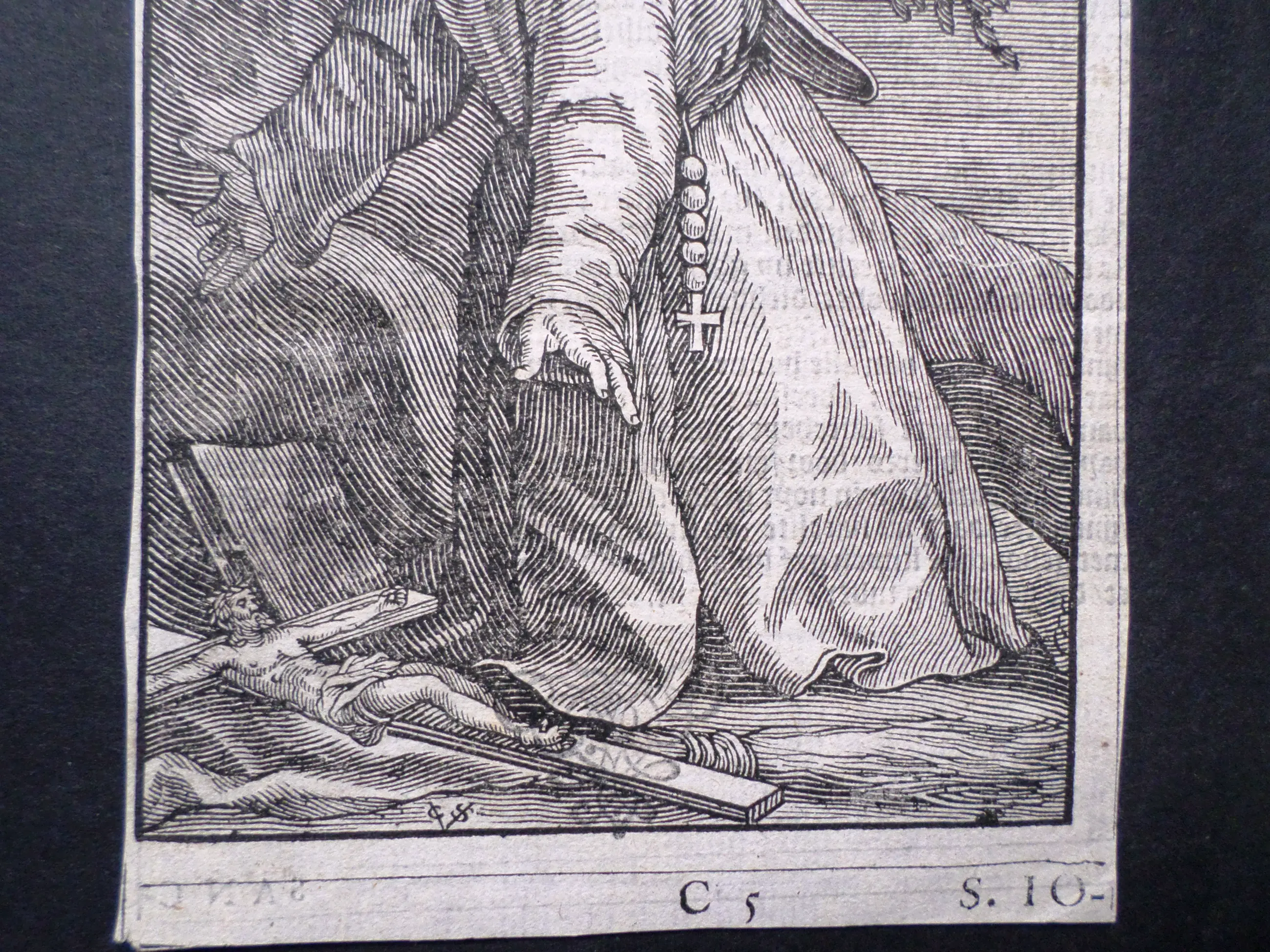 4 religieuze prenten, vervaardigd door Christoffel van Sichem (II) (gemonogrameerd in drie prenten) naar een ontwerp van Abraham Bloemaert uitgegeven in boekvorm door Pieter Jacobsz. Paets. De oorspronkelijke uitgave dateert van 1644. Deze uitgave dateert misschien van later. Houtsnede en tekst in boekdruk. Wordt verzonden naar Belgie, Nederland en Duitsland