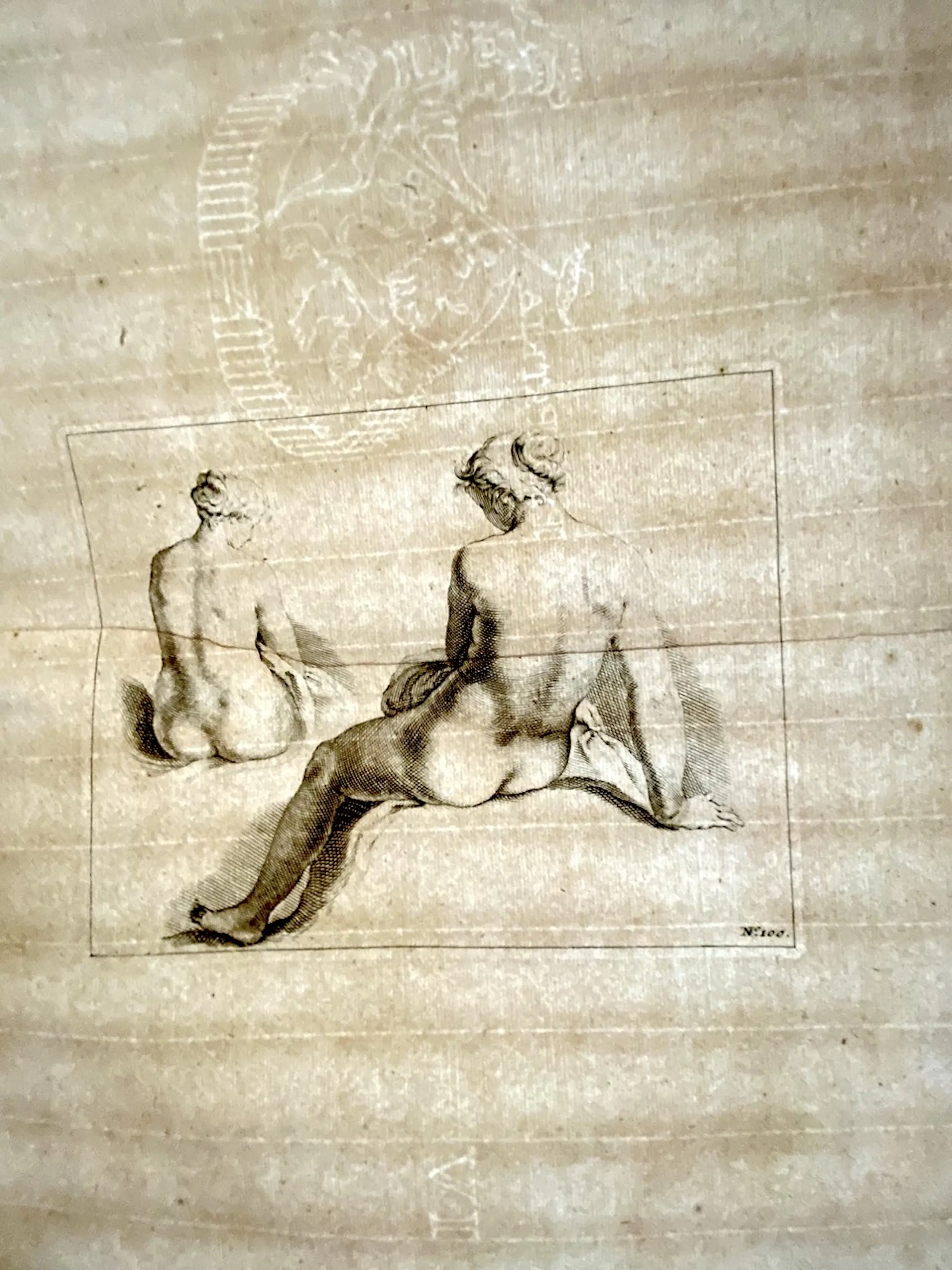 Kopergravure op geschept papier met wit watermerk