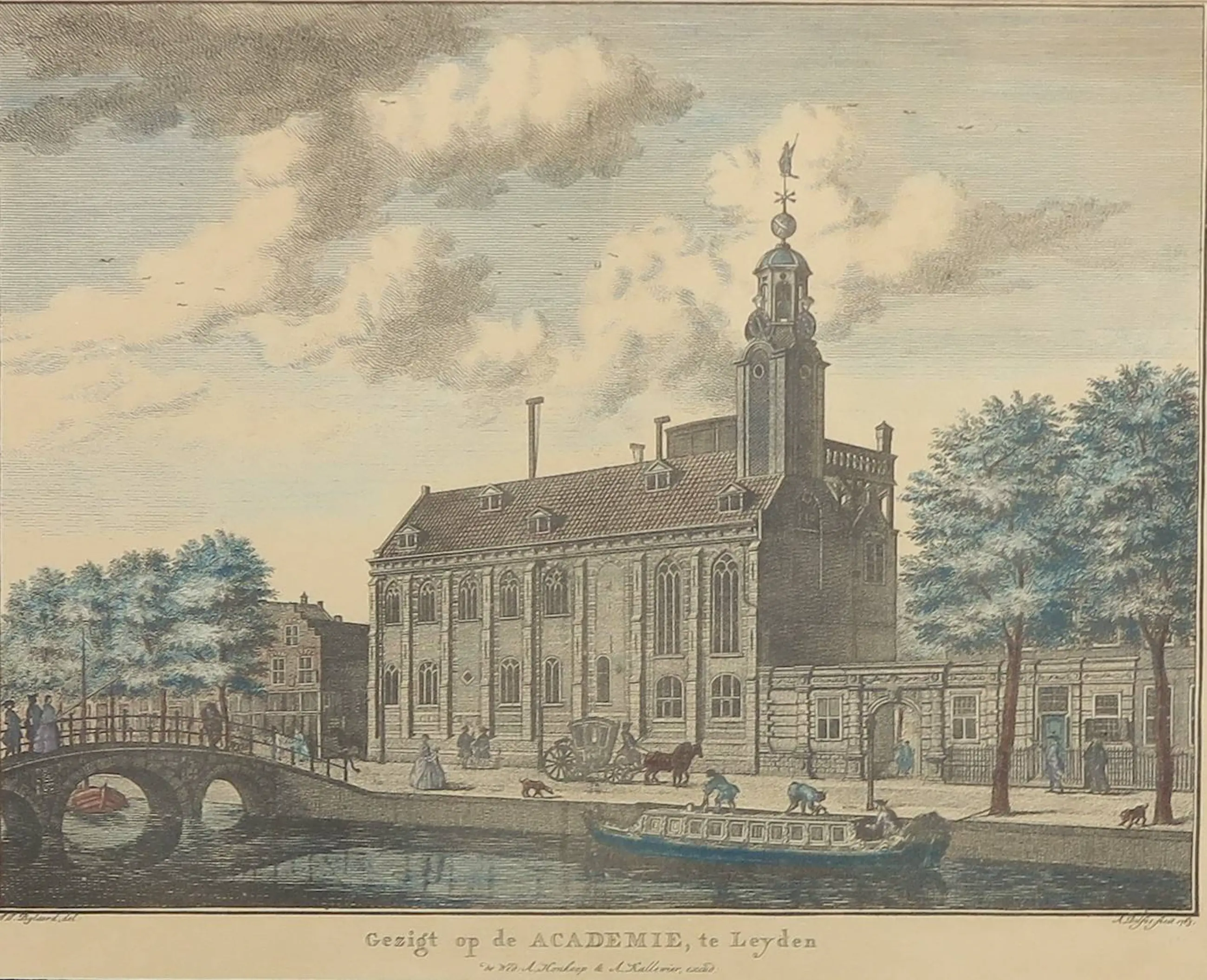 Ingekleurde reproductie van originele gravure van Abraham Delfos uit 1763