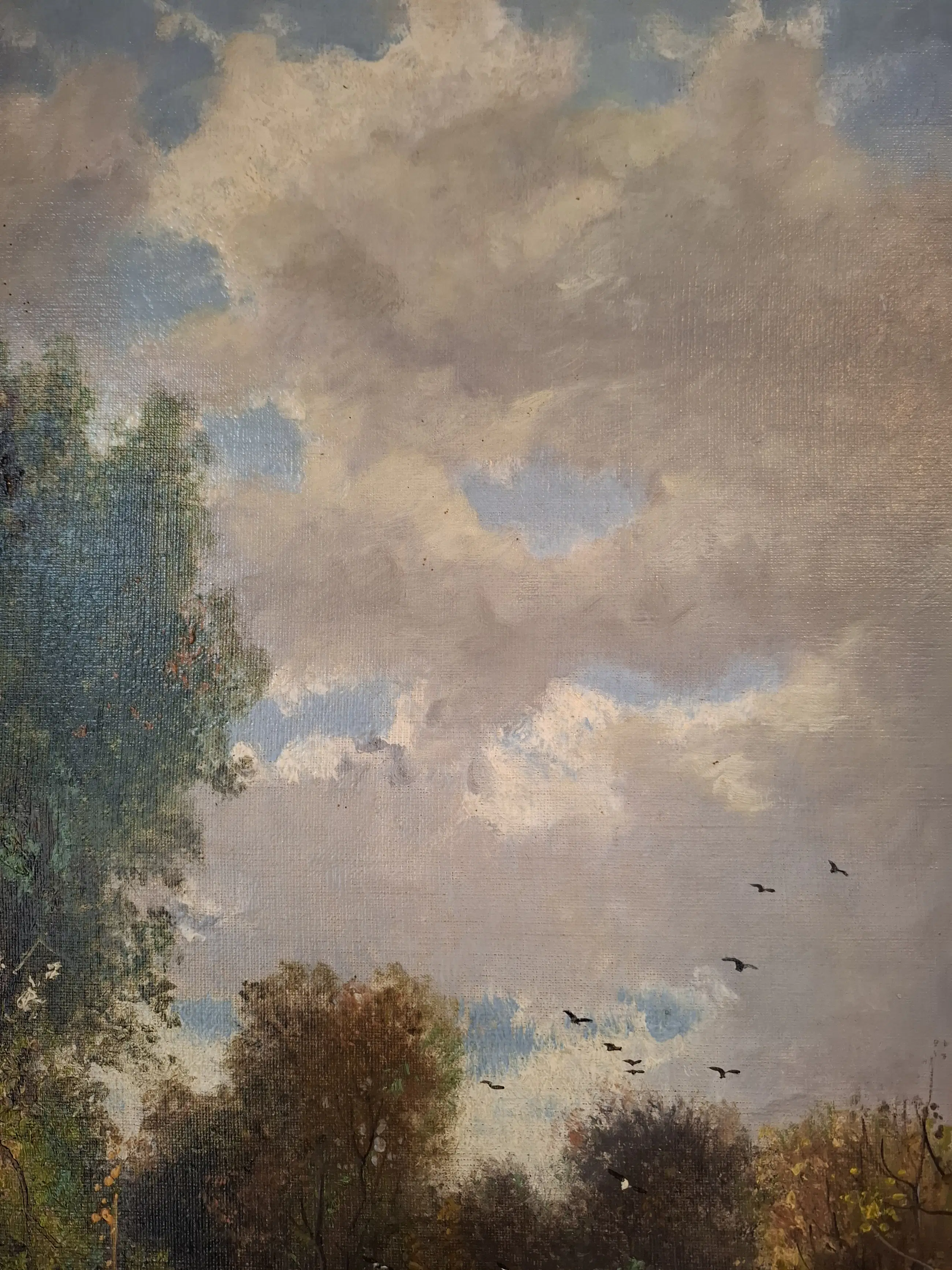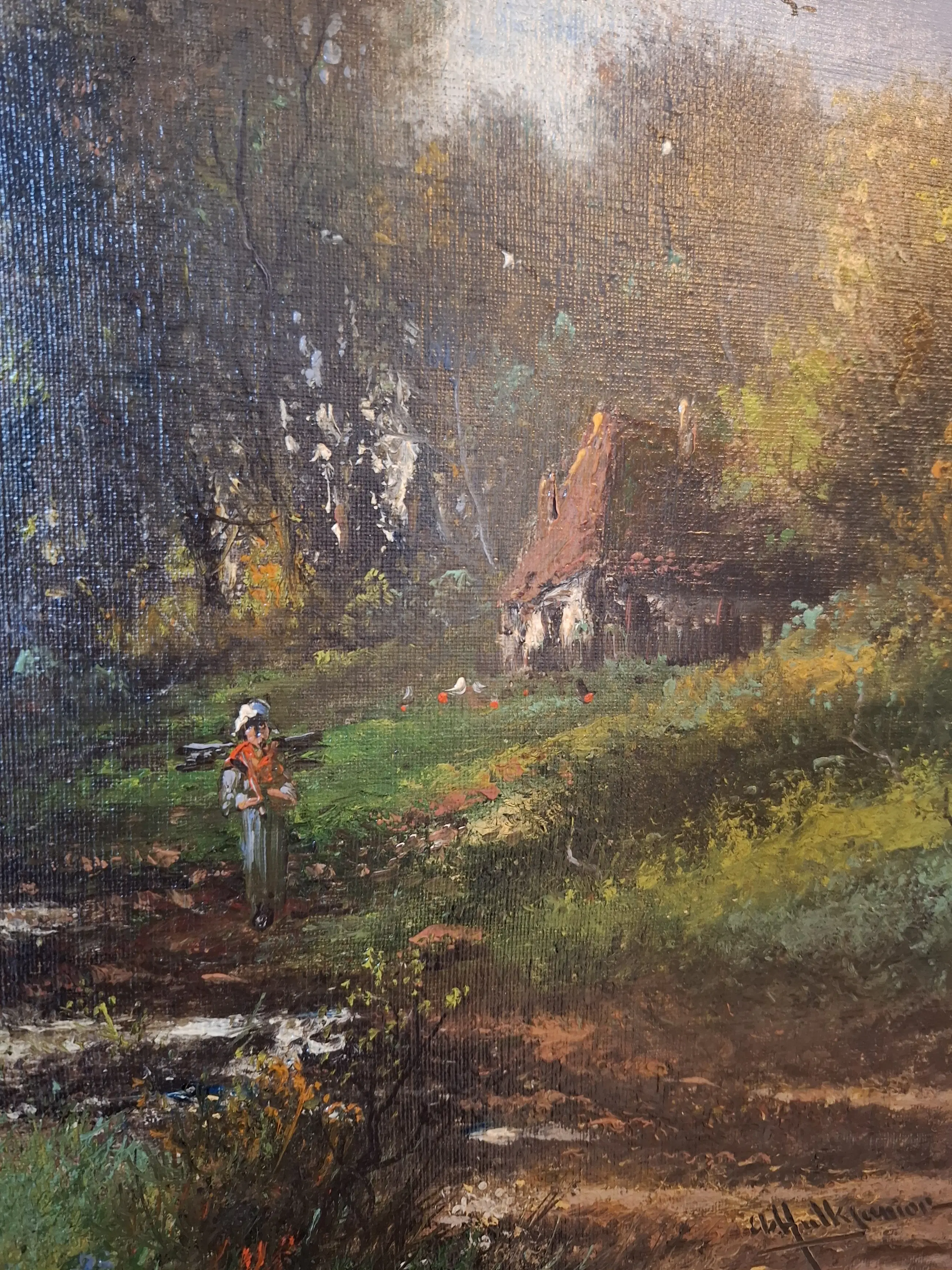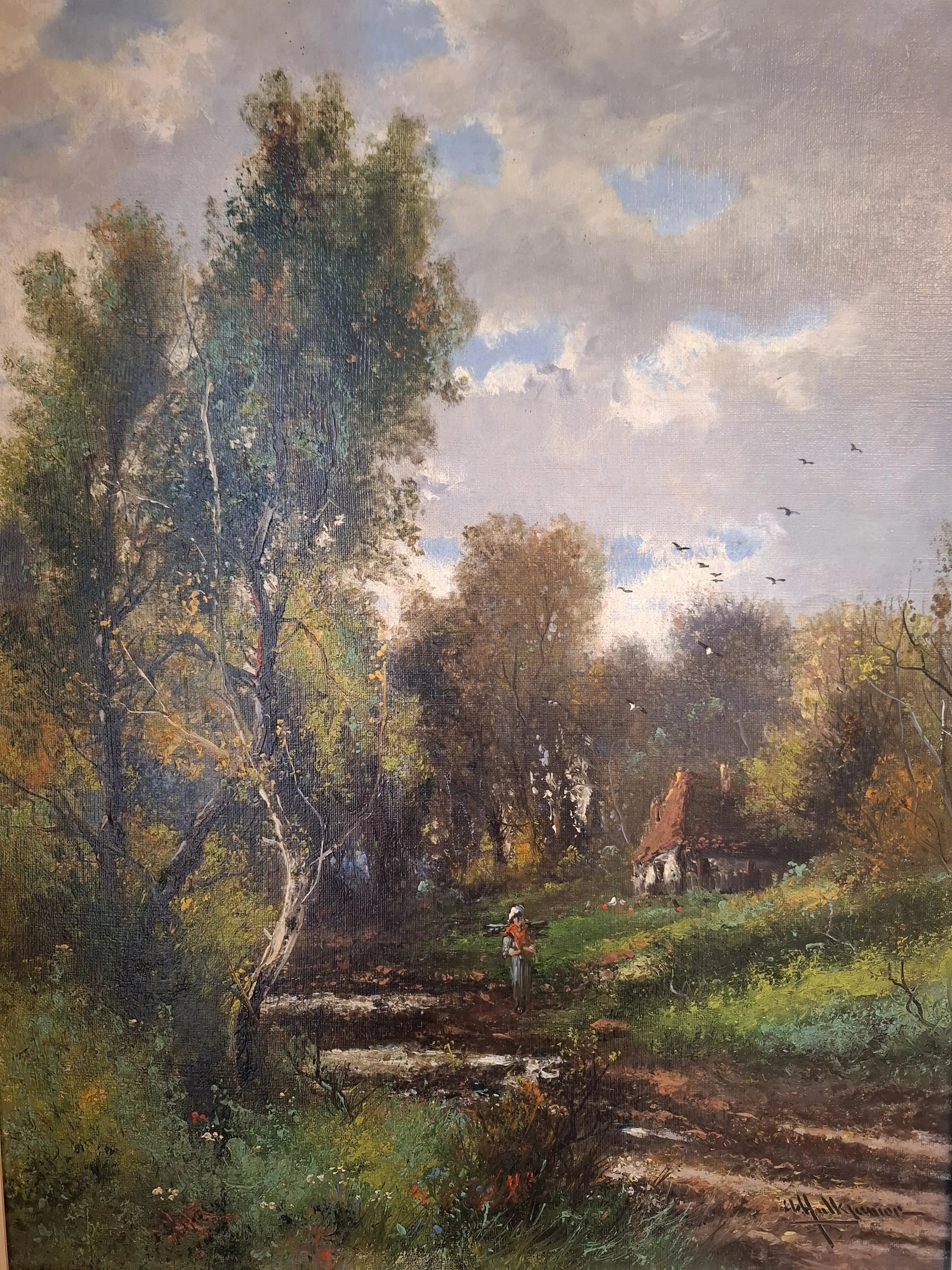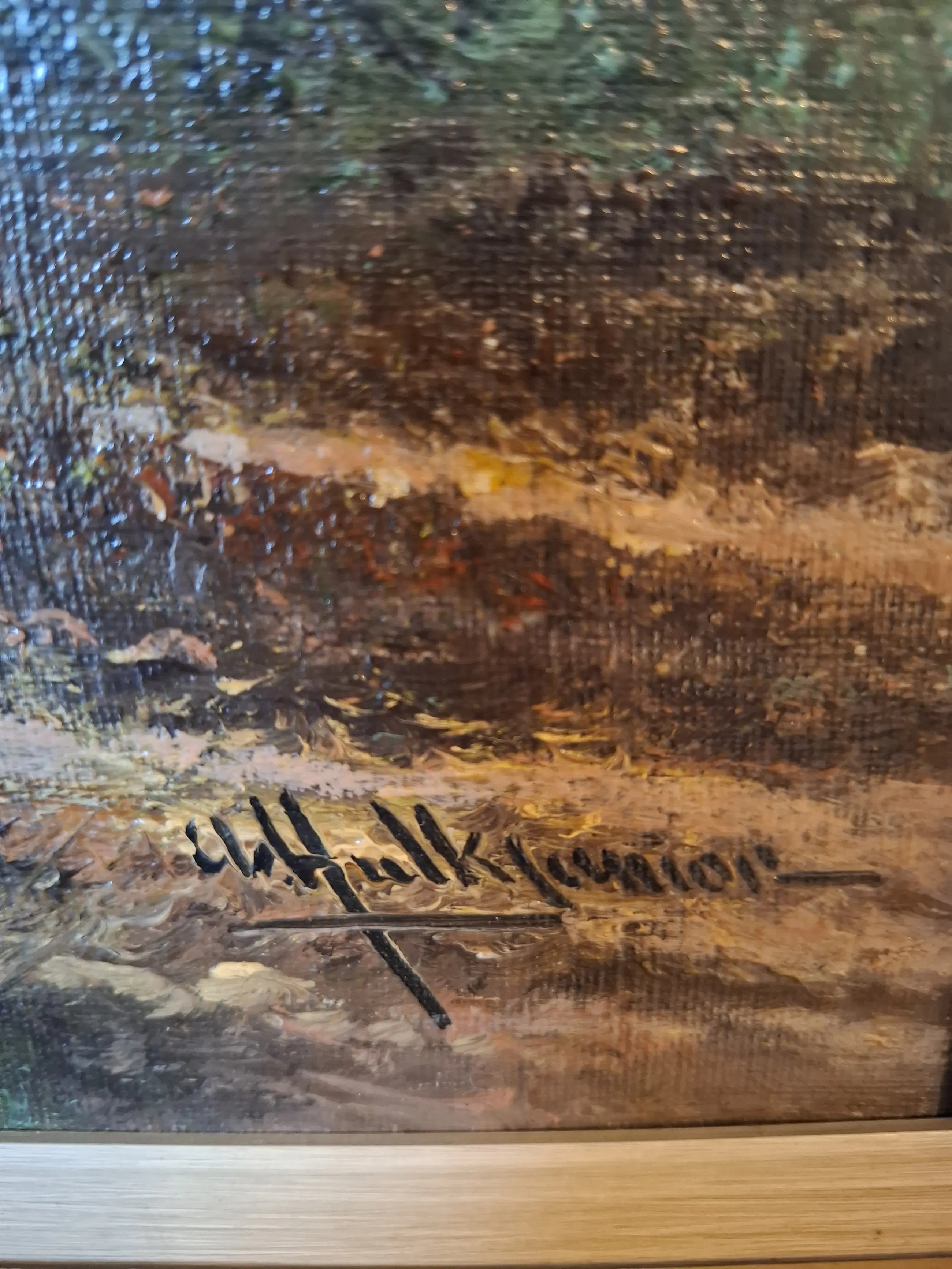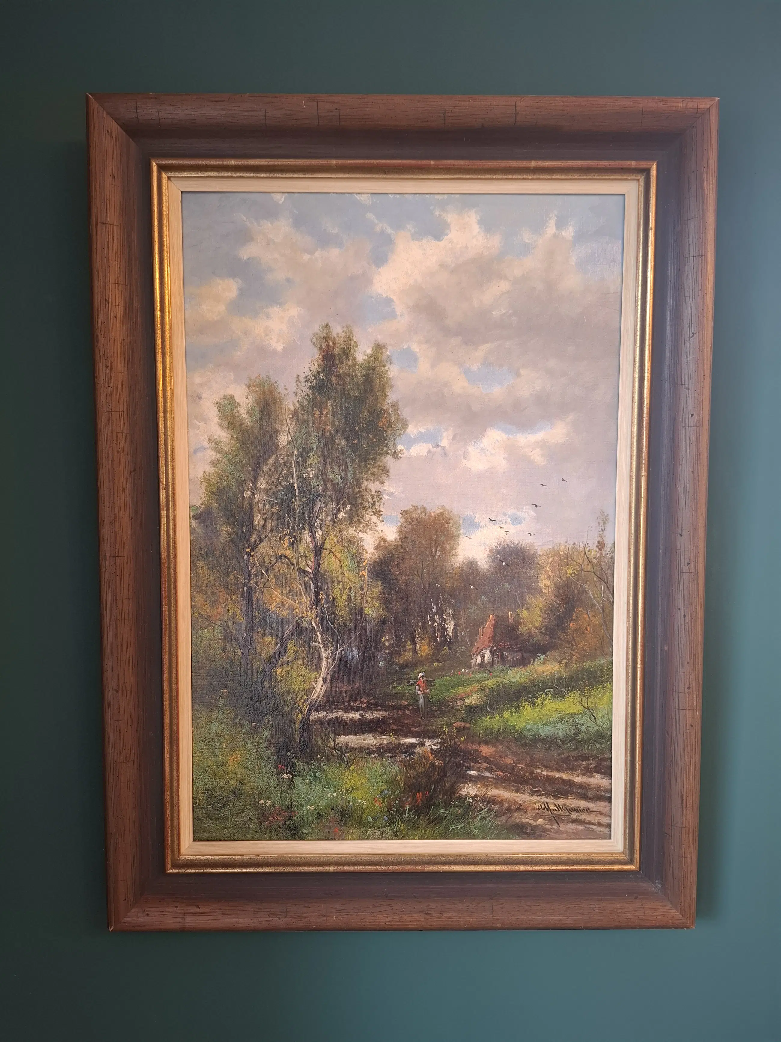 Abraham Hulk jr. (1851-1922) werd geboren in Nederland als zoon van de beroemde Nederlandse marineschilder Abraham Hulk sr. (1813-1897). Hulk bracht het grootste deel van zijn leven in Engeland door, maar reisde regelmatig terug naar Nederland en genoot in beide landen veel aanzien. Tijdens zijn verblijf in Engeland schilderde hij veelvuldig in de regio van Dorking, Surrey en Nottingham. Hij was vooral bekend om zijn Hollandse en Zuid-Engelse landschappen, zowel in aquarel als in olieverf. Hij bloeide op als kunstenaar tussen 1876 en 1892, een periode waarin hij bekendheid verwierf en deelnam aan belangrijke tentoonstellingen in de Royal Academy en de Royal Society of British Artists. Tijdens zijn leven exposeerde hij 24 werken in de Royal Academy en vijftien keer op de jaarlijkse tentoonstelling van de Royal Society of British Artists. Schilderij is in uitstekende staat.