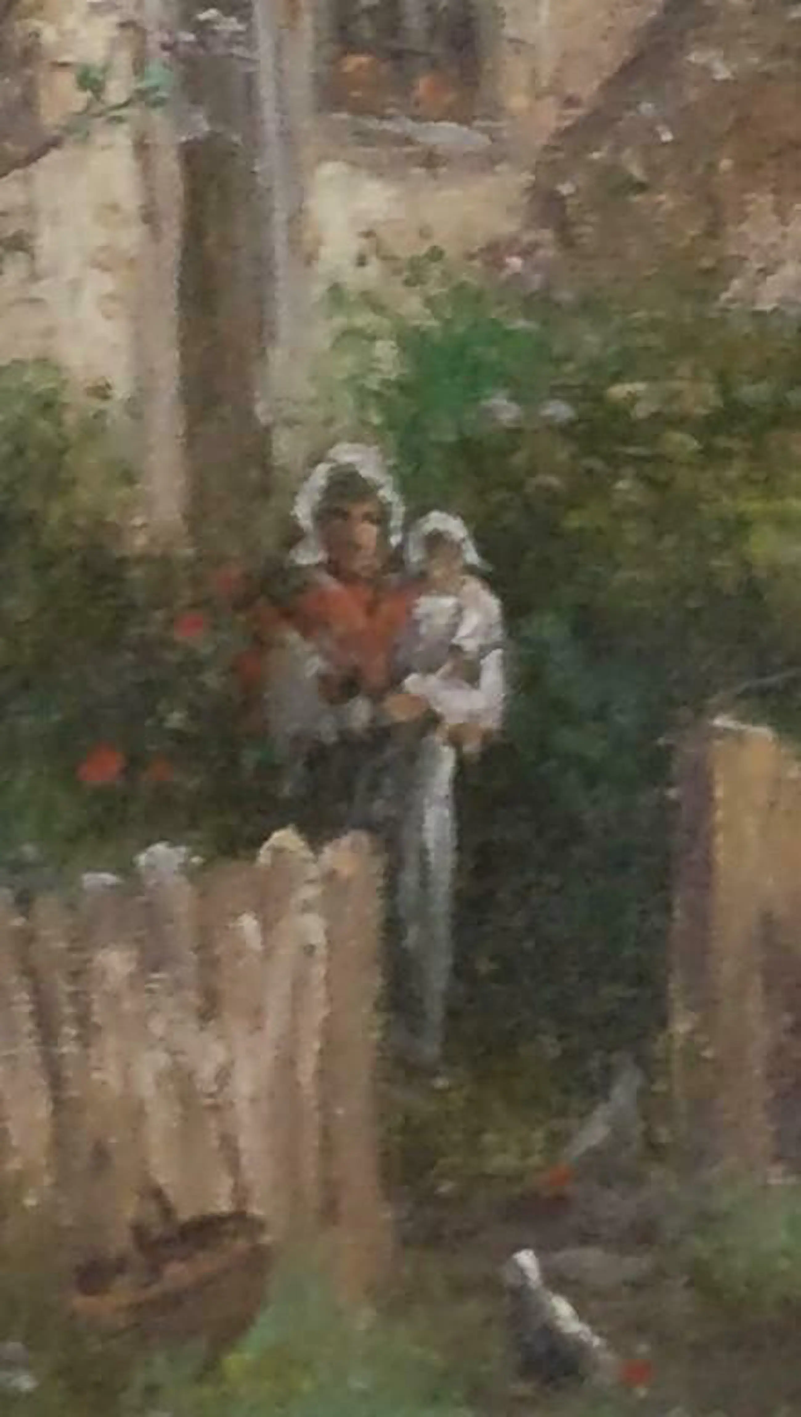 Kijk ook hoe goed de boerin met kind op de arm geschilderd is. Elk detail klopt, de figuren kunnen elk moment tot leven komen.