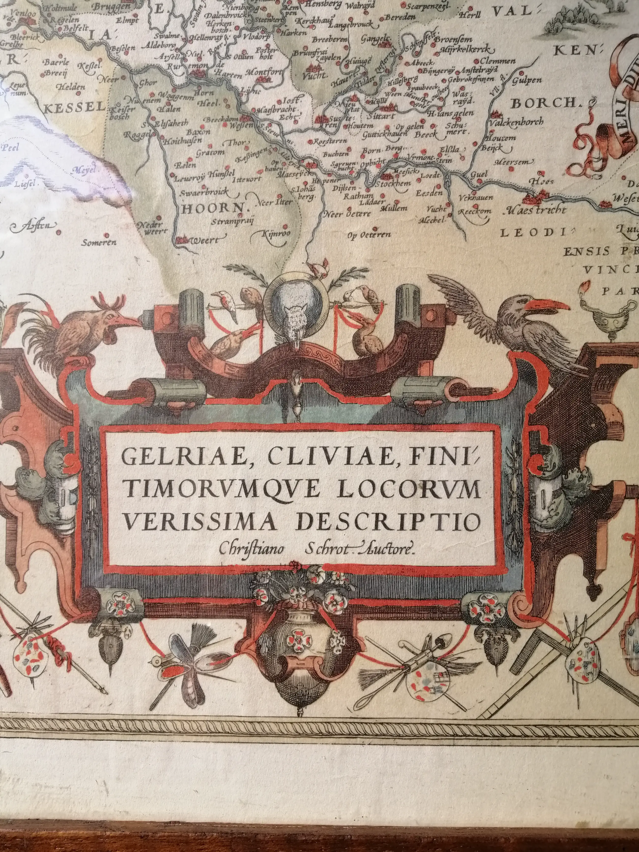 Een kaart van Gelderland gemaakt door Abraham Ortelius. De kaart is nog in een erg goede staat en ingelijst door een houten lijst. Het object is perfect voor verzamelaars en kunstliefhebbers.