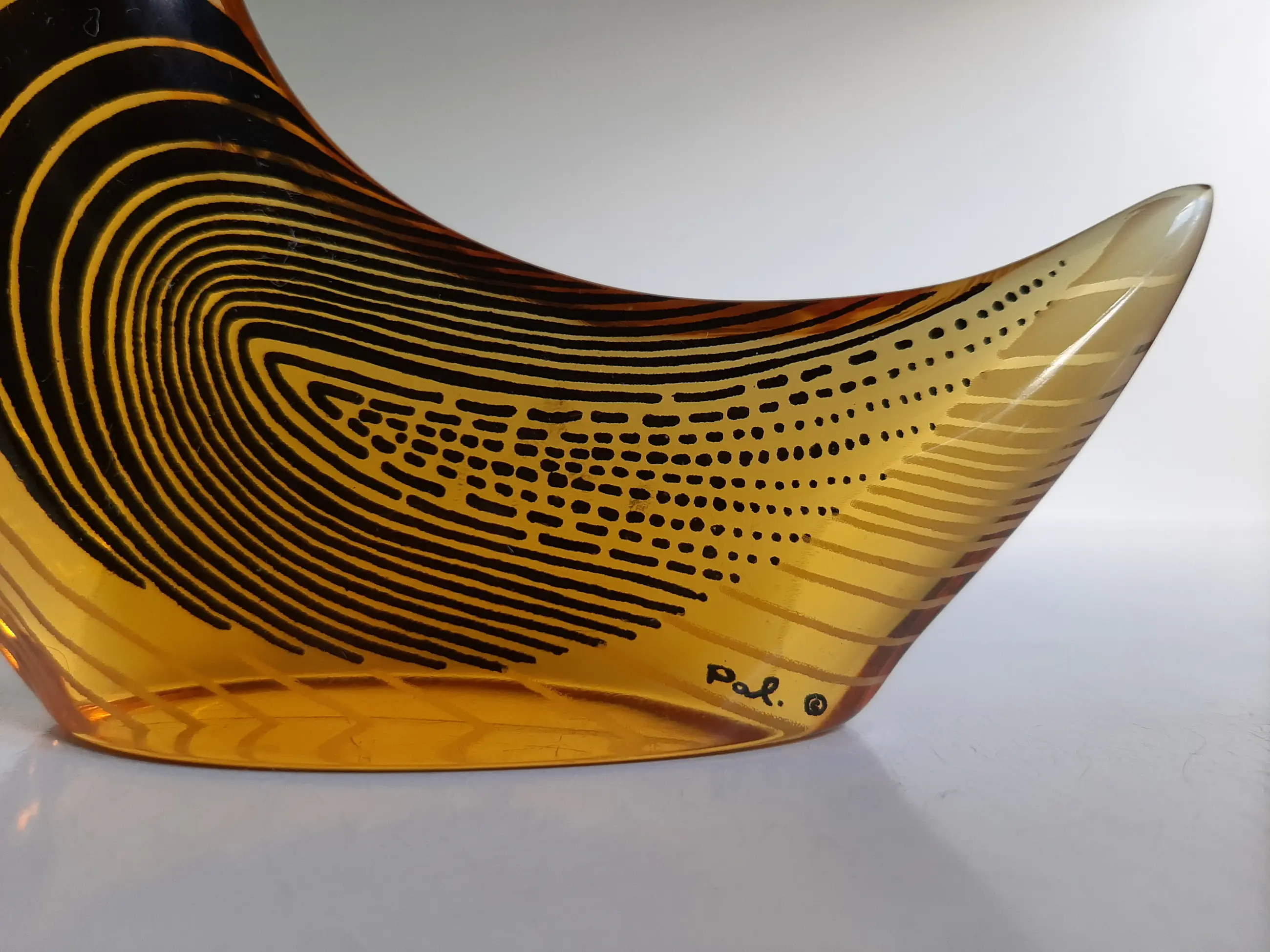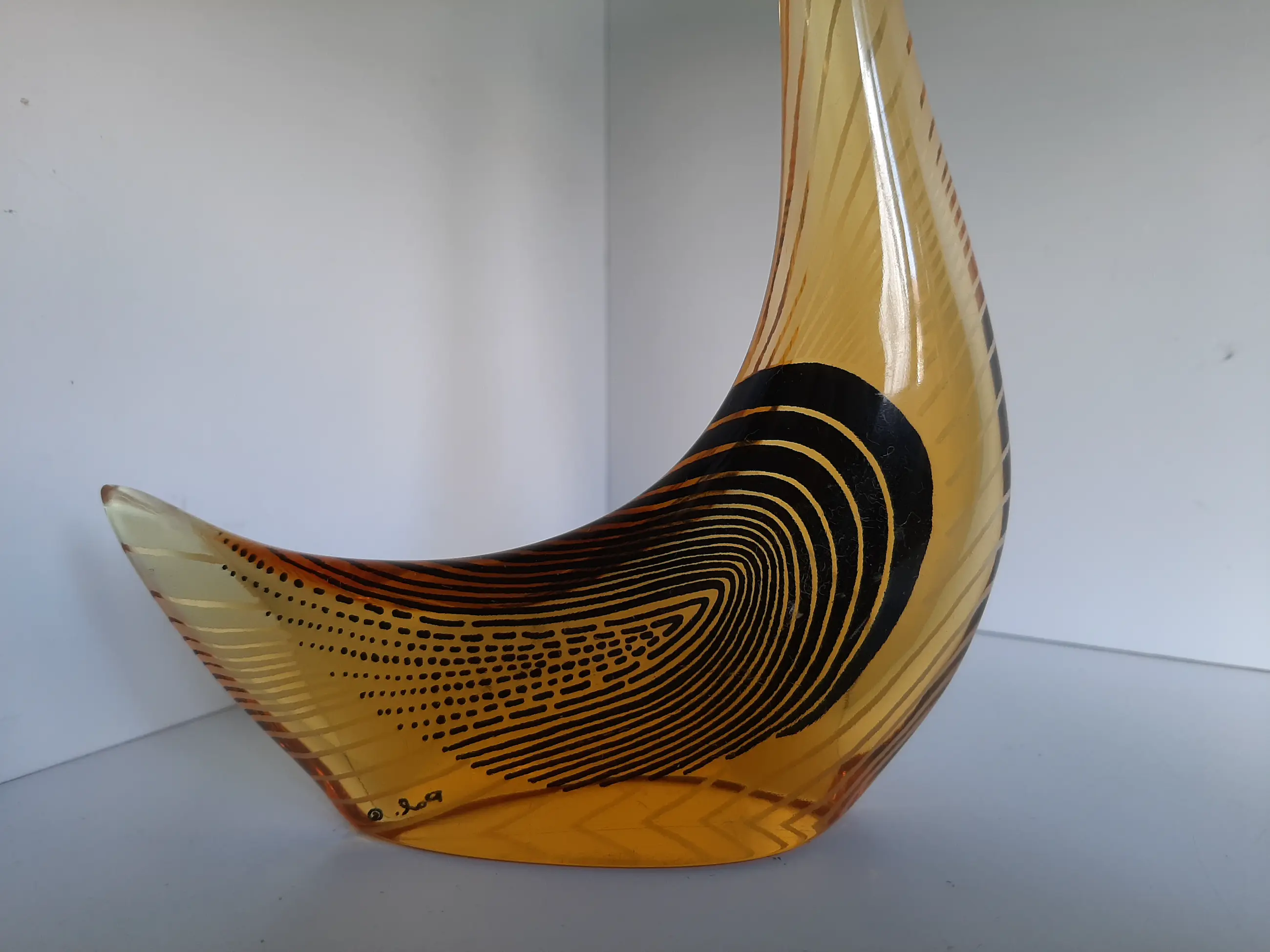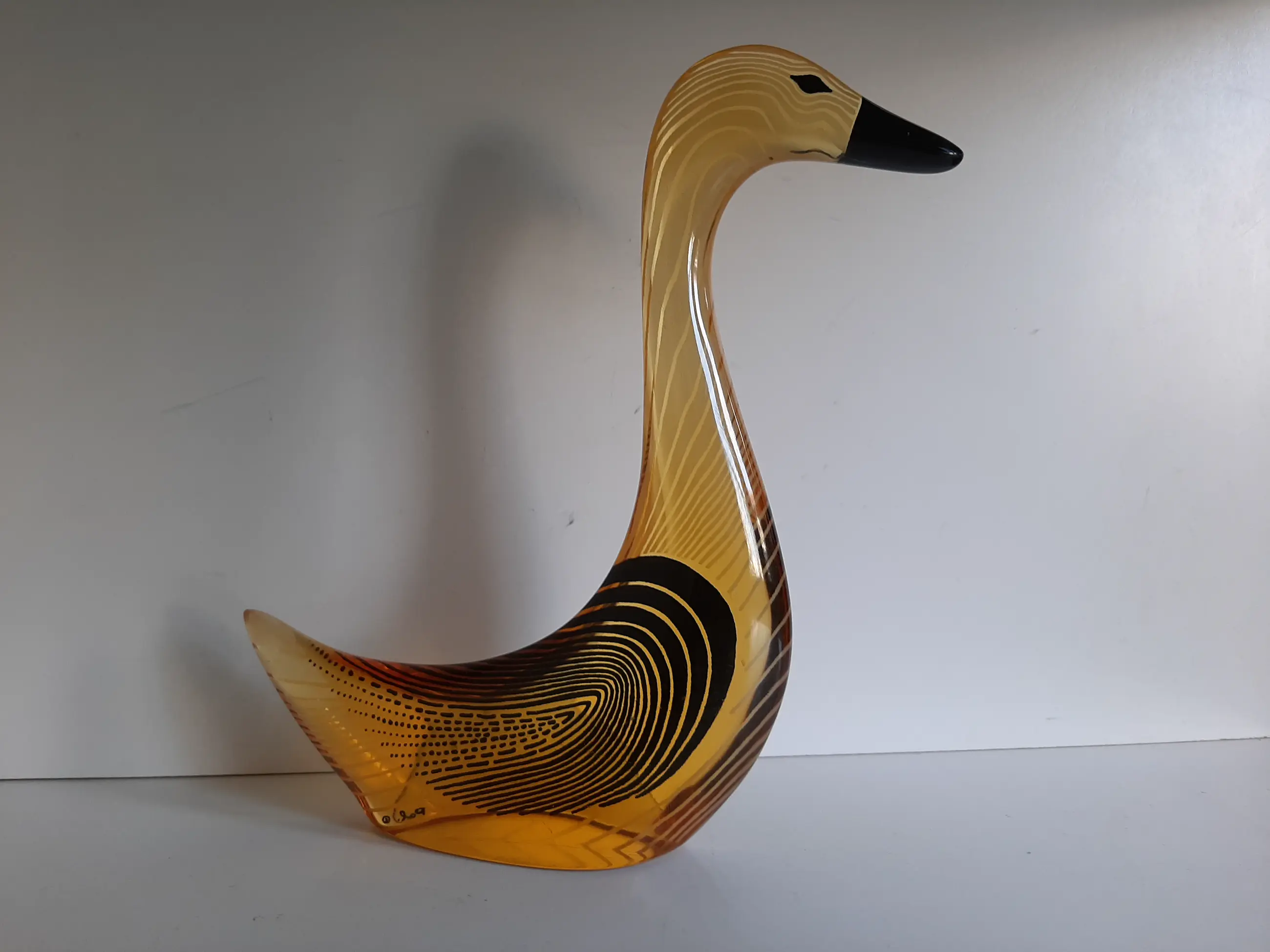 Een prachtig helder luciet (acrylglas) beeldje van een gans, gemaakt en gemerkt door Abraham Palatnik. Een mooi Op Art-werk van deze gerenommeerde Braziliaanse kunstenaar.