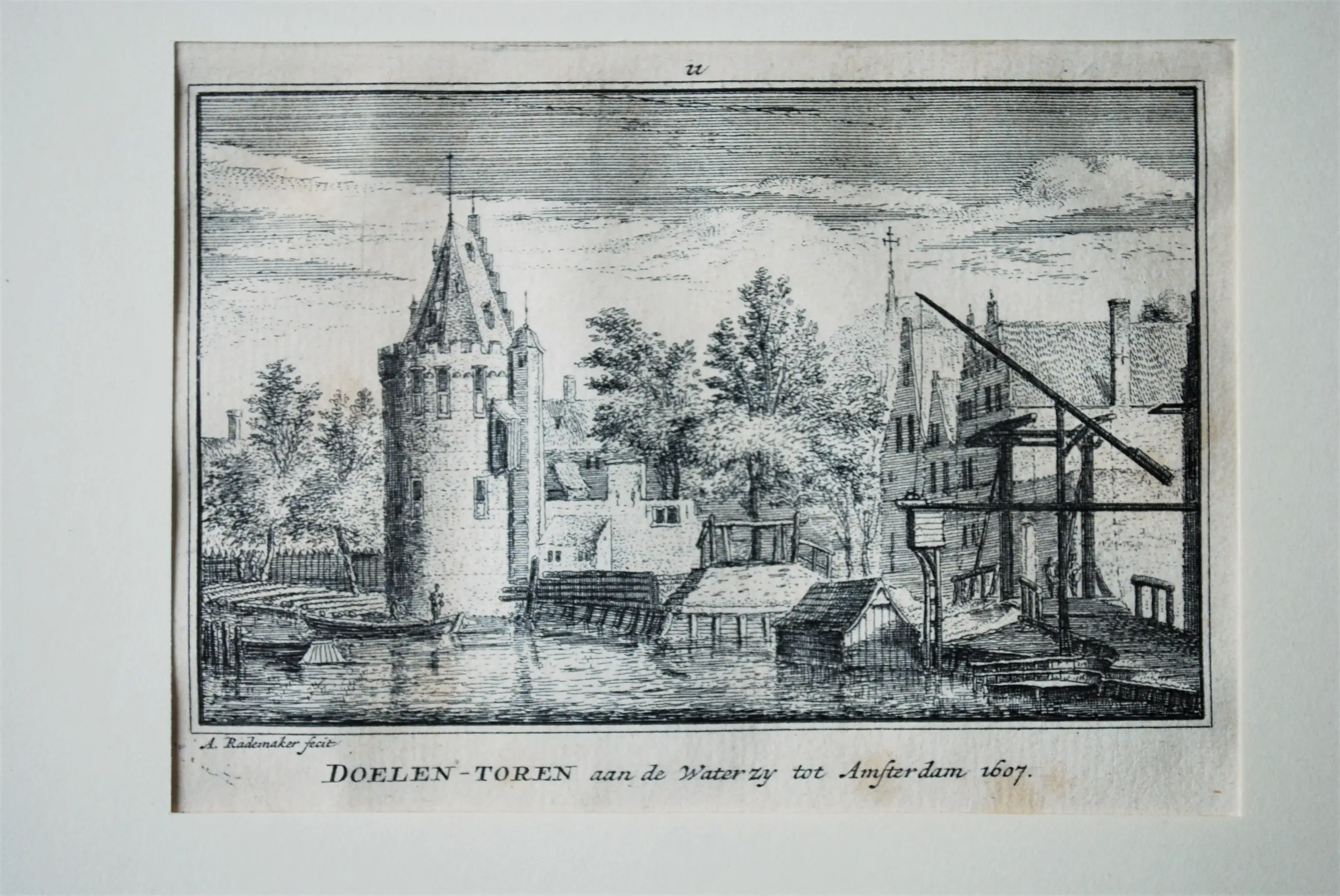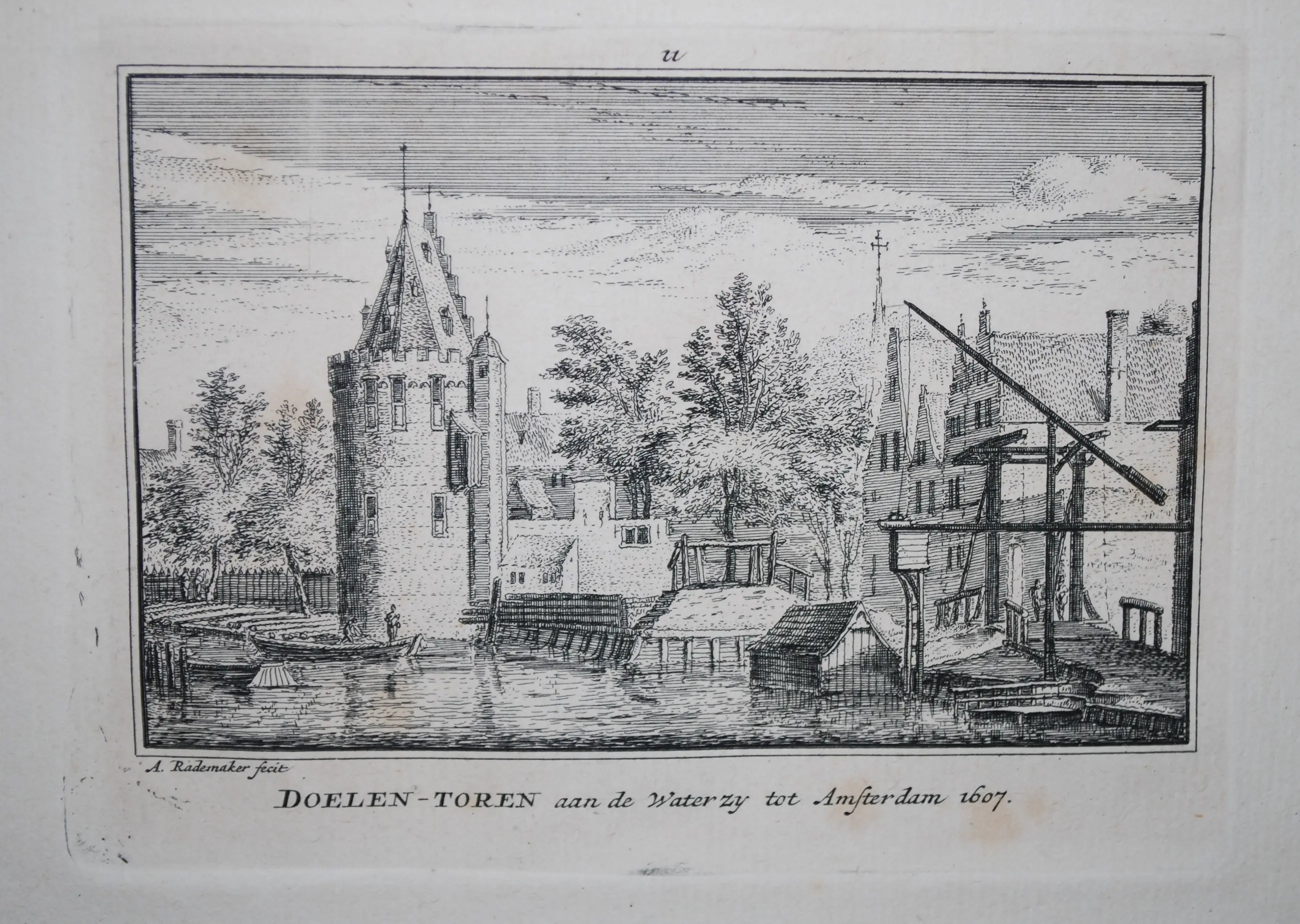 De situatie in Amsterdam, de Doelentoren, zoals hij was in 1607.