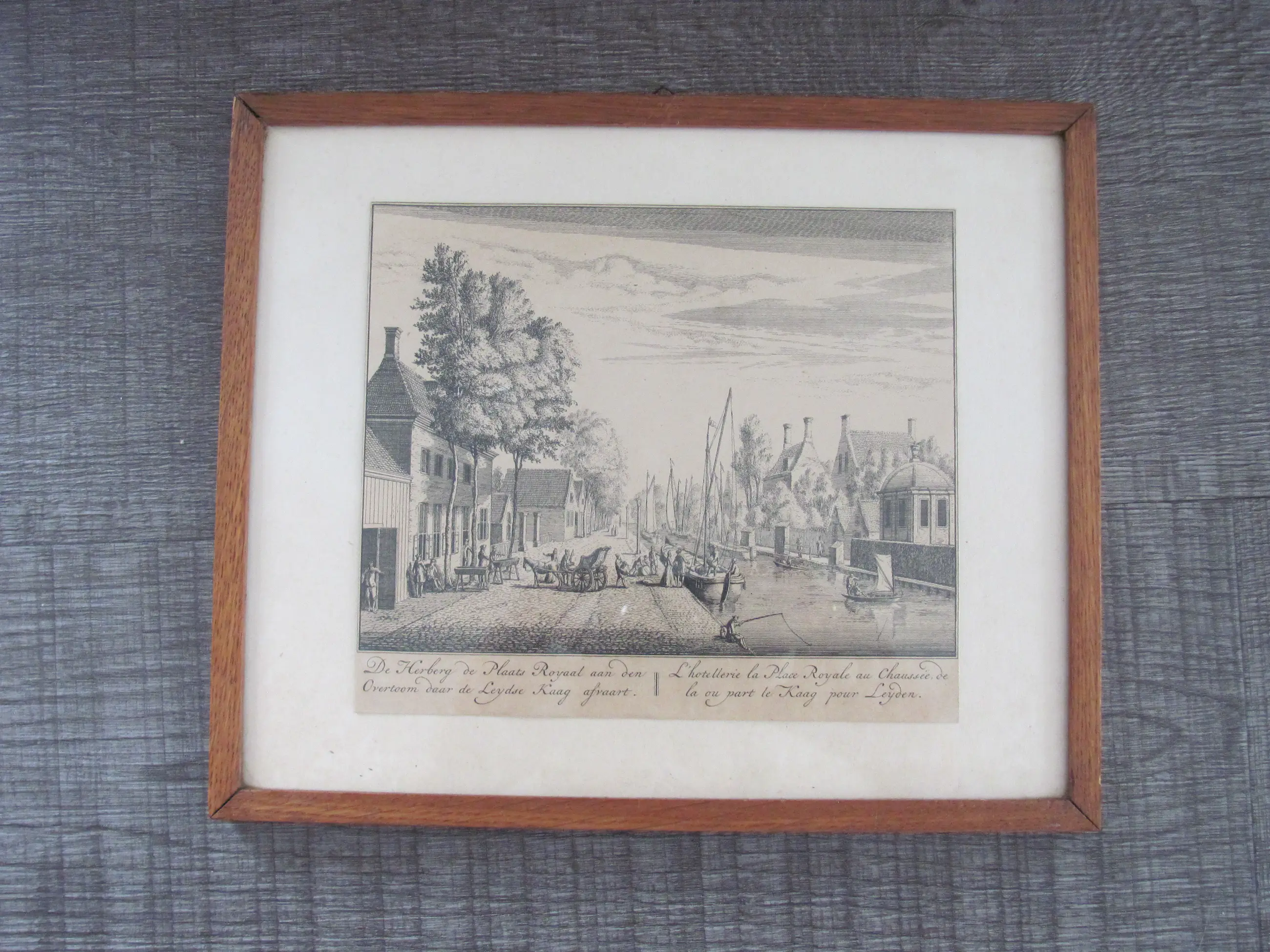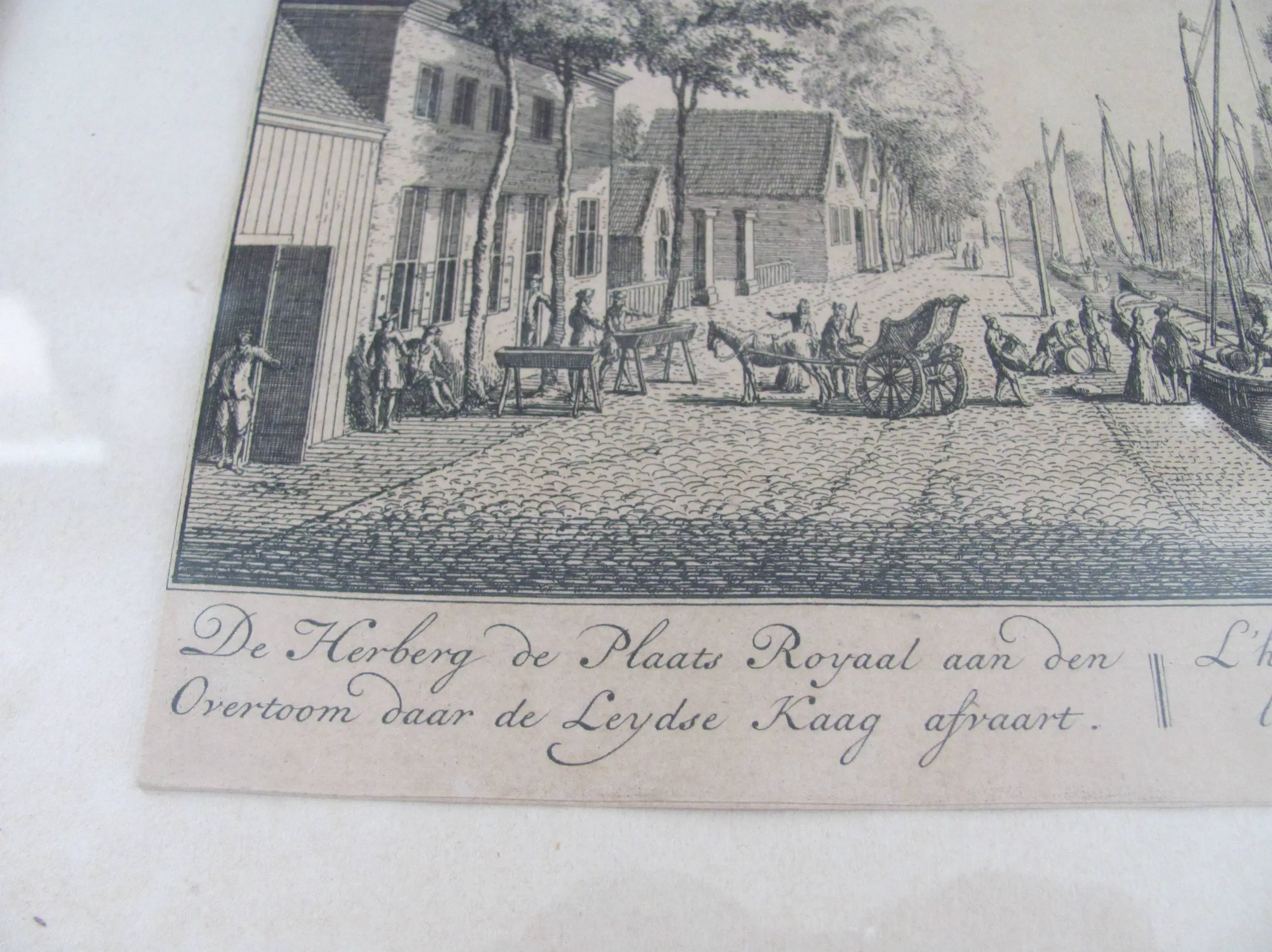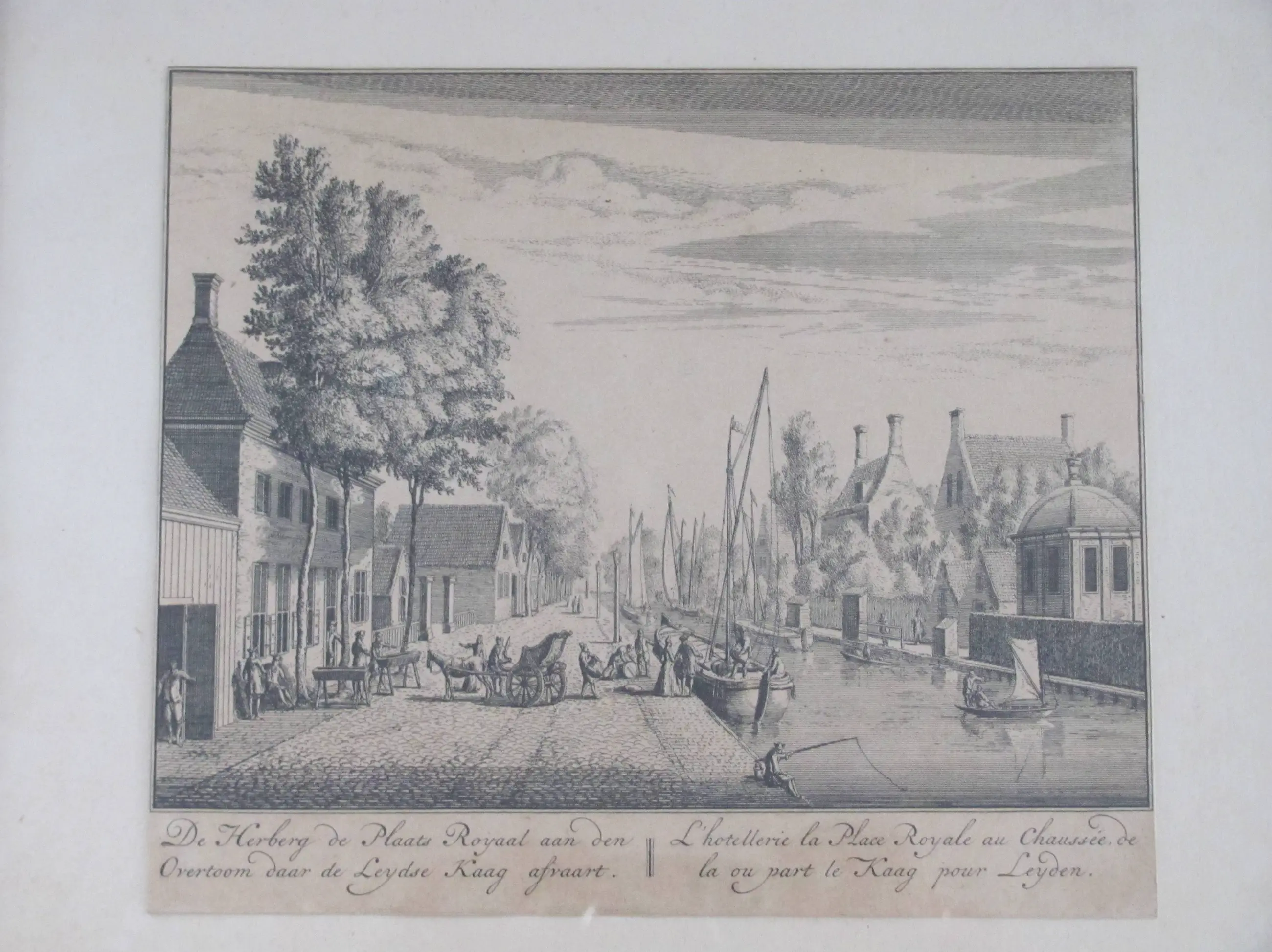 Zeer oude ets (rond 1730) van Abraham rademaker. De Schinkel van de Overtoom gezien, met de herberg "de Plaats Royaal" aan de Sloterkade. In het water ligt het beurtschip naar Leiden. Dit is in Amsterdam bij de Amstel.