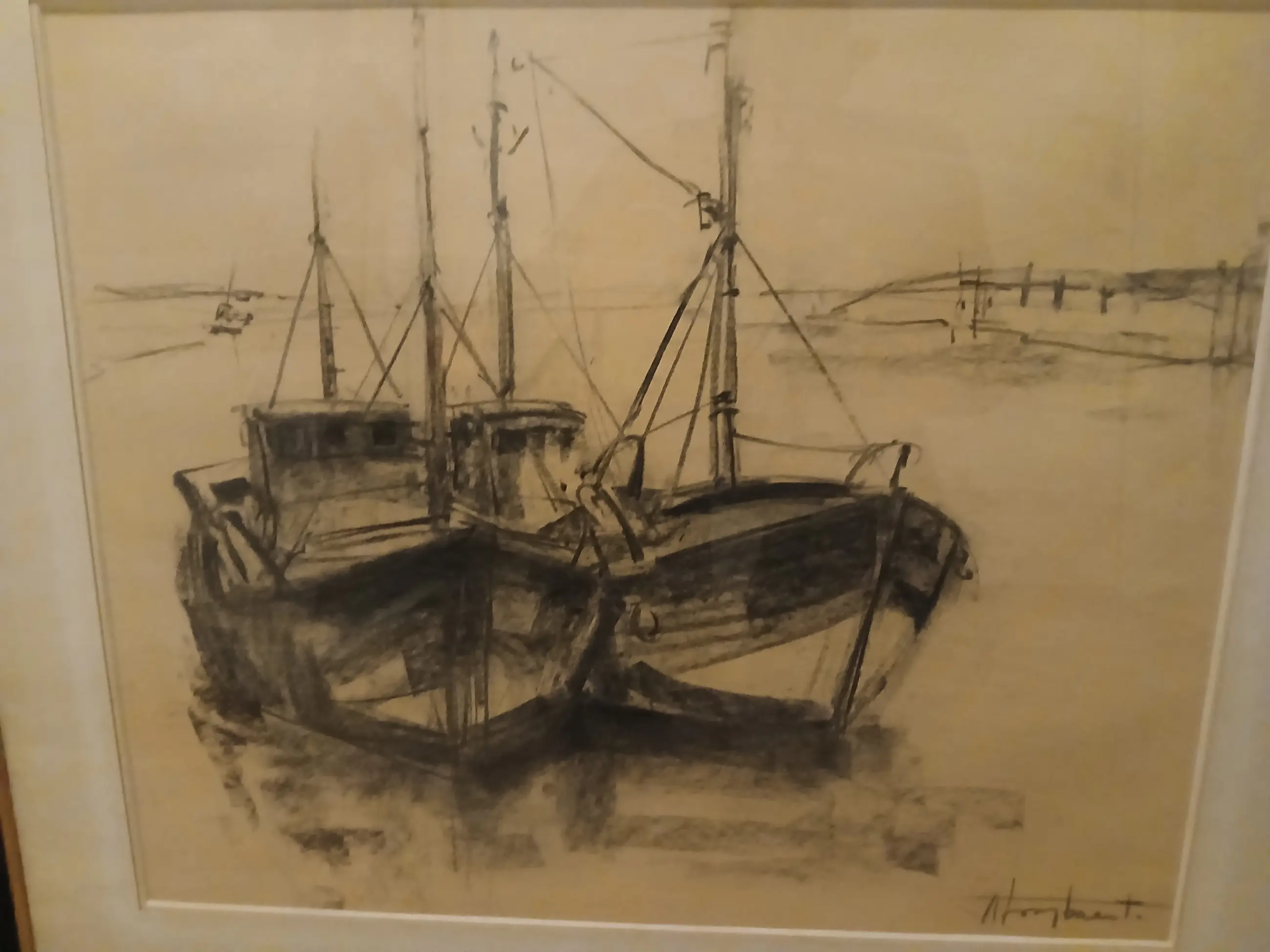 Mooi werk van achille lombaert in houtskool. In prima staat