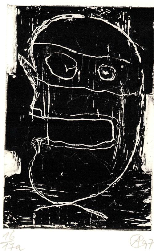Künstler Achim Freyer, eine Kaltnadelradierung, Exemplar 16/17A, numeriert und handsigniert, gedruckt auf Hahnemühle Bütten, ca.350 g/qm, Format: ca.25x20cm, 1997.