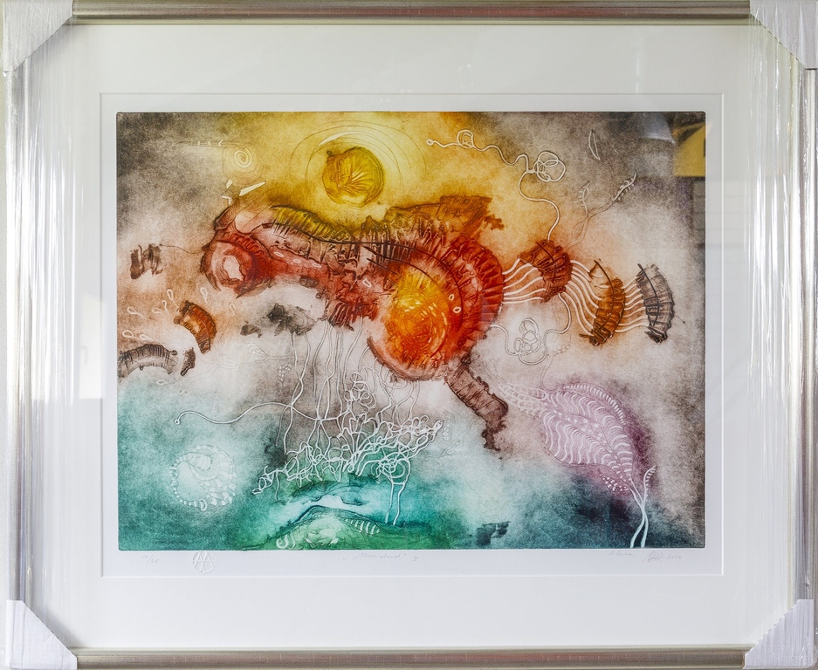 Ad Arma grote kleuren ets 'Moonisland II' - 2002 - ingelijst.