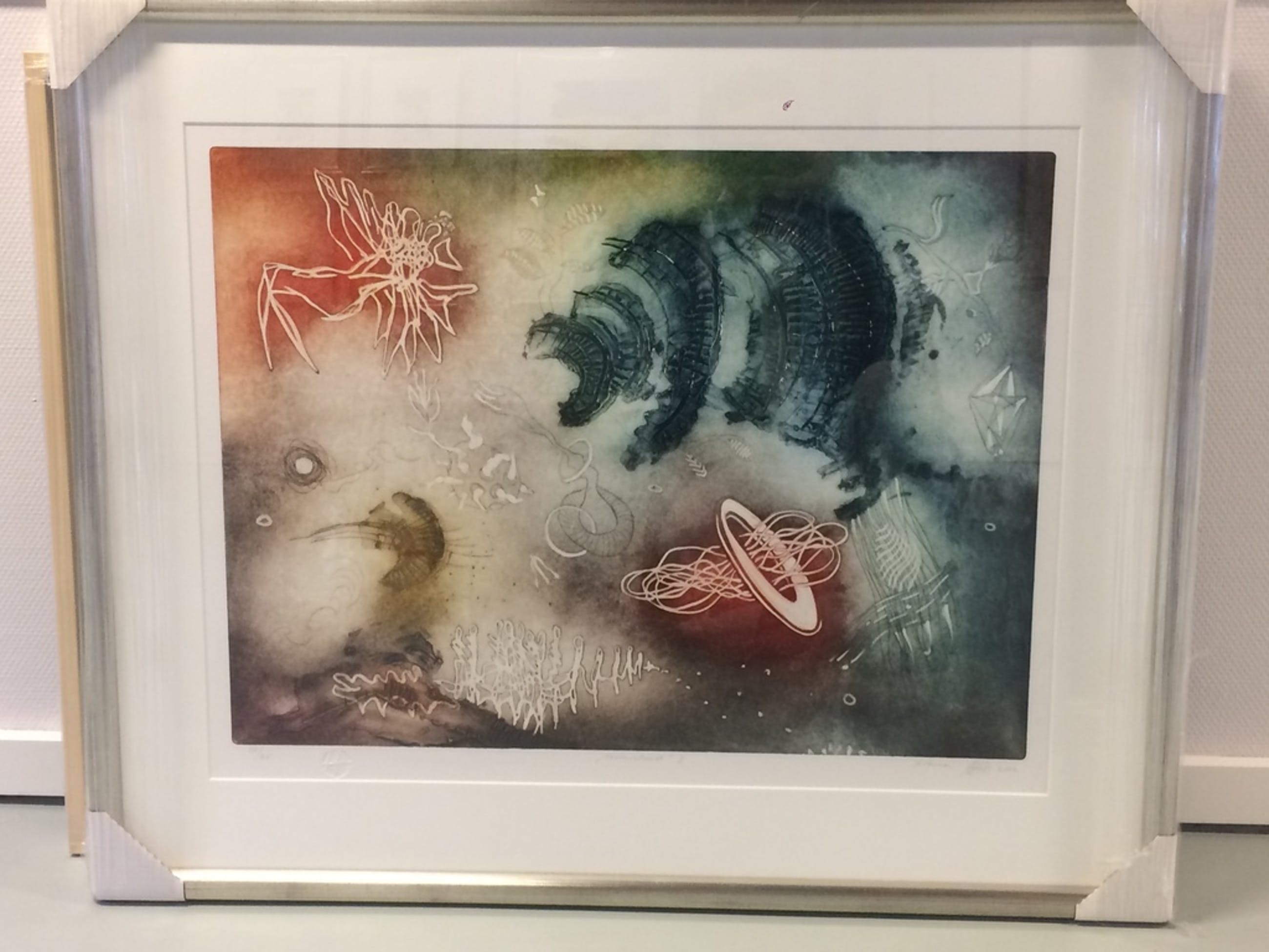 Grote kleurenets van Ad Arma in passe partout en deftige houten lijst ( 89 x 108 cm). Gesigneerde en genummerde zeefdruk in nieuw staat. Papierformaat ca 570 x 85 cm. Nummer 10 uit een serie van 25. De ets kan worden bekeken en/of opgehaald in onze galerie Rotor in Arkel of aangetekend worden verzonden zonder lijst en passe partout in een stevige kartonnen verpakking. De voorkeur wordt gegeven aan ophalen of koerier zodat de lijst behouden kan blijven. De kunstwerk kan zo aan de muur worden opgehangen!