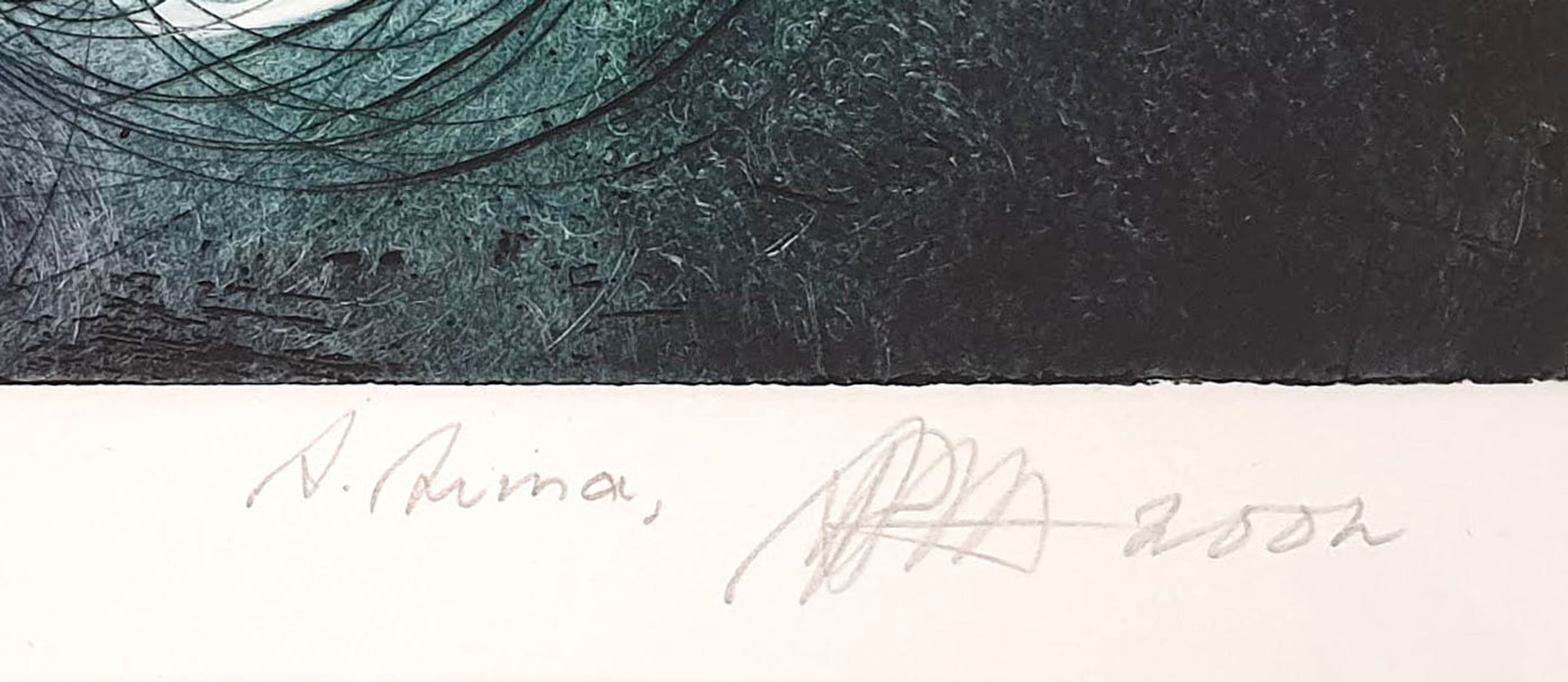 Kunstenaar: Ad Arma Titel: Boom Boom Heartbeat III Jaar: 2002 Techniek: Ets Oplage: 6/15 Gesigneerd: Rechtsonder Afwerking: Ingelijst Afmeting voorstelling (HxB): 63 x 100 cm Afmeting lijst (HxB): 89 x 121 cm Conditie werk: Zeer goed Conditie lijst: Nieuw Referentie: ZK300829