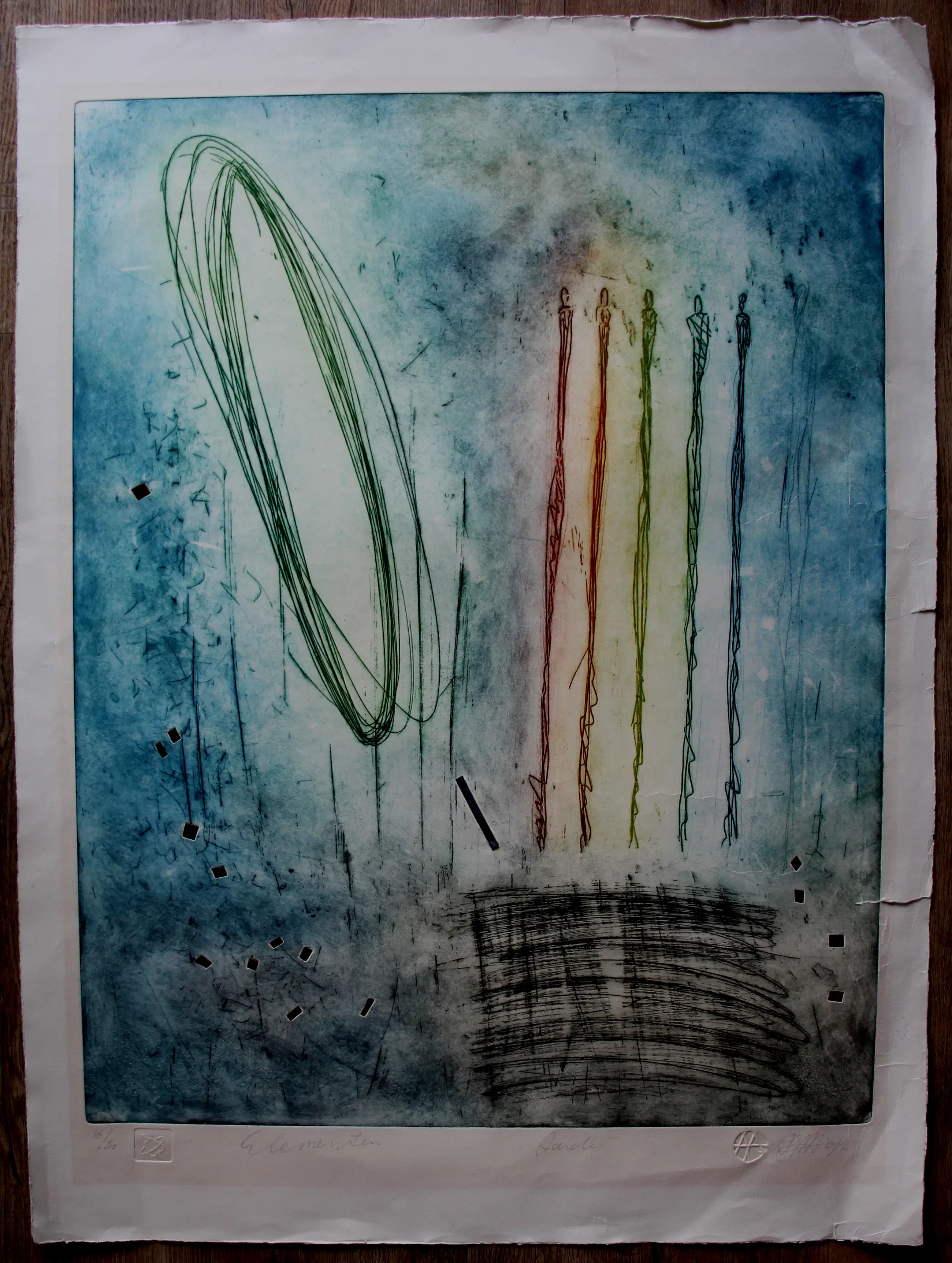 Ets/aquatint van Ad Arma. Titel: Elementen - "Aarde". Jaar: 1992. Oplage: 16/80. Afmetingen blad: H106 x b79cm. Afmetingen voorstelling: H89 x b69cm. Het werk is rechts onderaan, met potlood gesigneerd, door de kunstenaar. De authenticiteit van het aangeboden werk wordt volledig gegarandeerd. Een certificaat van echtheid kan, op aanvraag worden gemaild.