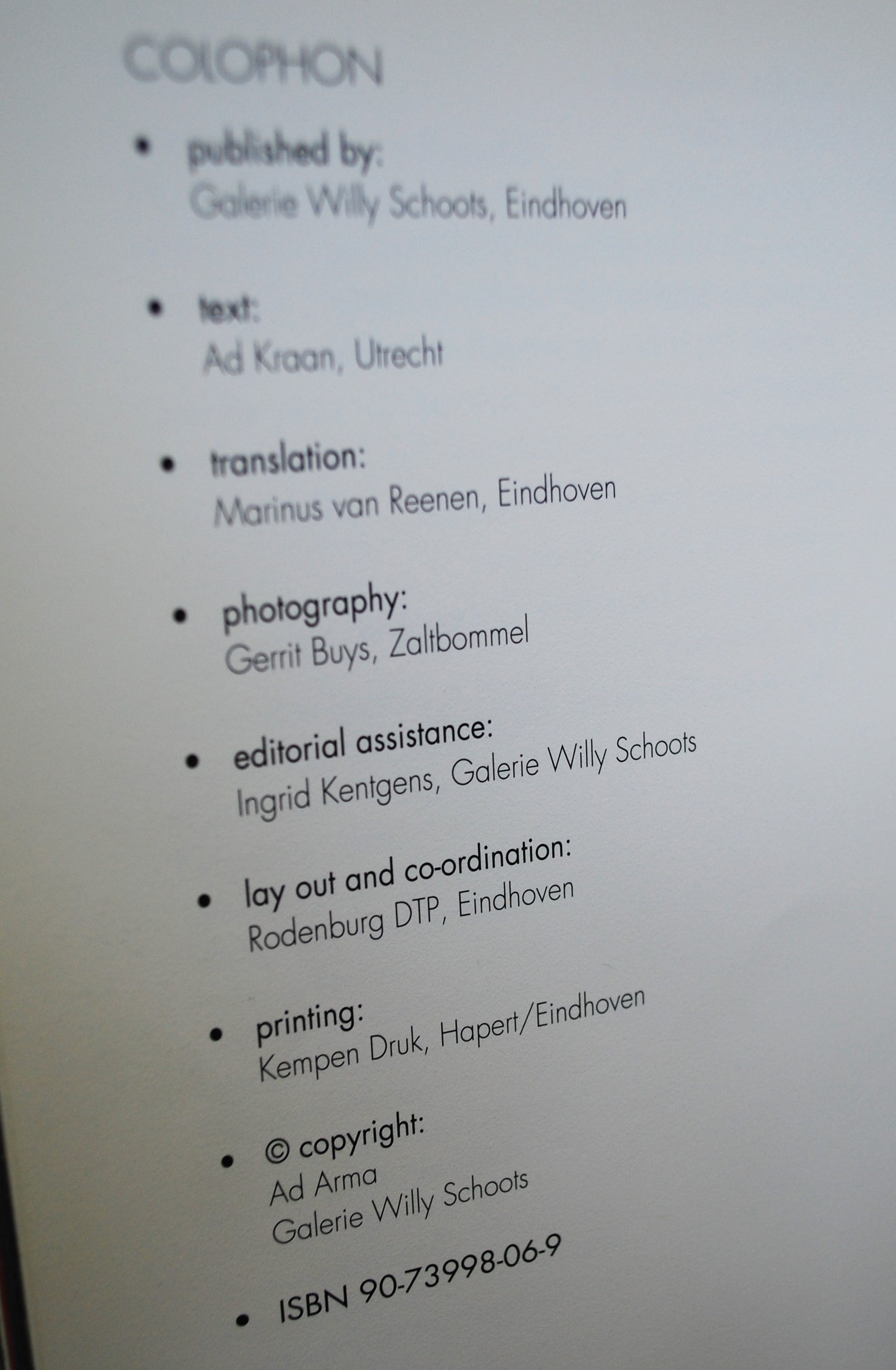 catalogus van galerie Willy Schoots uit 1992. Betreft Arma's