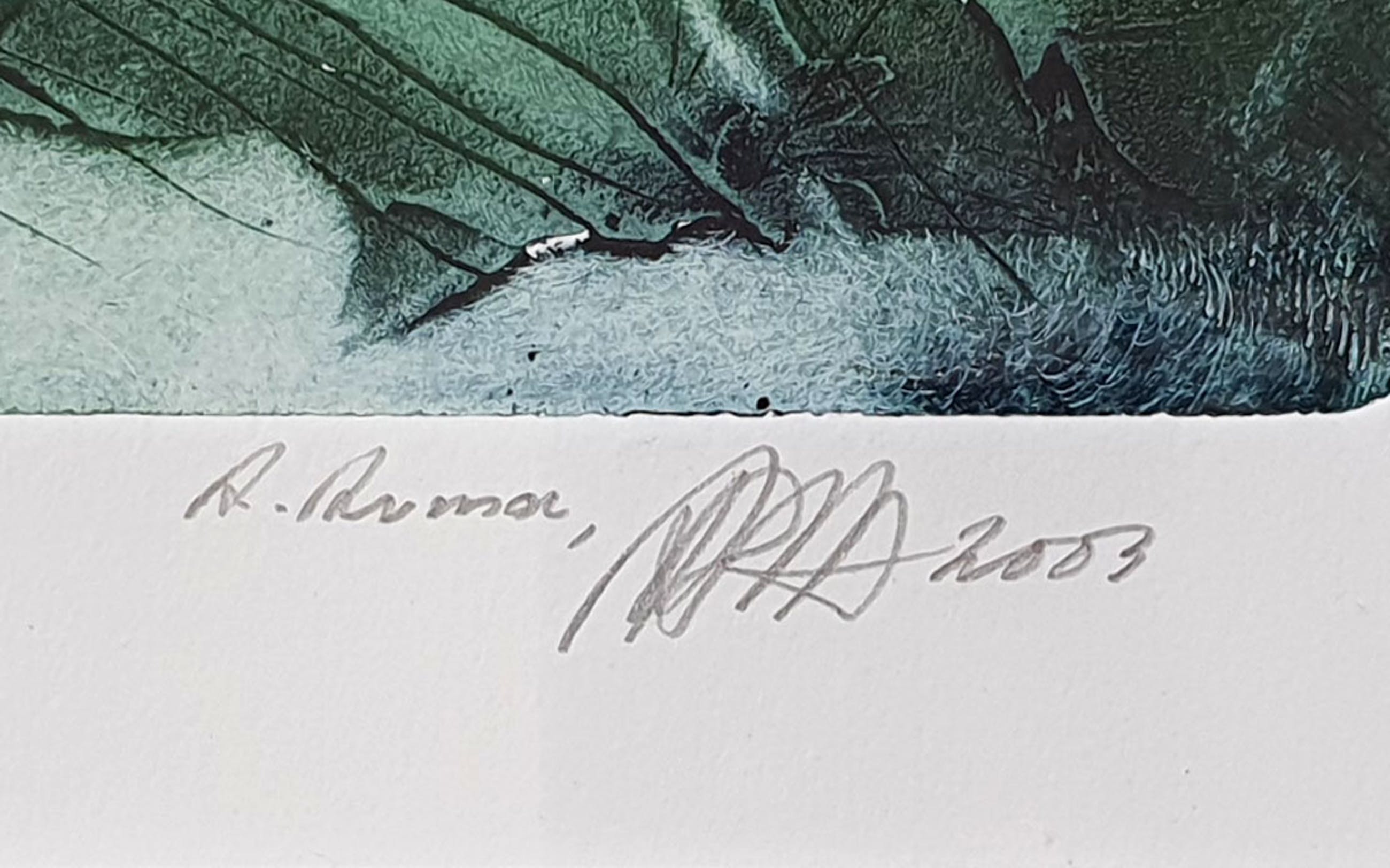 Kunstenaar: Ad Arma Techniek: Ets Oplage: 3/23 Gesigneerd: Rechtsonder Afwerking: Ingelijst Afmeting zonder lijst (HxB): 91 x 64 cm Afmeting met lijst (HxB): 123 x 93 cm Conditie werk: Zeer goed Conditie lijst: Gebruikt Referentie: 00921